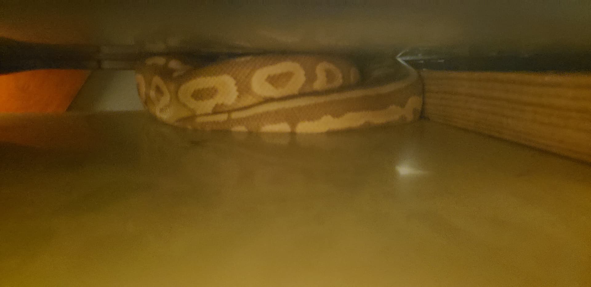The other was my older female retic, Bao finding just the right angle to push out of her enclosure and find a midnight snack. I keep my adult and juvie snakes and feeder rodents in a closed room so no threat to the cats/dog and vice versa there… But she decided to open up one of the feeder rat tubs and help herself.