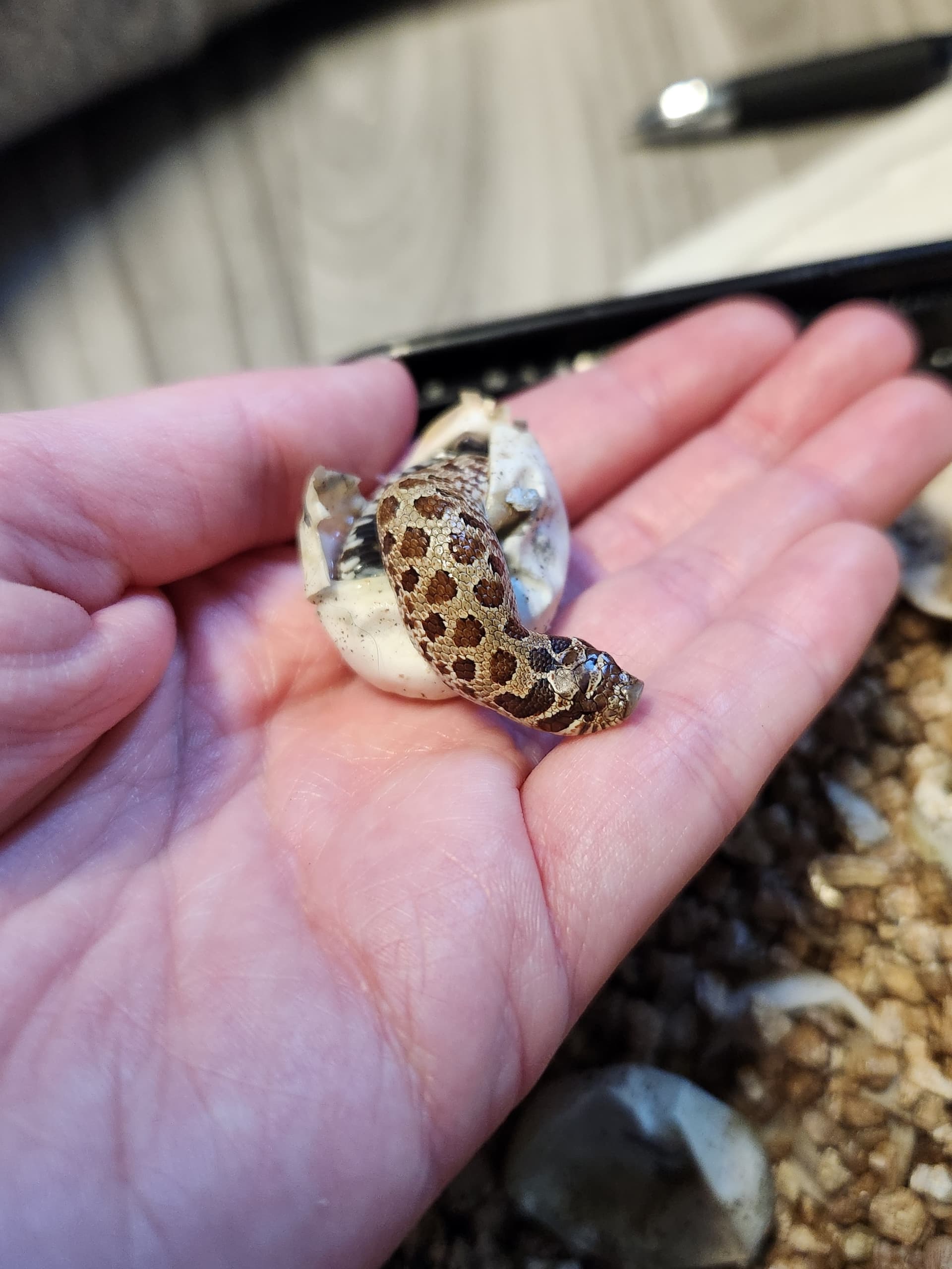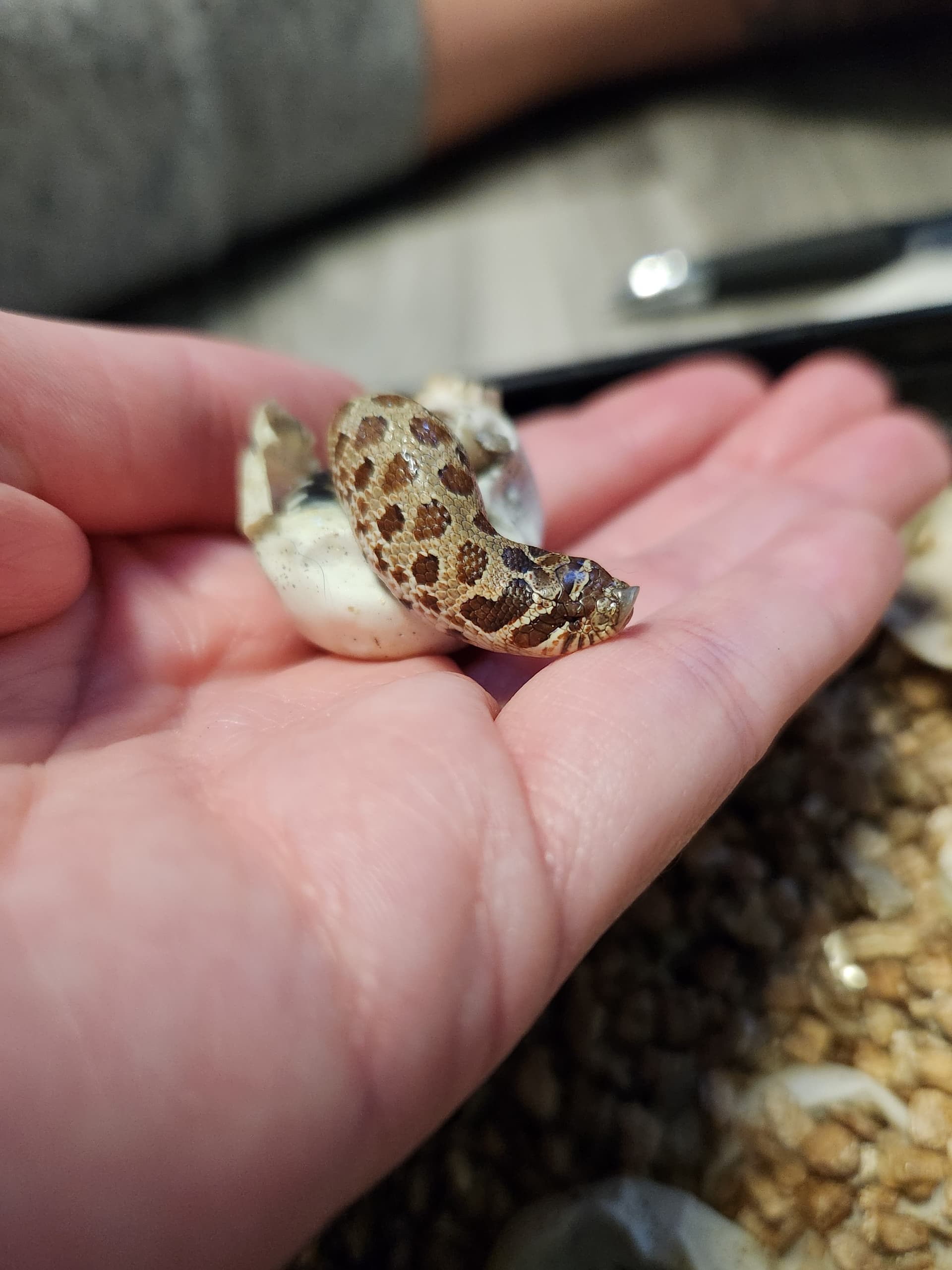 Pua finally left his egg. He’s the second smallest of the clutch at 5.9g, but still a good size. I don’t see any other defects aside from the missing eye and he’s a bit more active now. He’s absolutely precious ![]()
