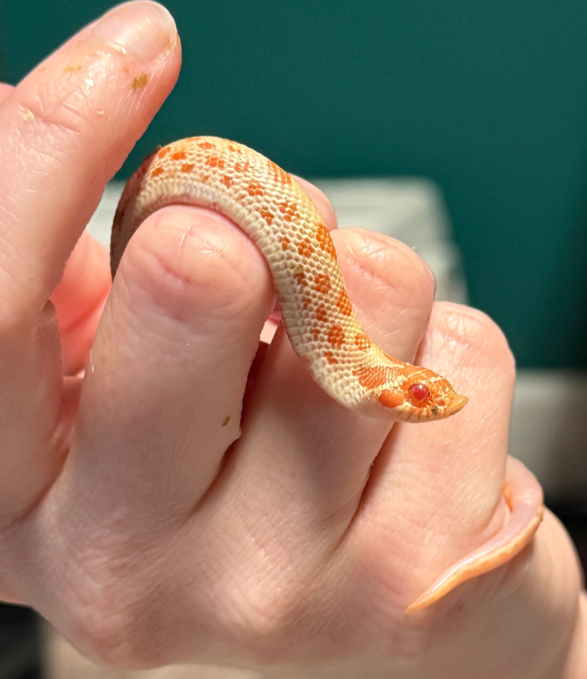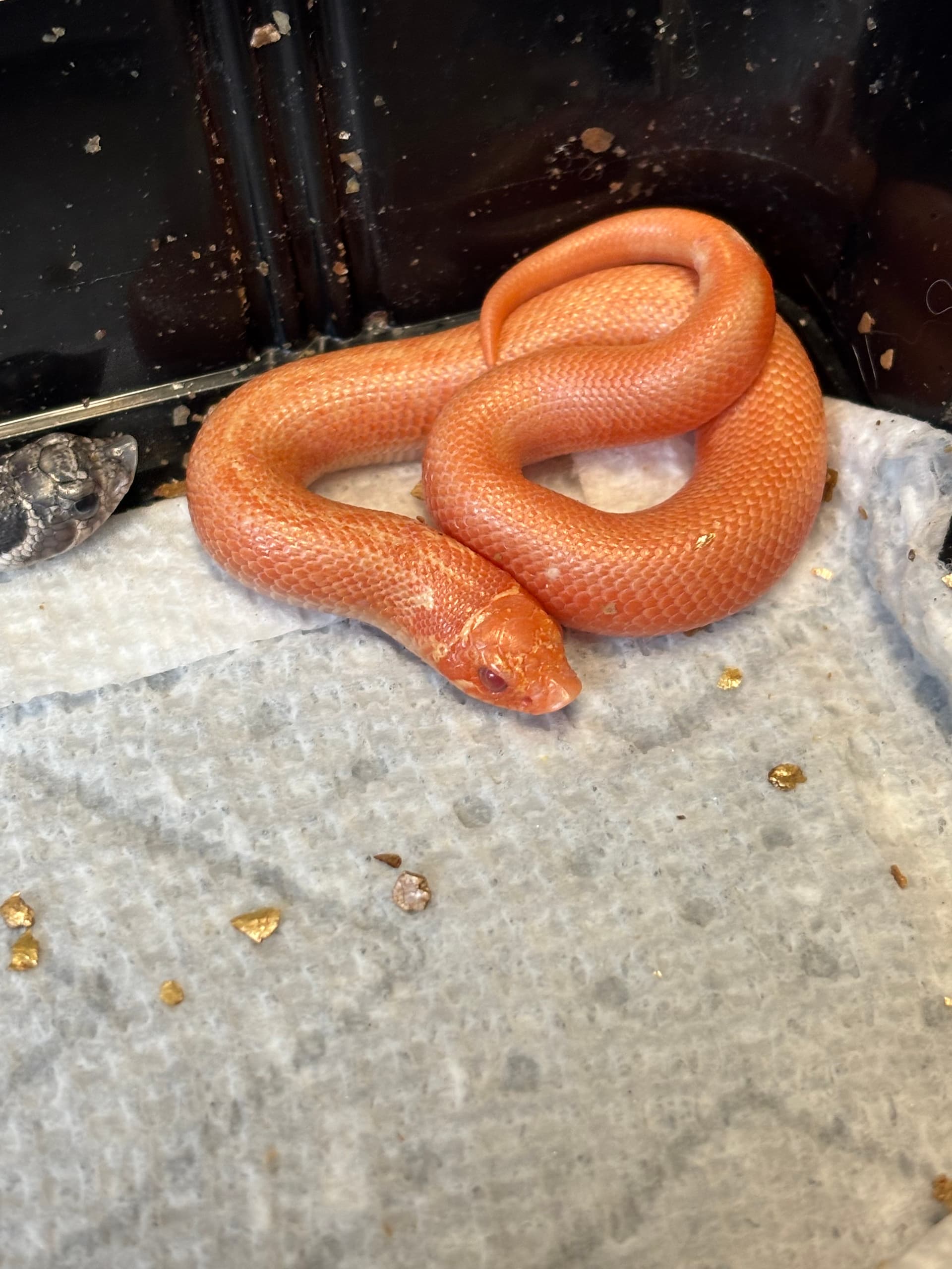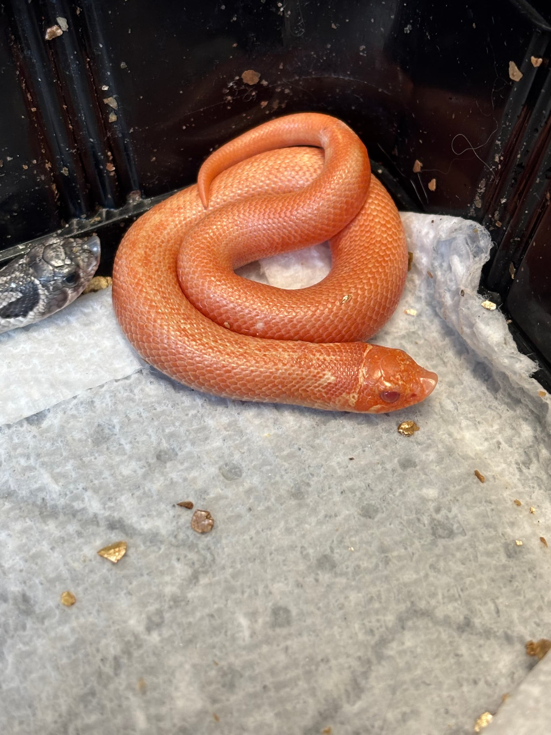 2025 The original, C’thun, is now two and I tried to pair him with an albino conda female. He took a very long time to figure it out and I think missed her window so she ended up with slugs. I’ll be trying them again next season. There also hatched out the albino “mystery” baby I already showed, and an axanthic! I will introduce them both in the next post with the photo dump.