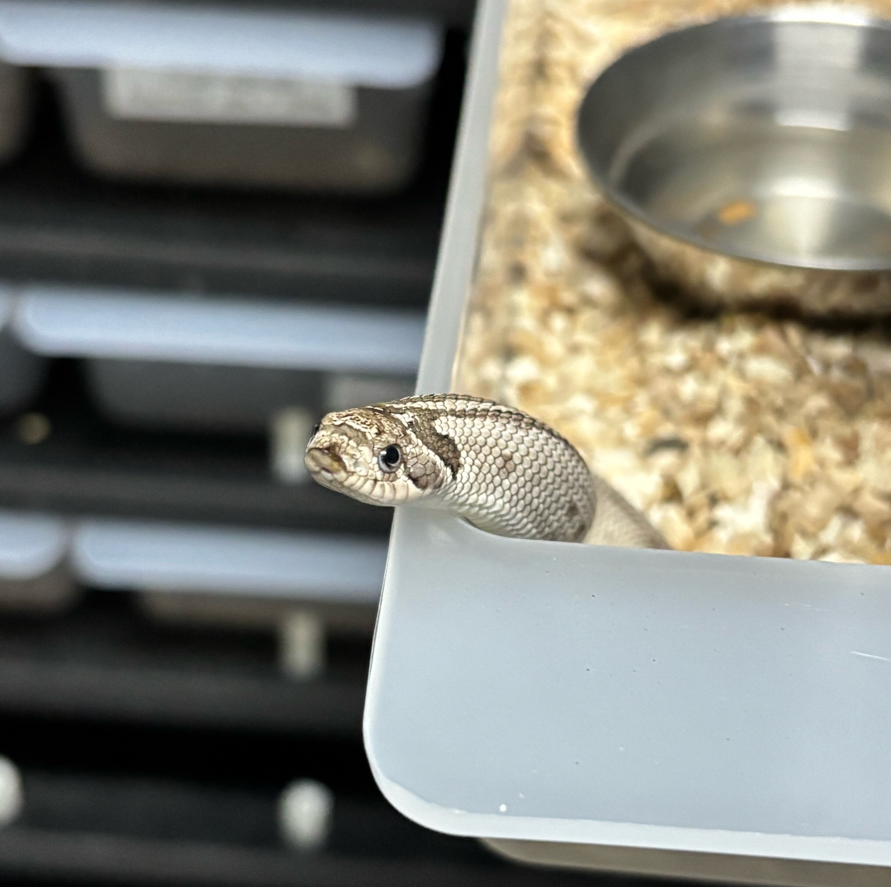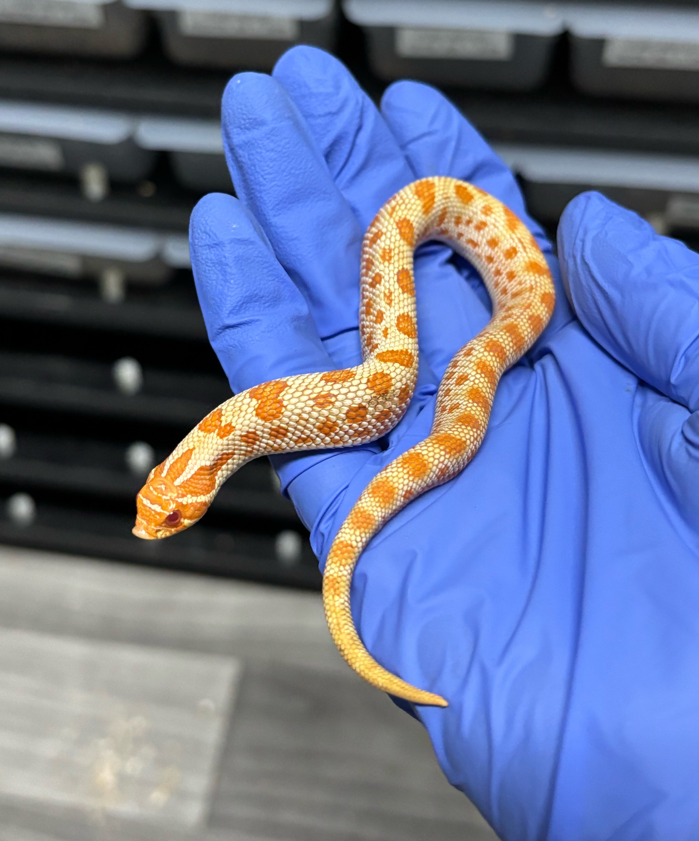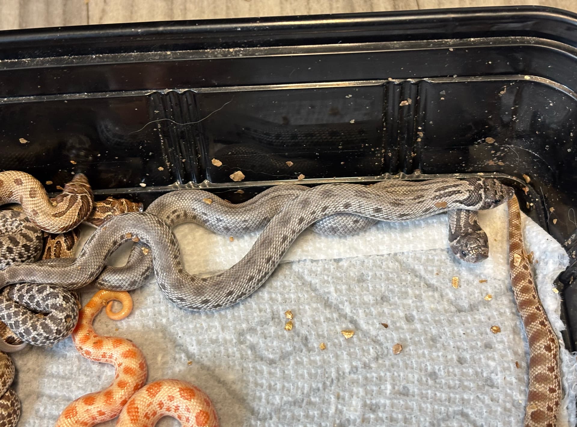 2025 The original, C’thun, is now two and I tried to pair him with an albino conda female. He took a very long time to figure it out and I think missed her window so she ended up with slugs. I’ll be trying them again next season. There also hatched out the albino “mystery” baby I already showed, and an axanthic! I will introduce them both in the next post with the photo dump.