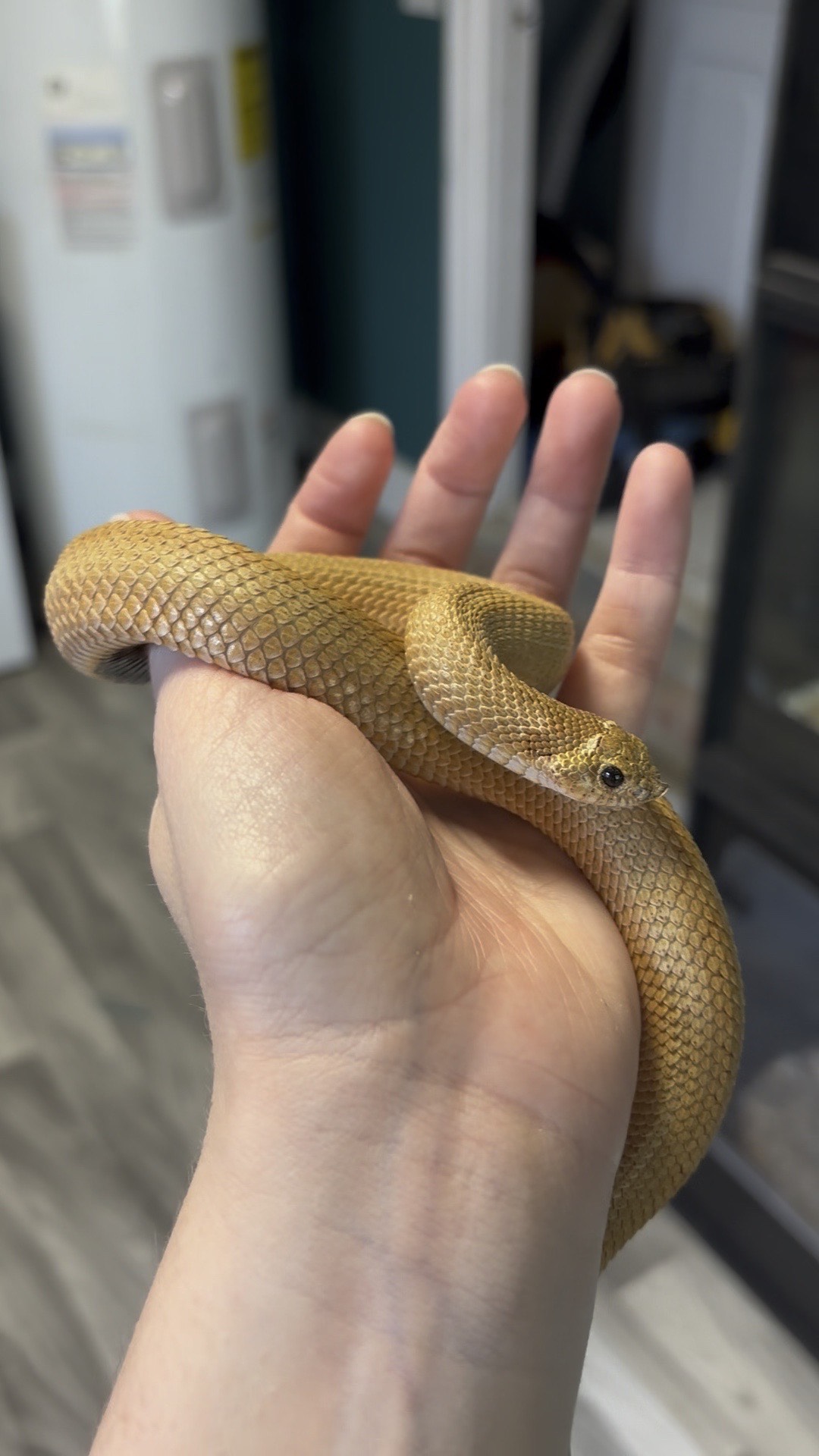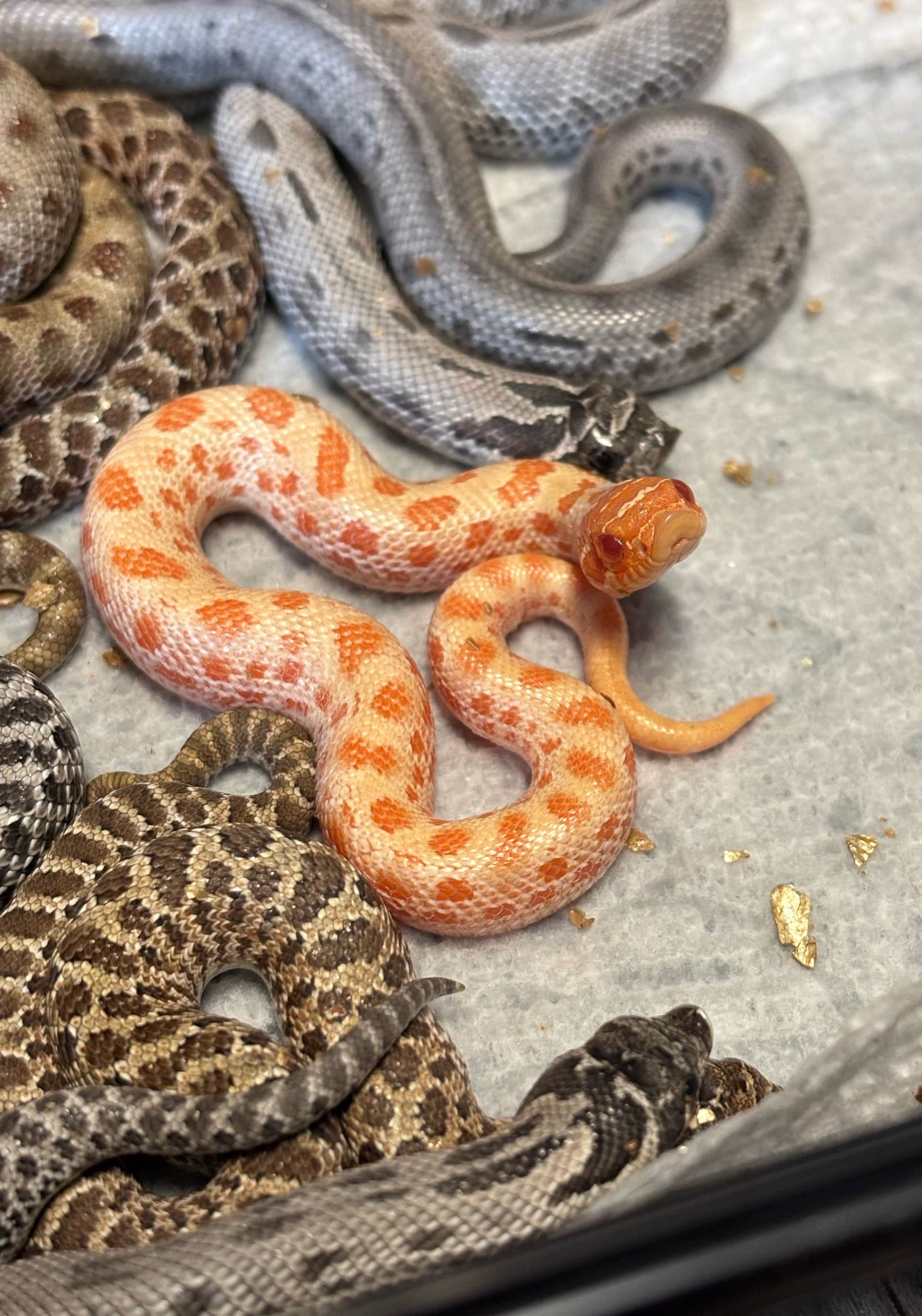 The biggest difference and reason why I think it is a mutation is because Jose’s cinnamons still have a distint pattern and saddles. Every single one that I have produced have no saddles and the only distinguishable pattern is two stripes on either side of the dorsal. In C’thun these have faded and are barely visible now. If it were true Cinnamon it should express on top of the normal Western hognose patterns.