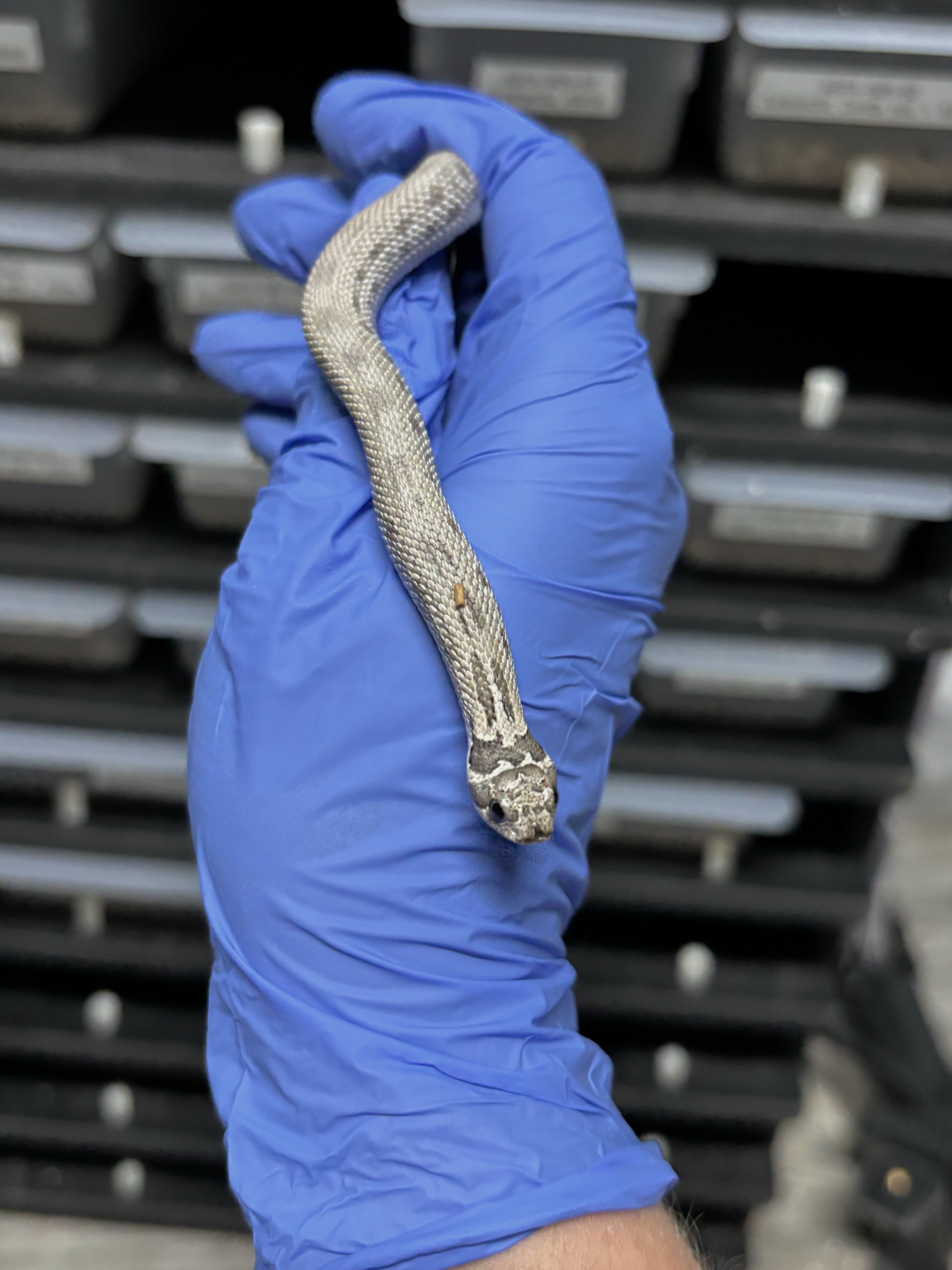 The snake hatches out quite dark and lightens as well as pixelates as it sheds, the same as Cinnamon