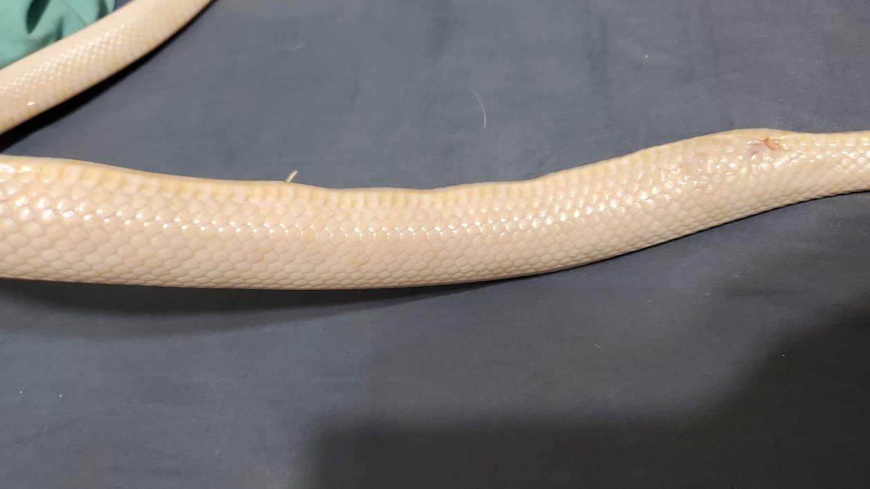I’m not familiar enough with medical issues or surgical recovery things in snakes to comment on whether it’s possibly something not egg-related. The even spacing really looks like eggs to me, but the lumps in general are more visible than what I’d expect for a gravid corn. But if she’s on the slender side or possibly other reasons, I could see them being extra visible. How does her body shape look in the lower two thirds? Does she have that ‘fat triangle’ look that gravid corns get?