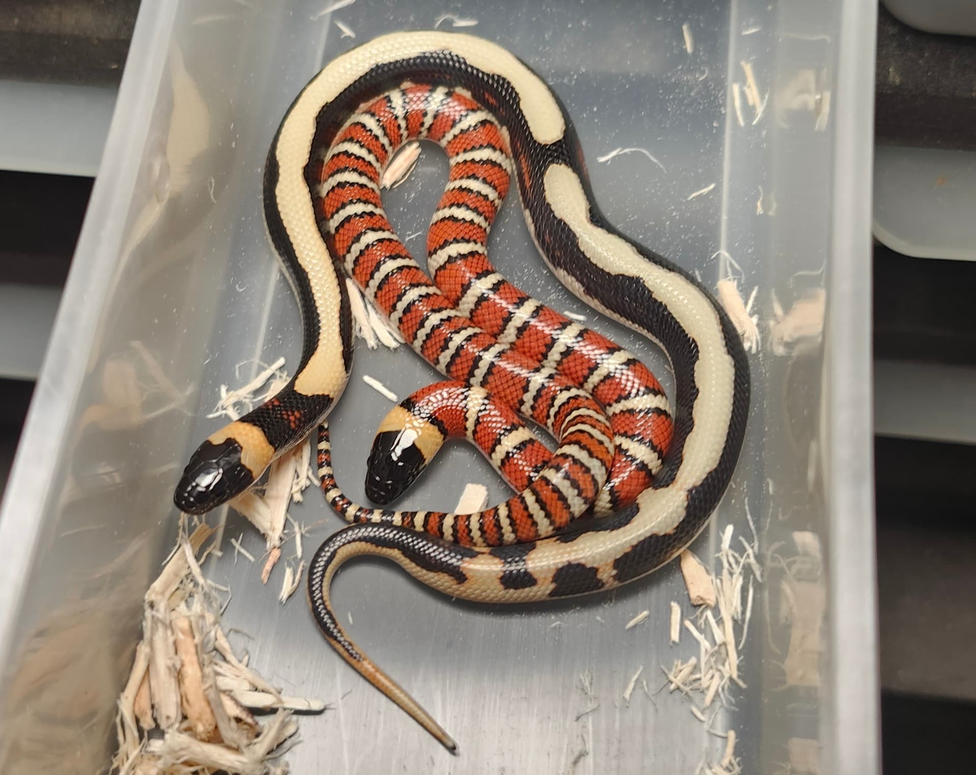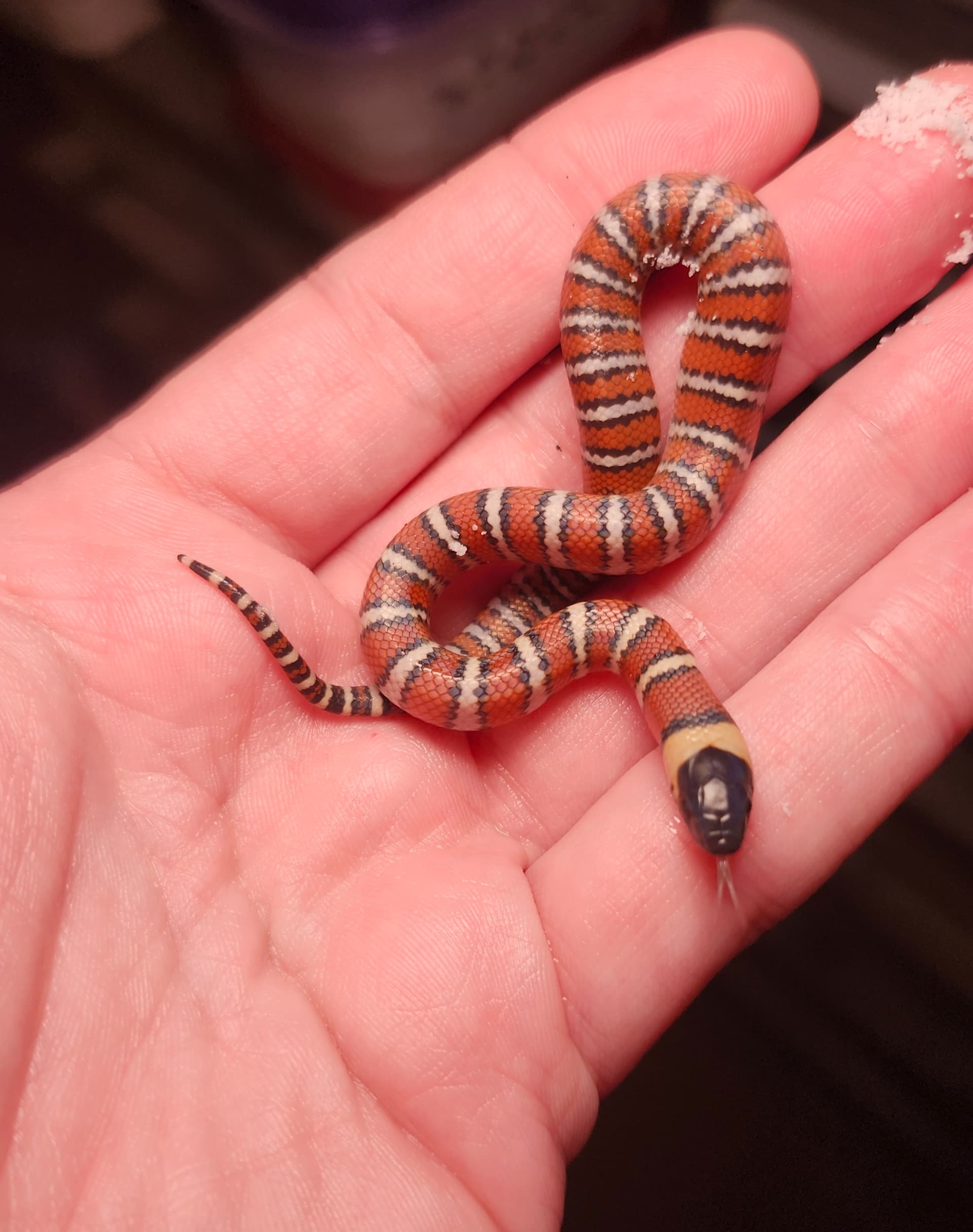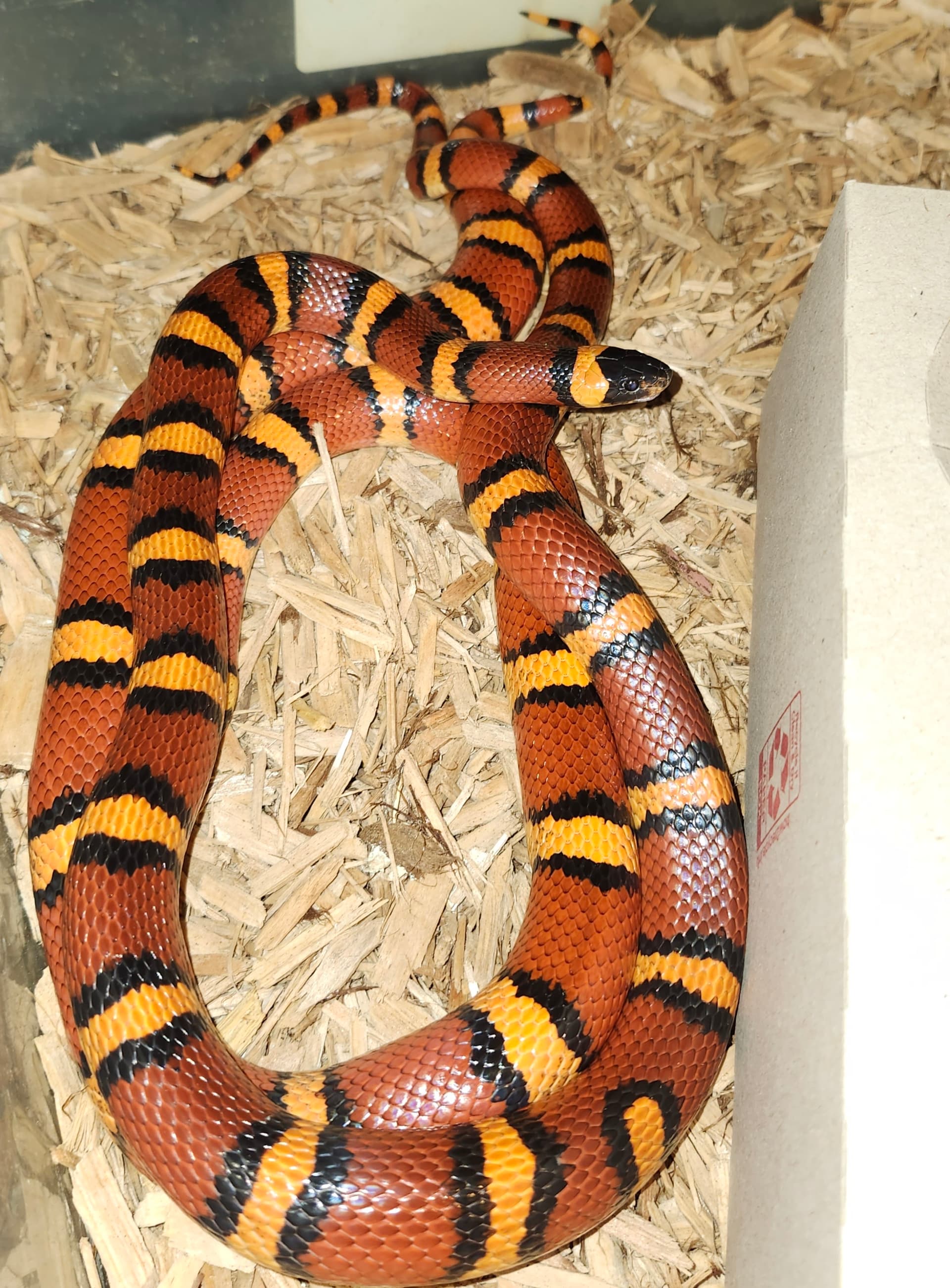 This is a Transformer morph Mexican Milk snake. Adult male, hatched 2014.