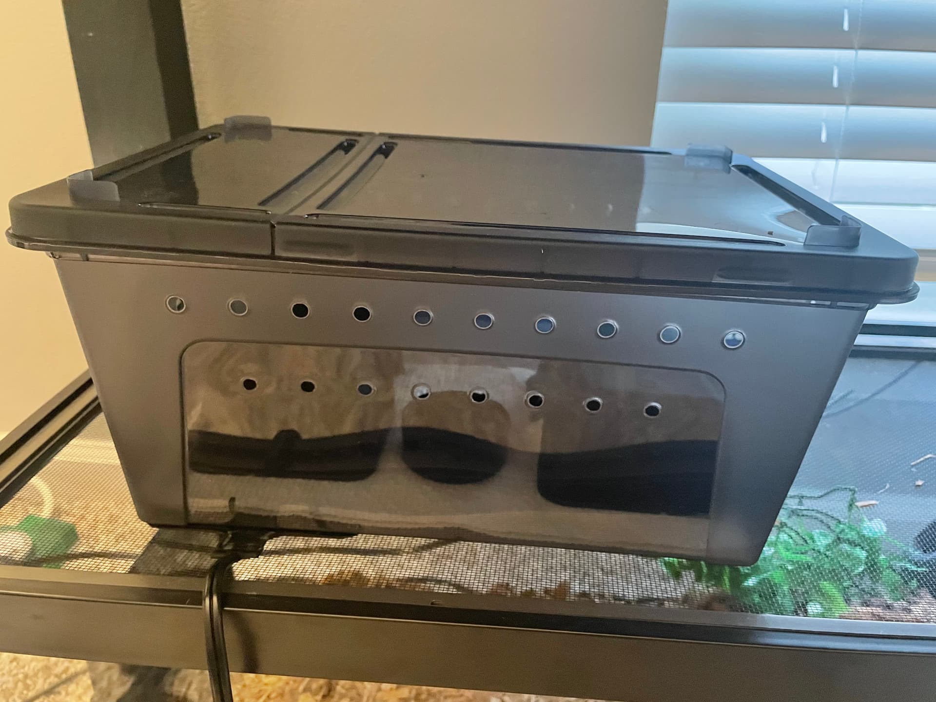 @erie-herps every three days or so. only handling when trying new things with its enclosure. I do agree it is stressed I’m not sure how to make it less stressed as I have gone basically as small as I can with the enclosure