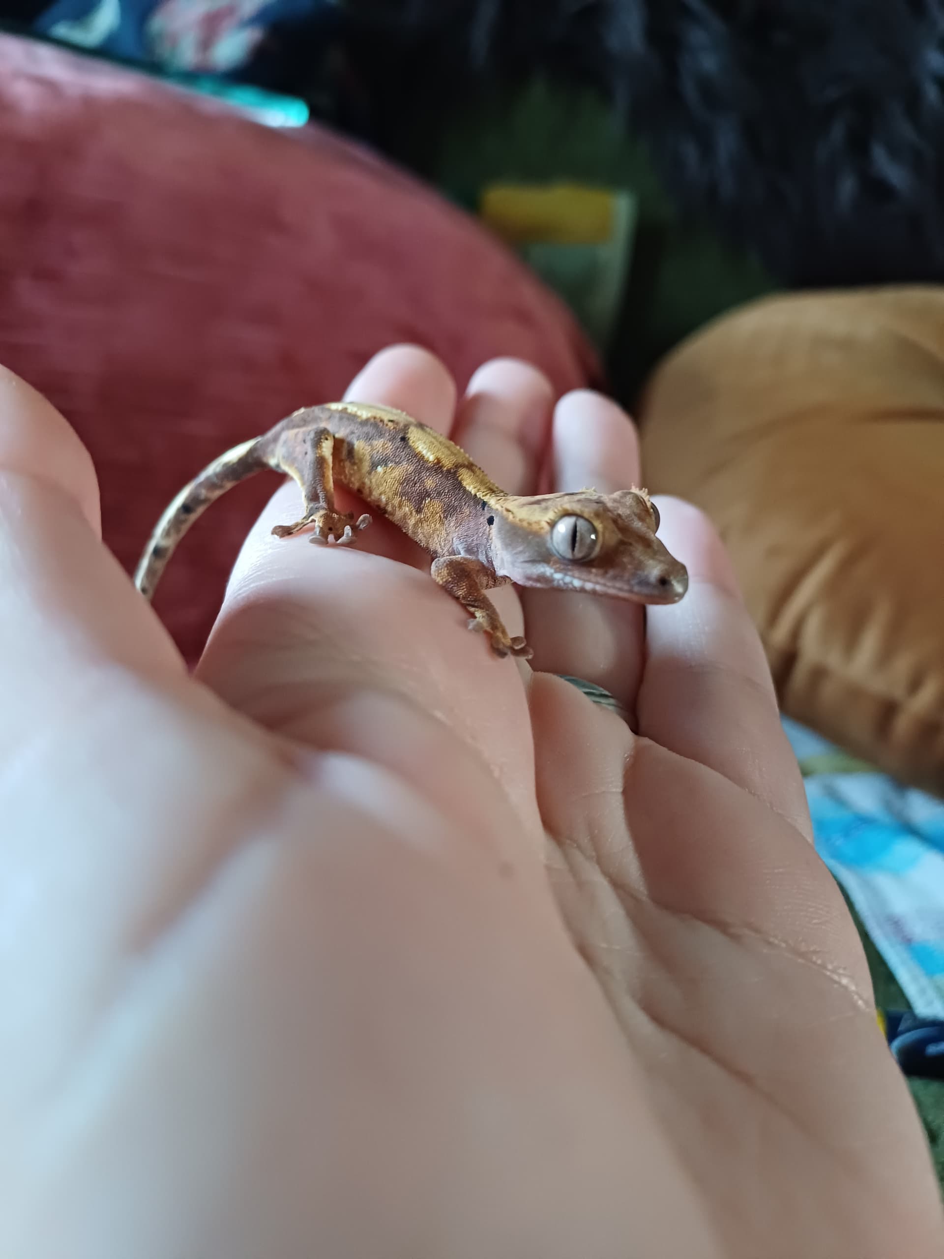 That’s why I thought maybe I should change enclosures once. To either bigger (more space to run and hide) or a baby box (easier to access without accidentally touching gecko).