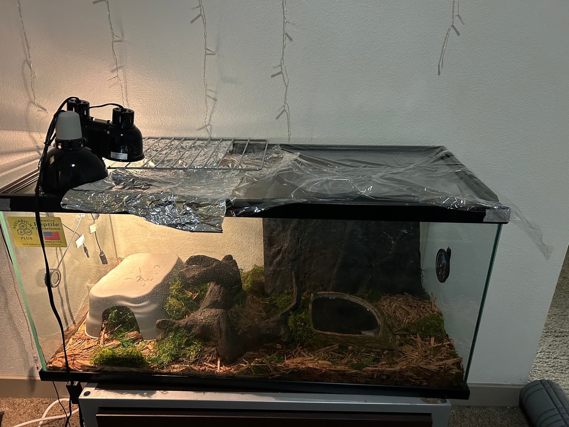 Two weeks ago, I fixed the recurring issue of my ball python probing toward the top of the cage as if it was trying to escape, so I installed a thermostat to ensure the warm side remains at 88-92 degrees. I also covered the top of the cage to ensure humidity remains at 40%.