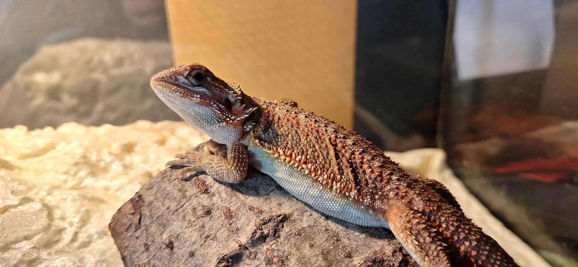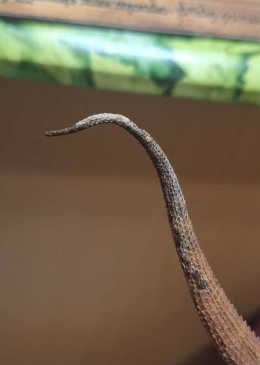 I inspected her tail closer and it will 100% need to be amputated at least a bit, there’s some “healing” scabs from a wound, my guess is because she was shipped and probably lived with other dragons before reaching the shop. There’s some stuck shed too, the tip looks dead. Gave her tail a betadine mixture dip and will bring her to a vet as soon as possible