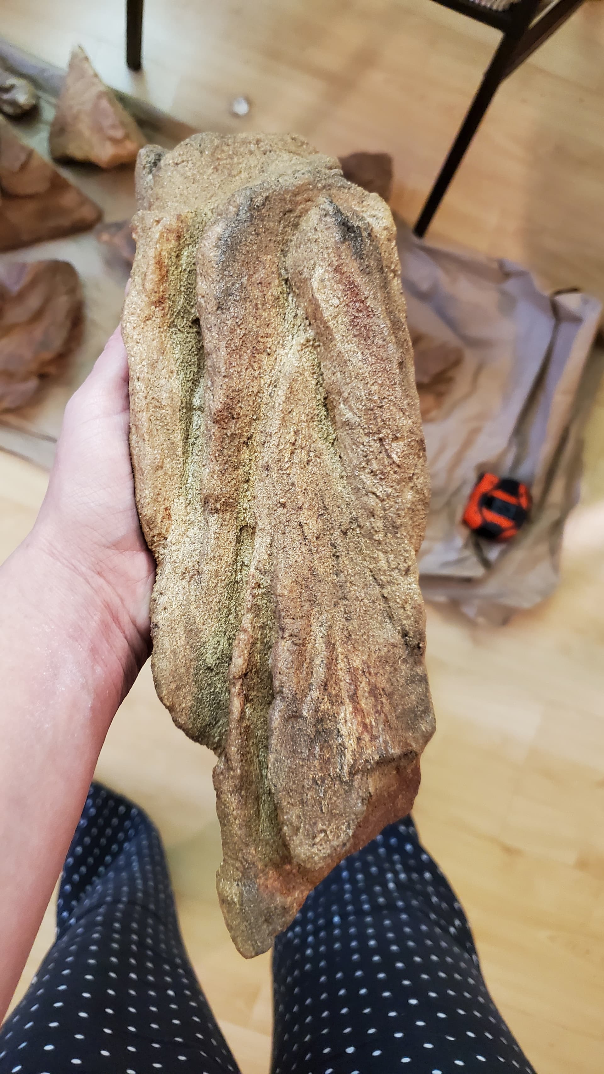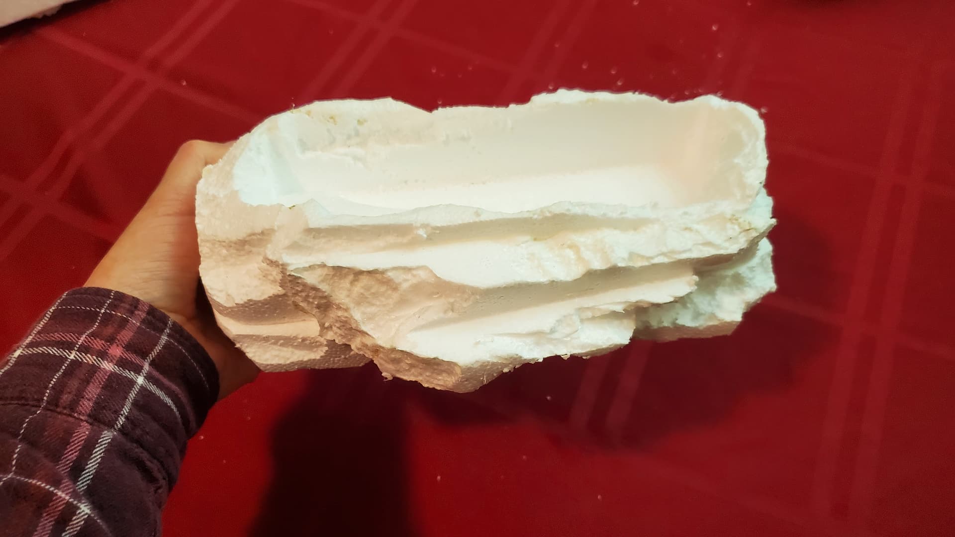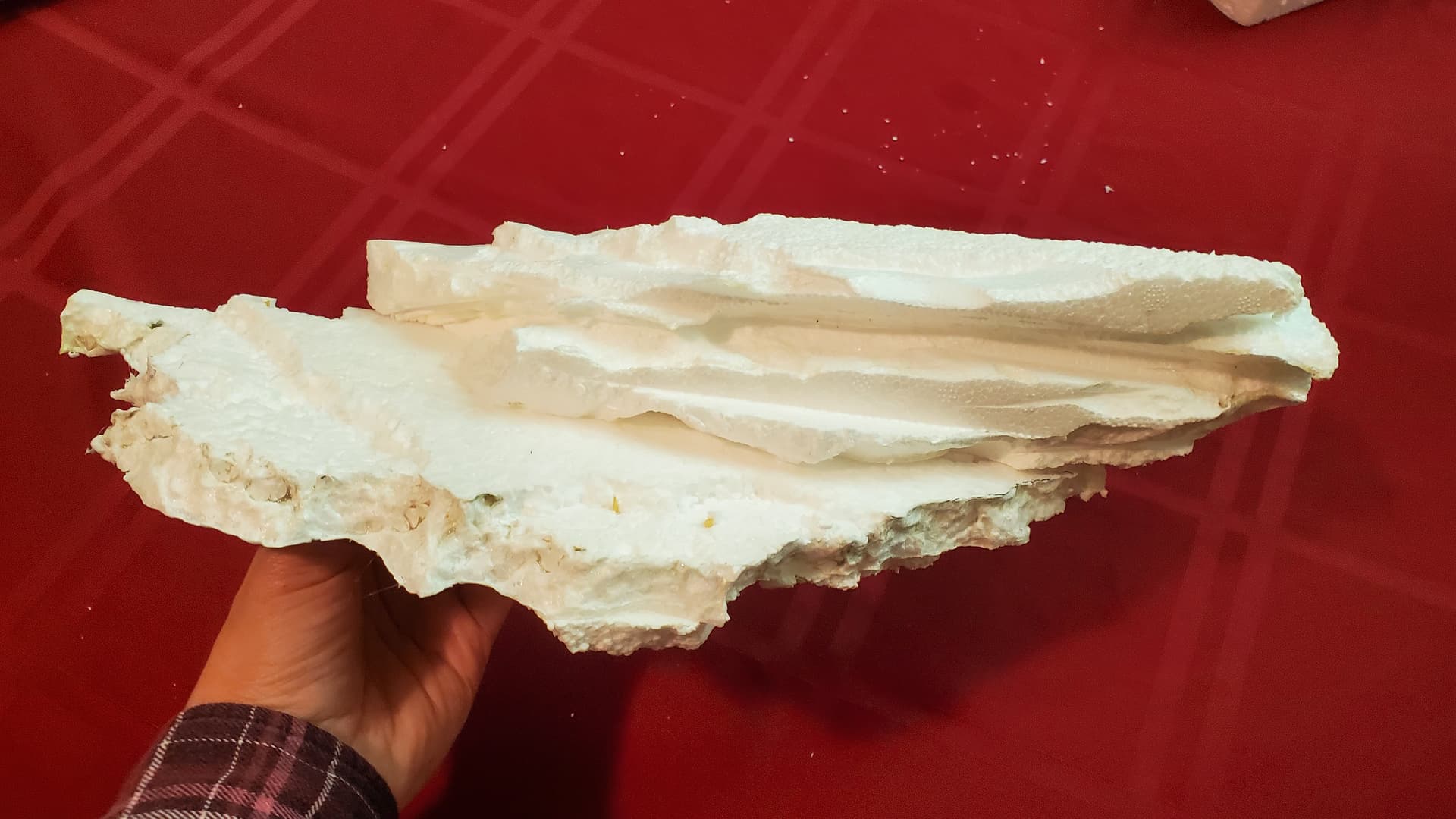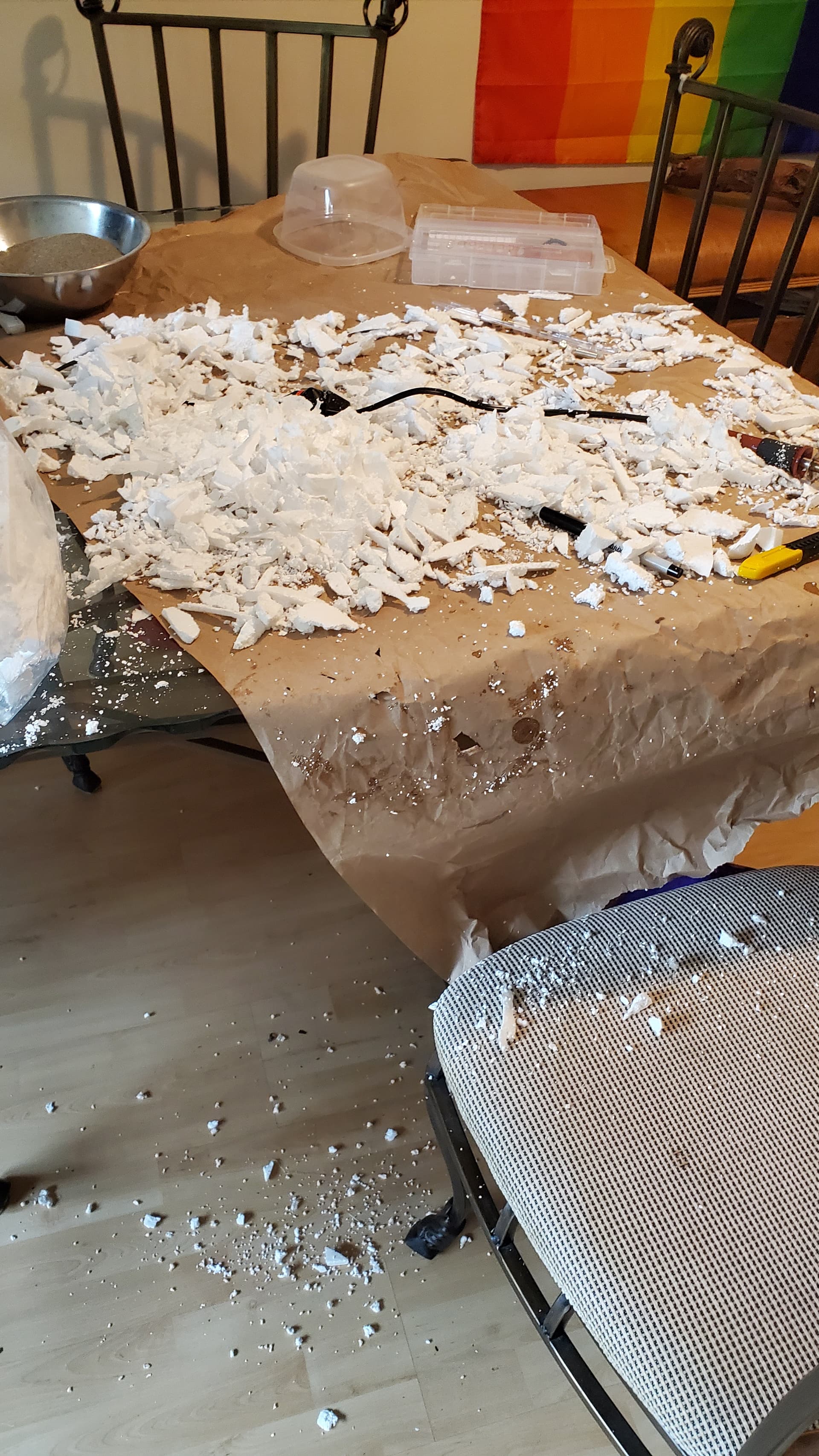 Trying to riff off of the shape of the rocks I had brought home, I carved a whole bunch – two batches, I didn’t photograph the first batch – out of styrofoam. My living room was a bit of a mess after that. (This is foreshadowing.)
