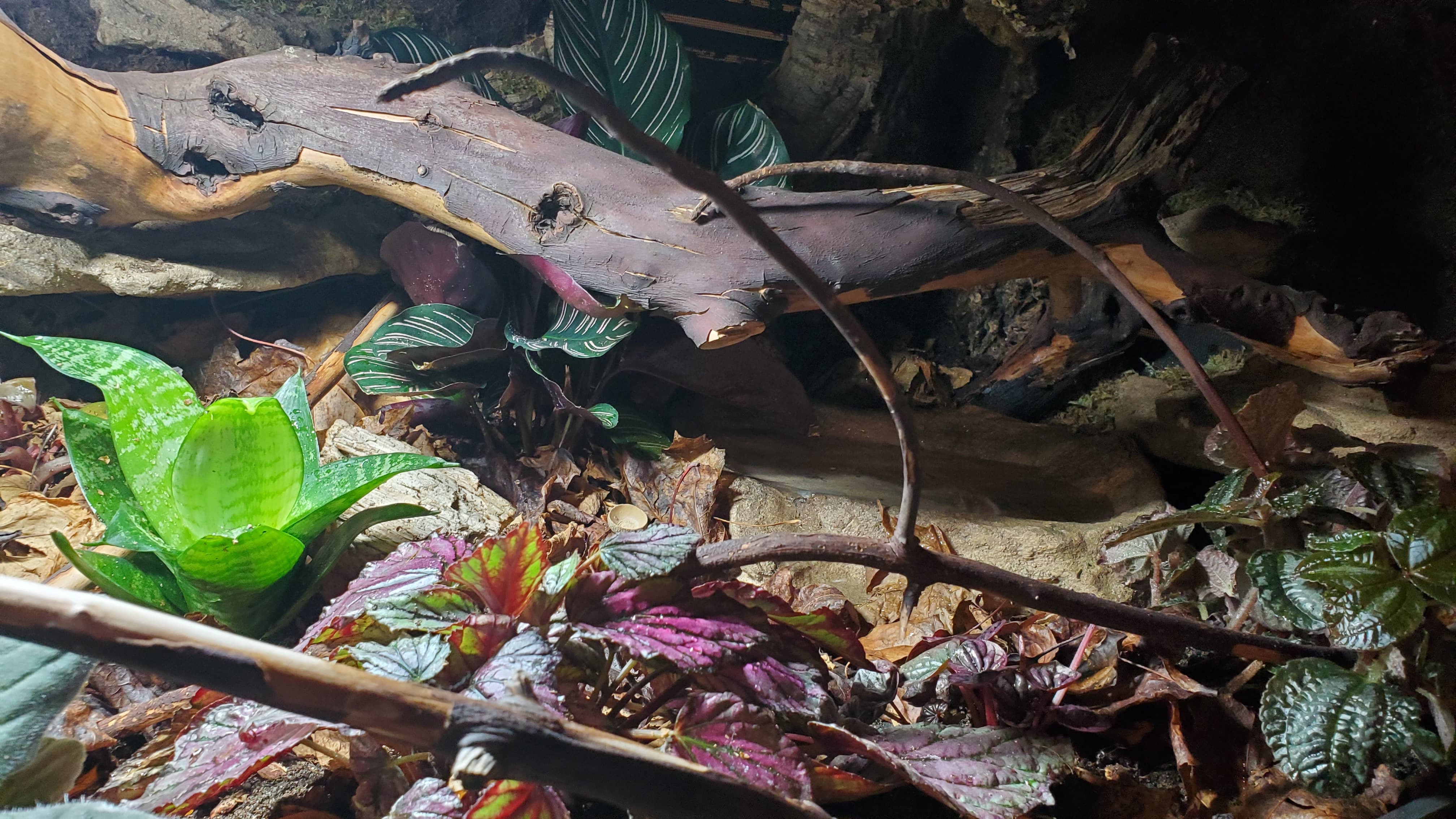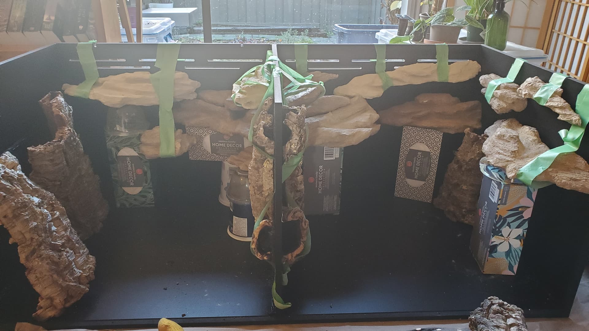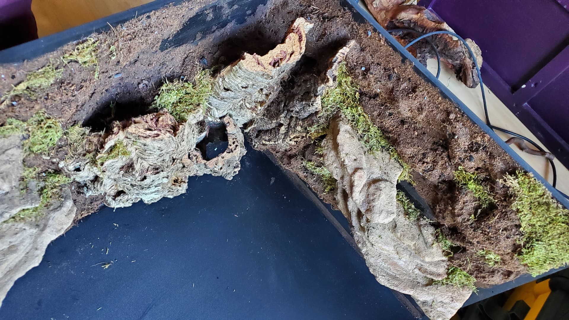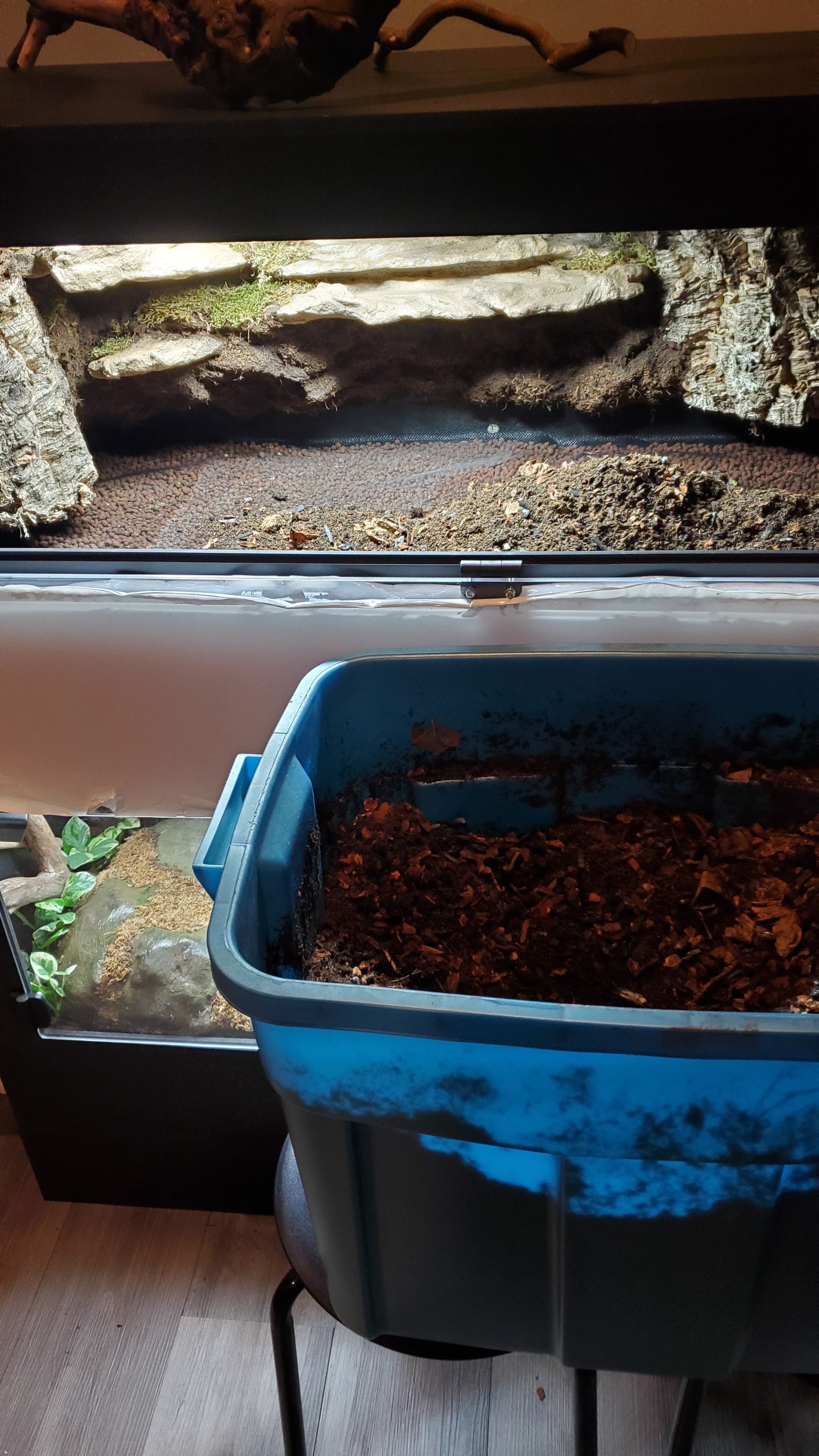 I’m pretty happy with it. There are a ton of nooks and crannies for her to enjoy and explore, a solid heat gradient, and later, after things settle a bit, I tucked a couple of little coconut hides in unobtrusive spots.
