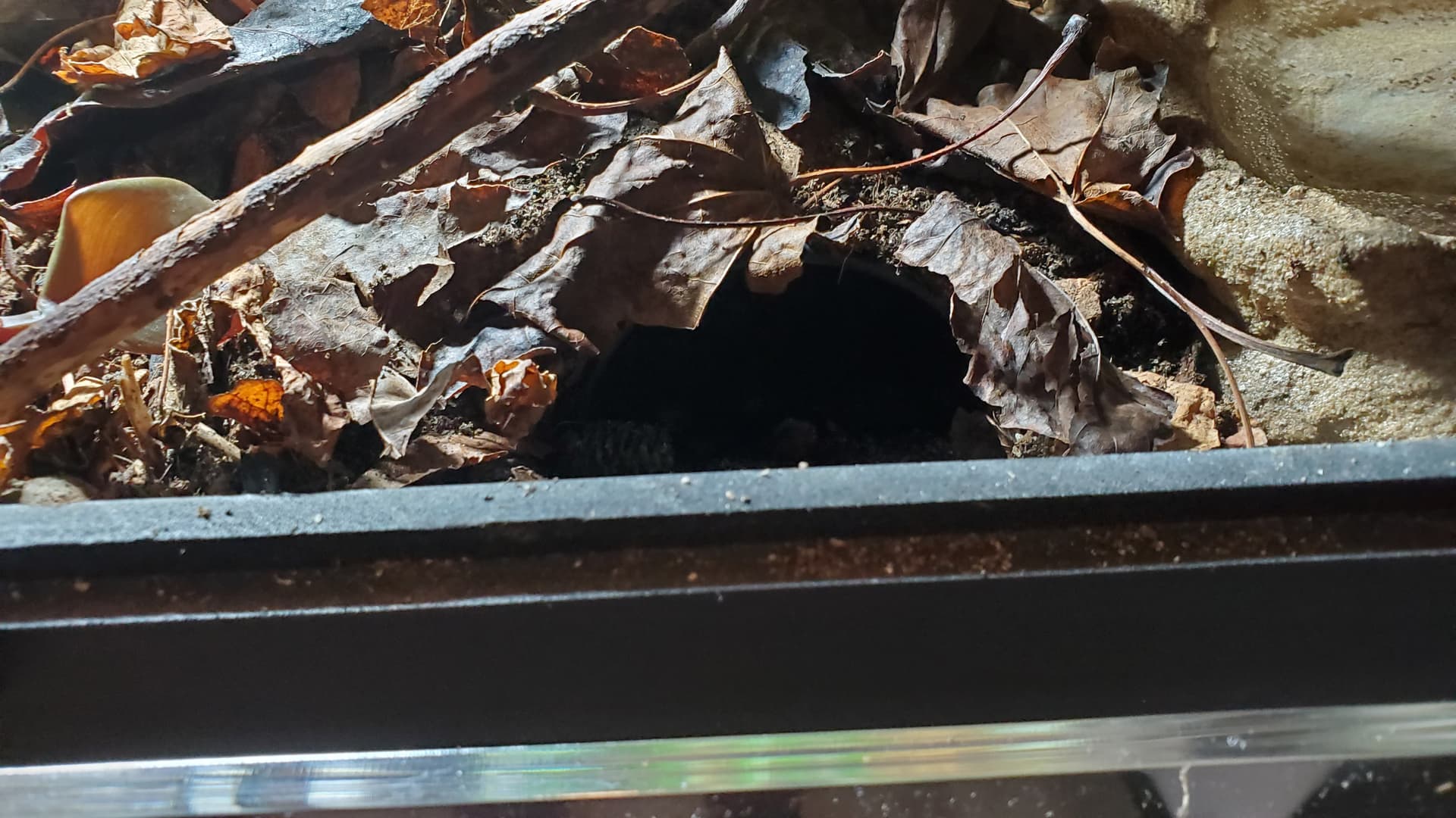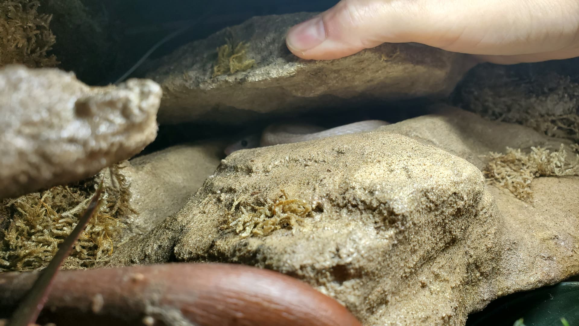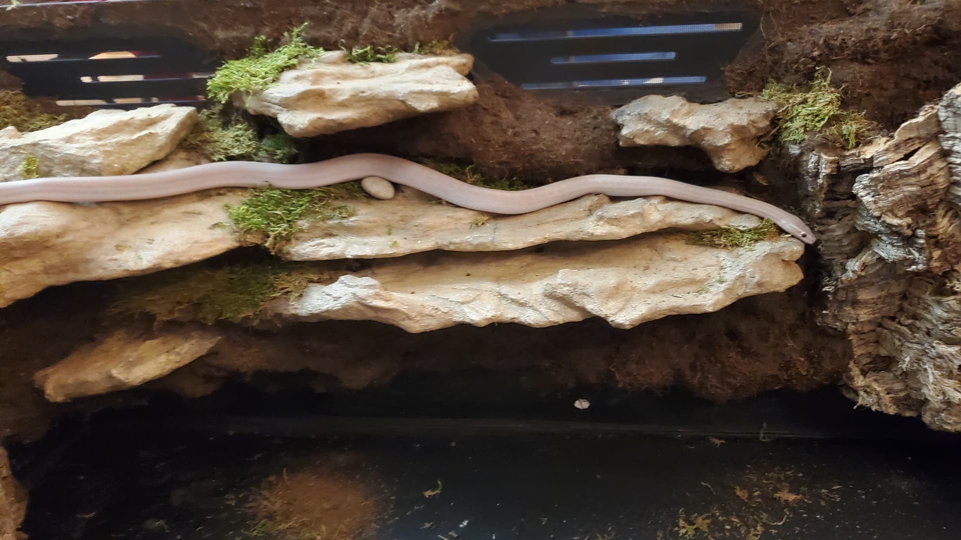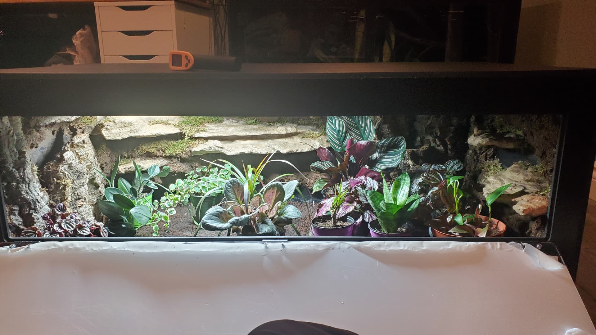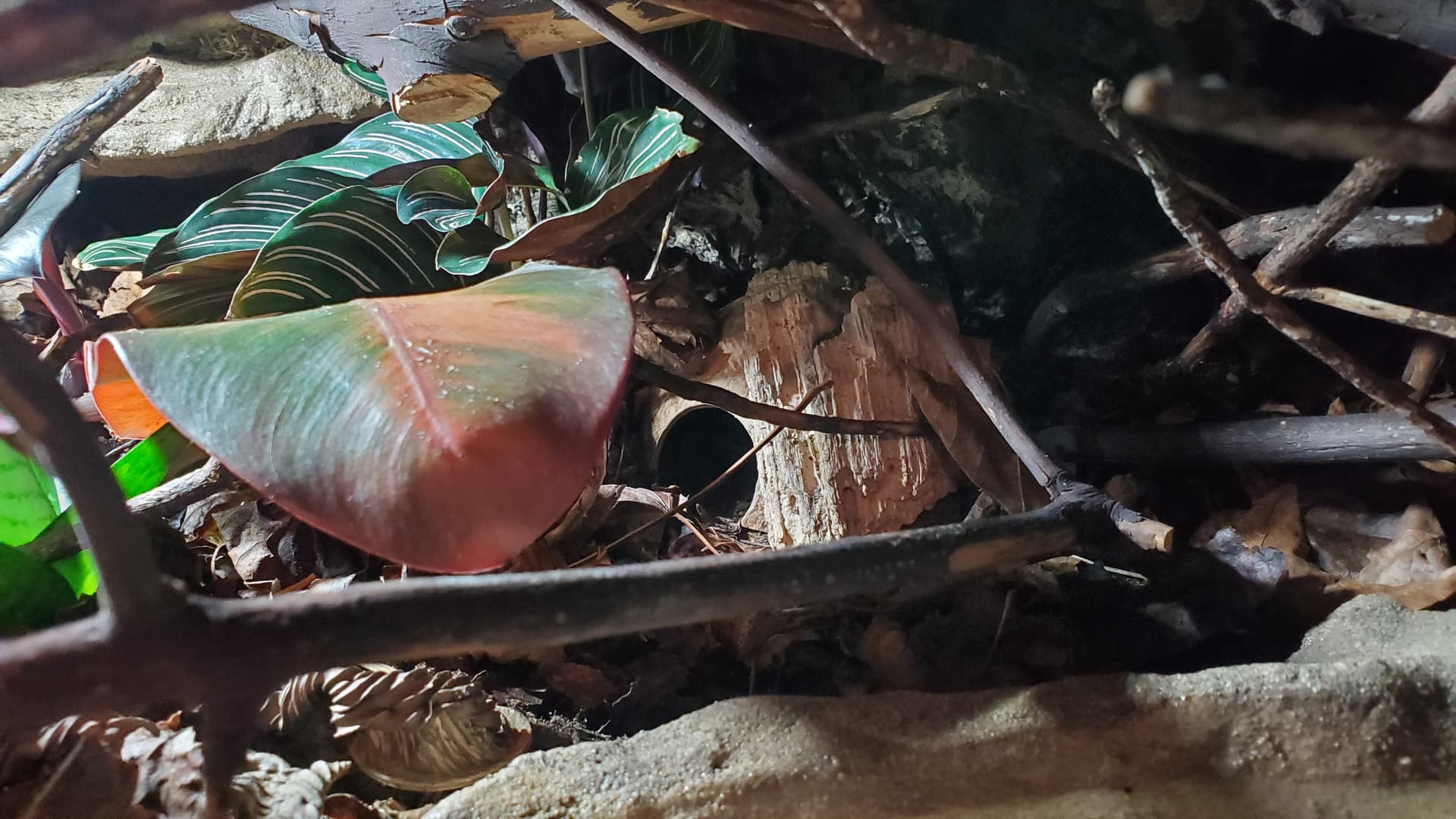 I’m pretty happy with it. There are a ton of nooks and crannies for her to enjoy and explore, a solid heat gradient, and later, after things settle a bit, I tucked a couple of little coconut hides in unobtrusive spots.