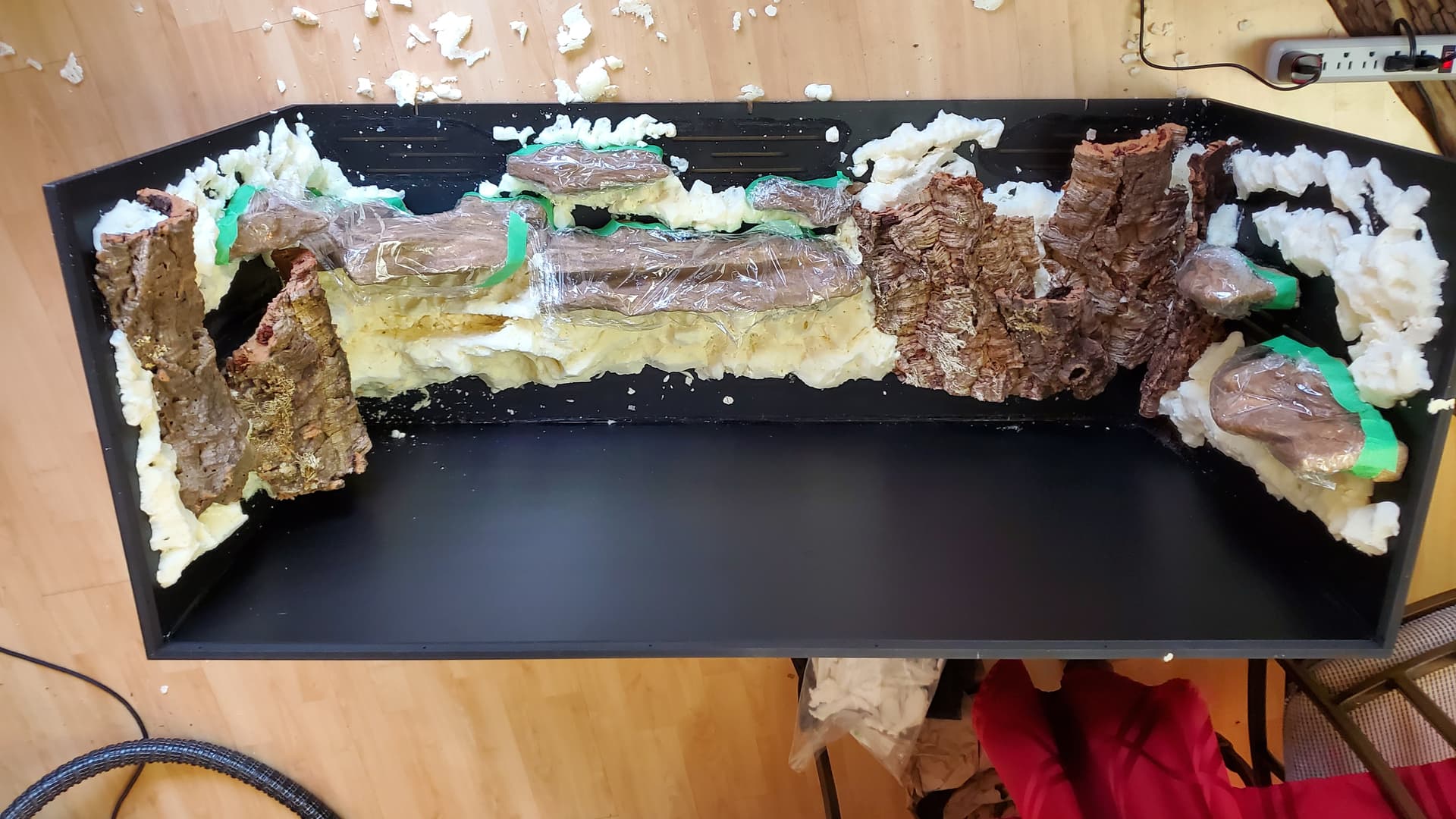 Then, foam placement and carving (great, more foam; this is after cleanup) –
