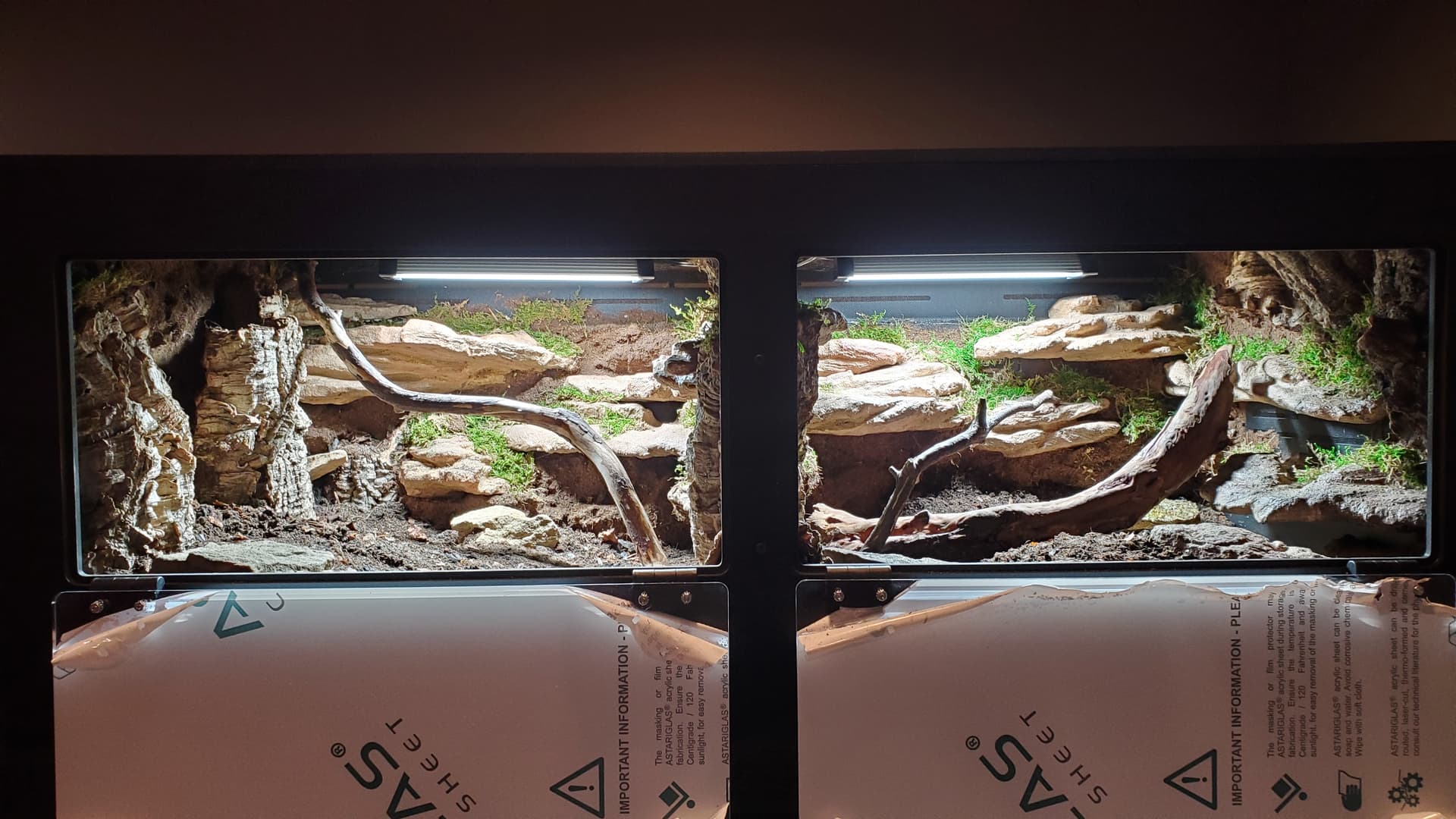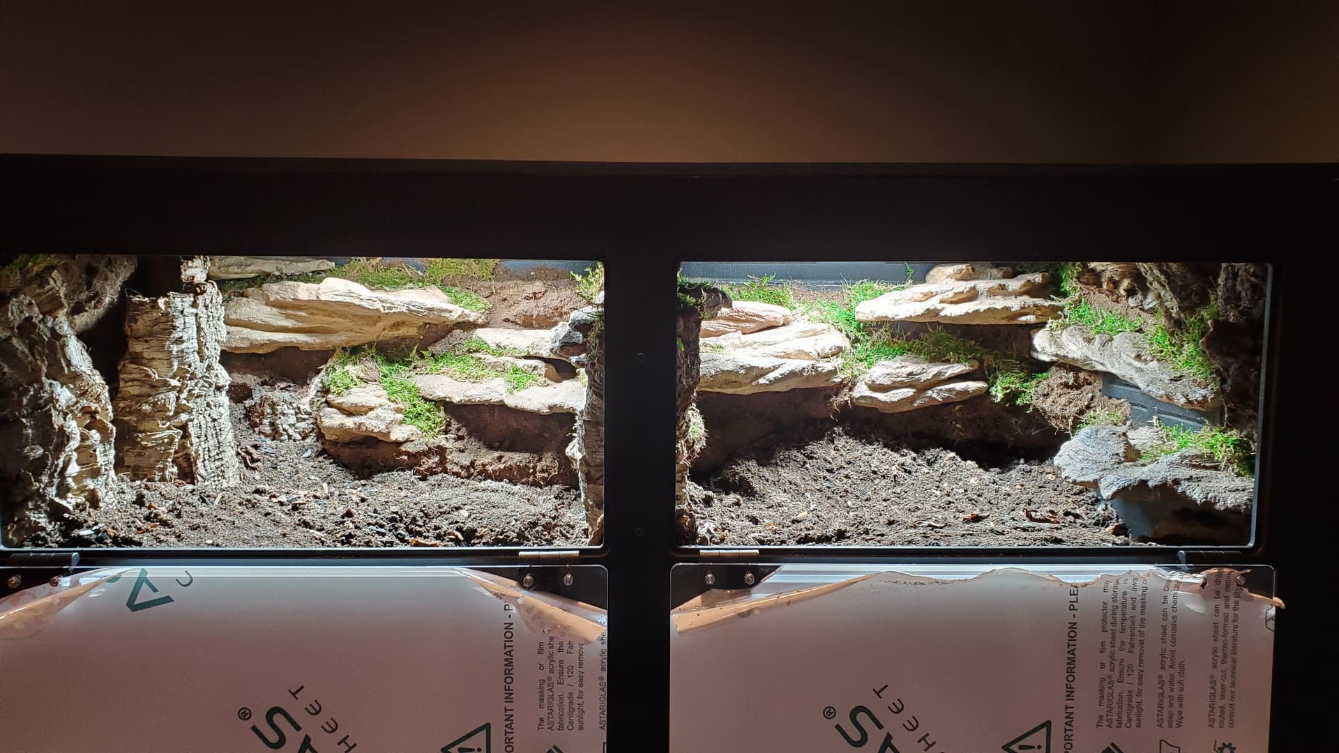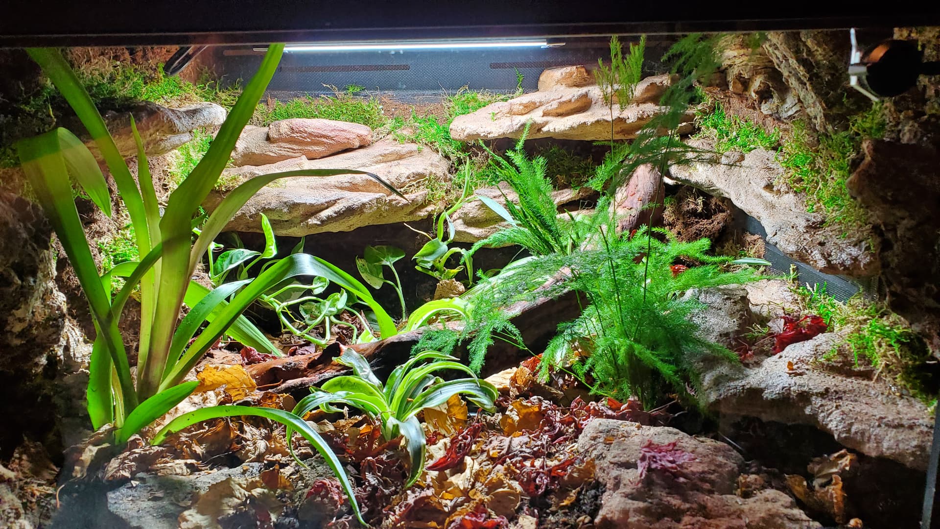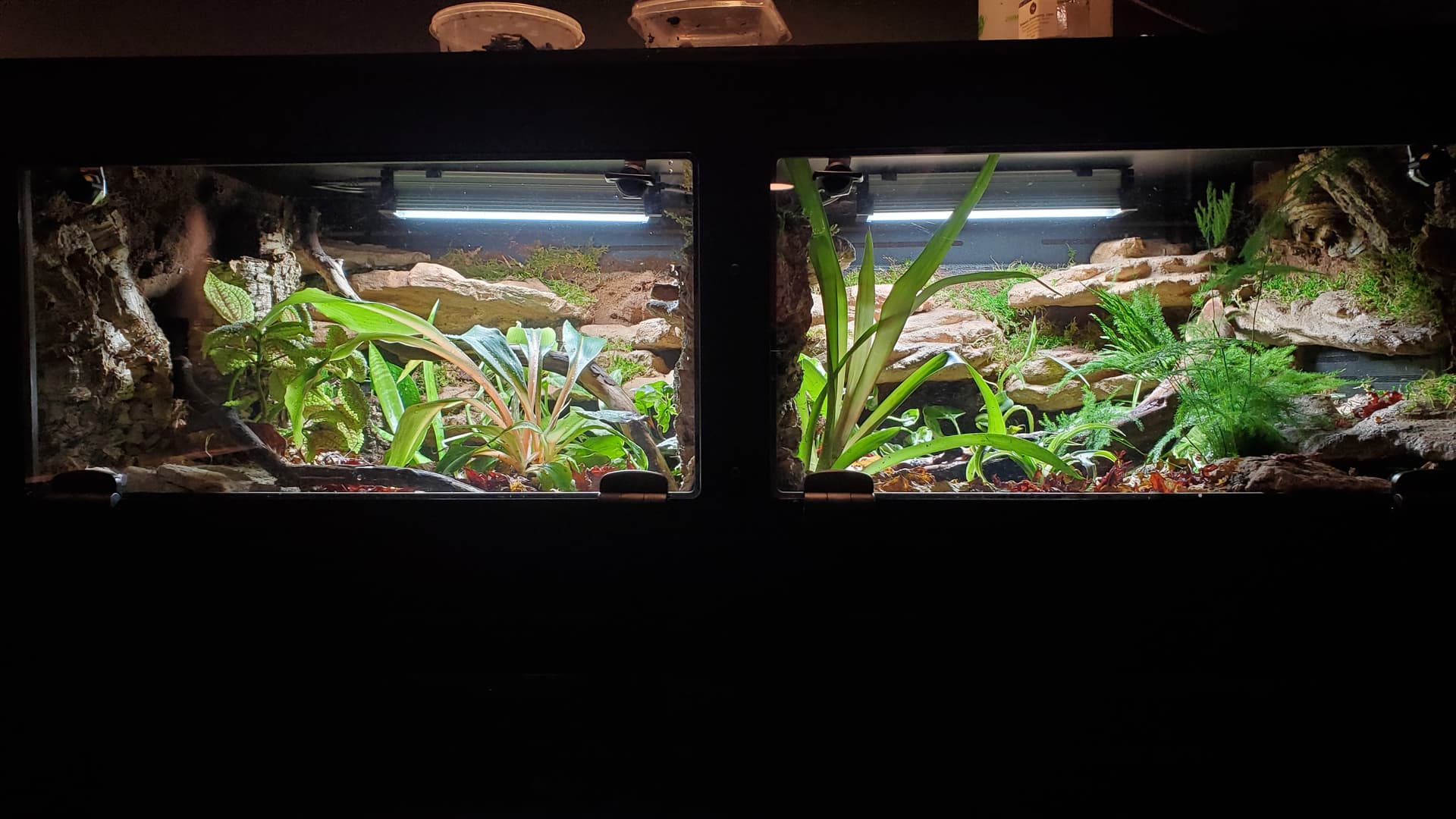 We already have a ball python, Hestia, in a bioactive 4x2x2, so we decided to go with a 4x2x1.5 for Andromeda so they could stack. She’s much smaller than Hesty – the 4x2 footprint is a mansion, and gave me a chance to play with planting and scaping a whole new space without the destructive tendencies of ball python booty to reckon with.