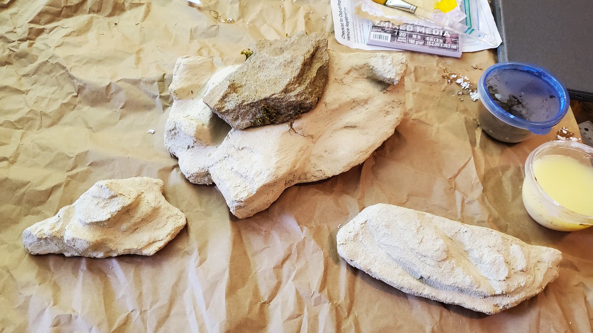 That’s one of the real, inspiration rocks on top of one of the fake, grouted rocks. So at this stage they look kinda play-doughy, yeah? The next step brings them to life quite a bit more – painting.