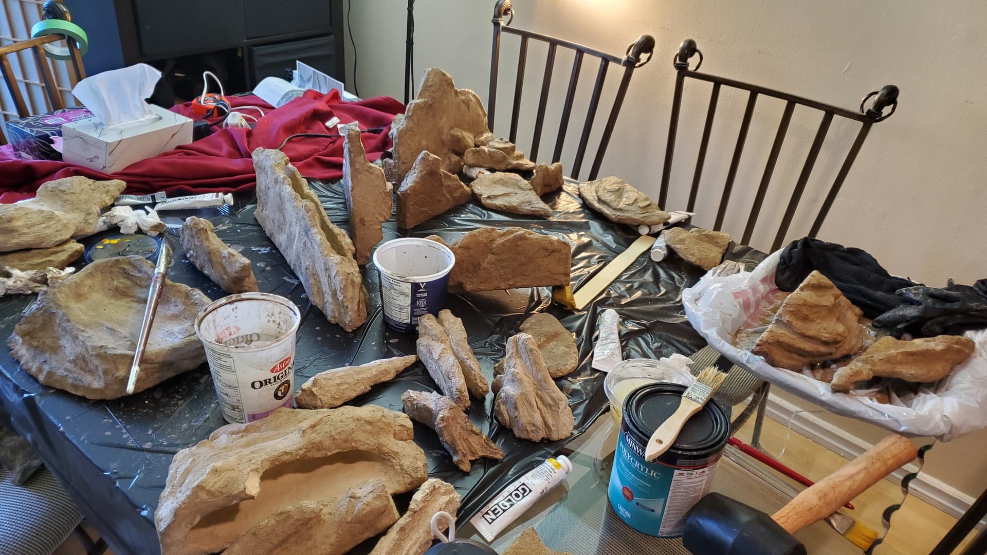 Man, I carved and grouted so many rocks. This is about half. No photos of the grouting, but I mixed the grout up in small batches and did a couple hours of grouting at a time. This was arguably the longest step in this whole process – I was getting very picky about the look of these suckers, so I spent a lot of time building up grout and then carving detail back in.