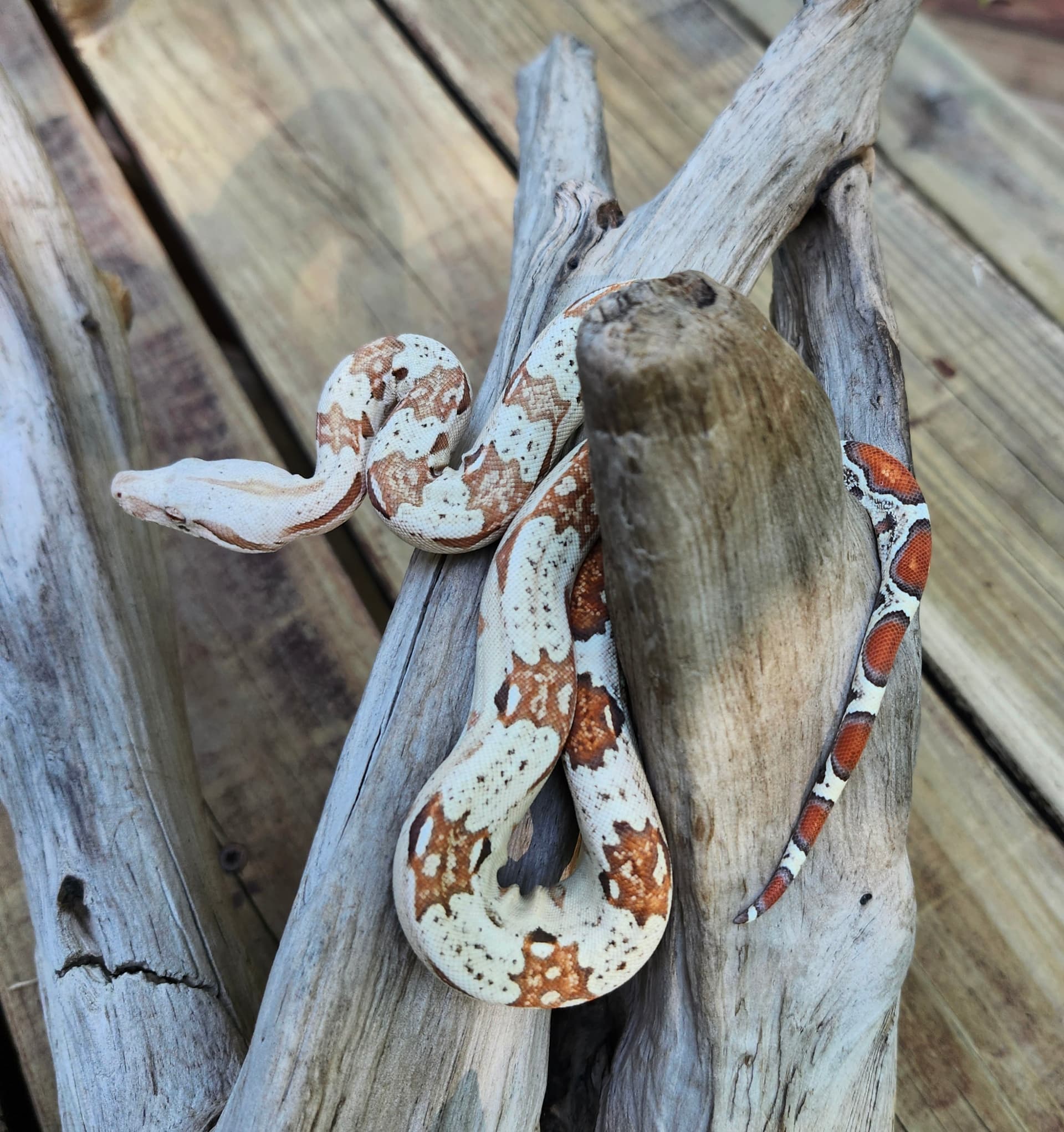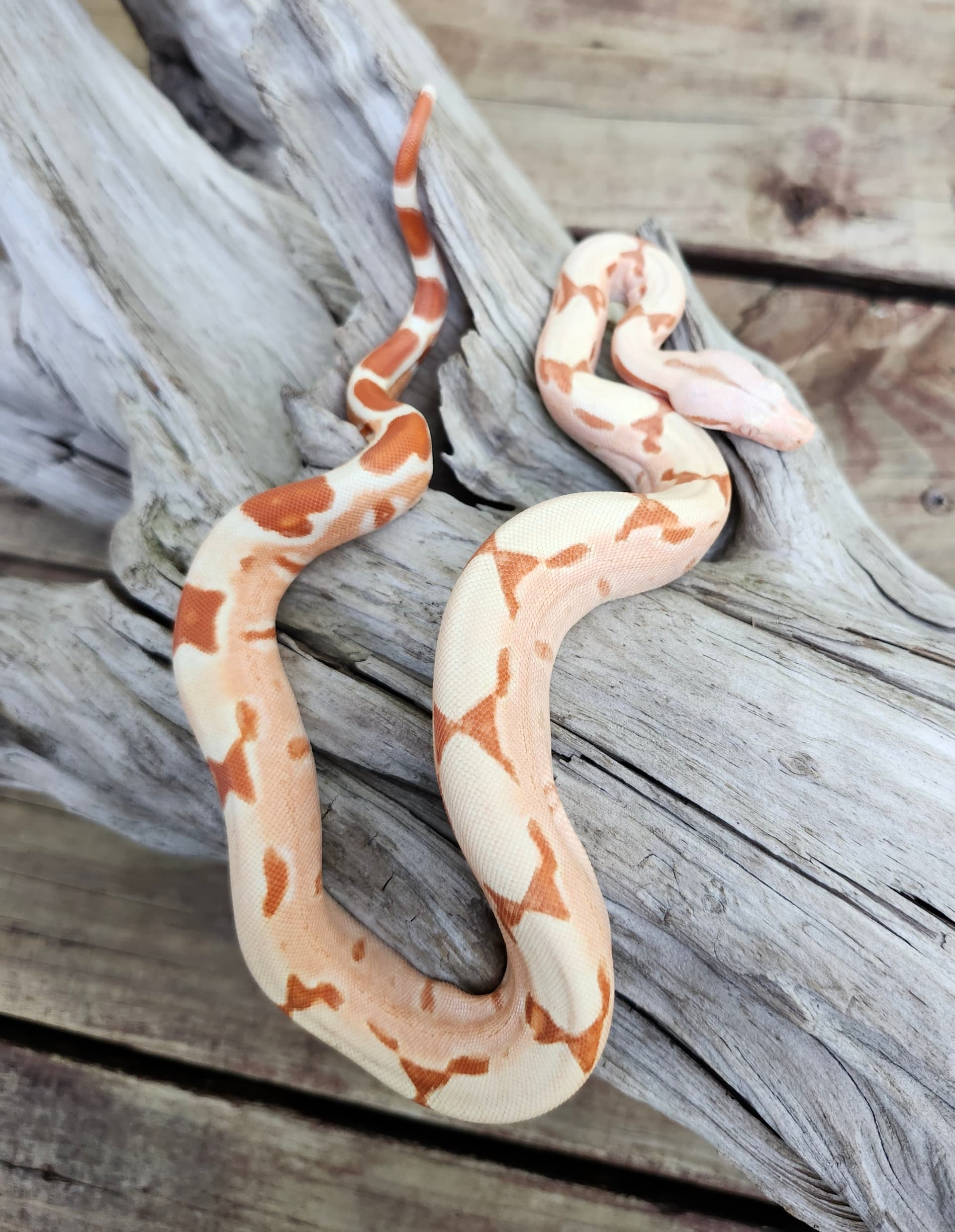 Here is my female 50% BCC X 50% BCI motley het albino. I know Matt will love her laddertail.