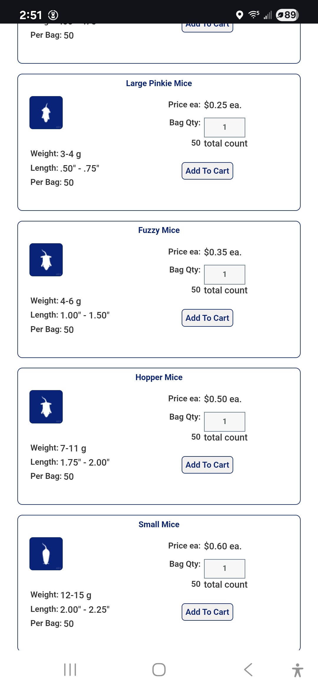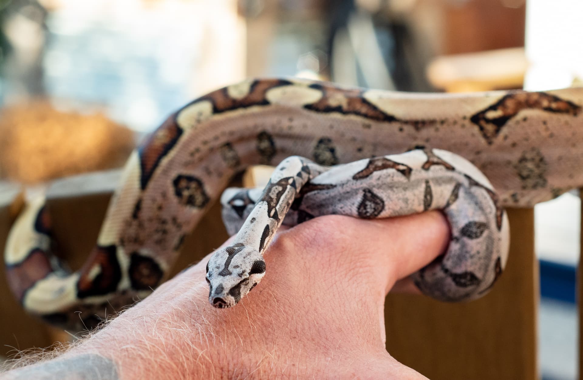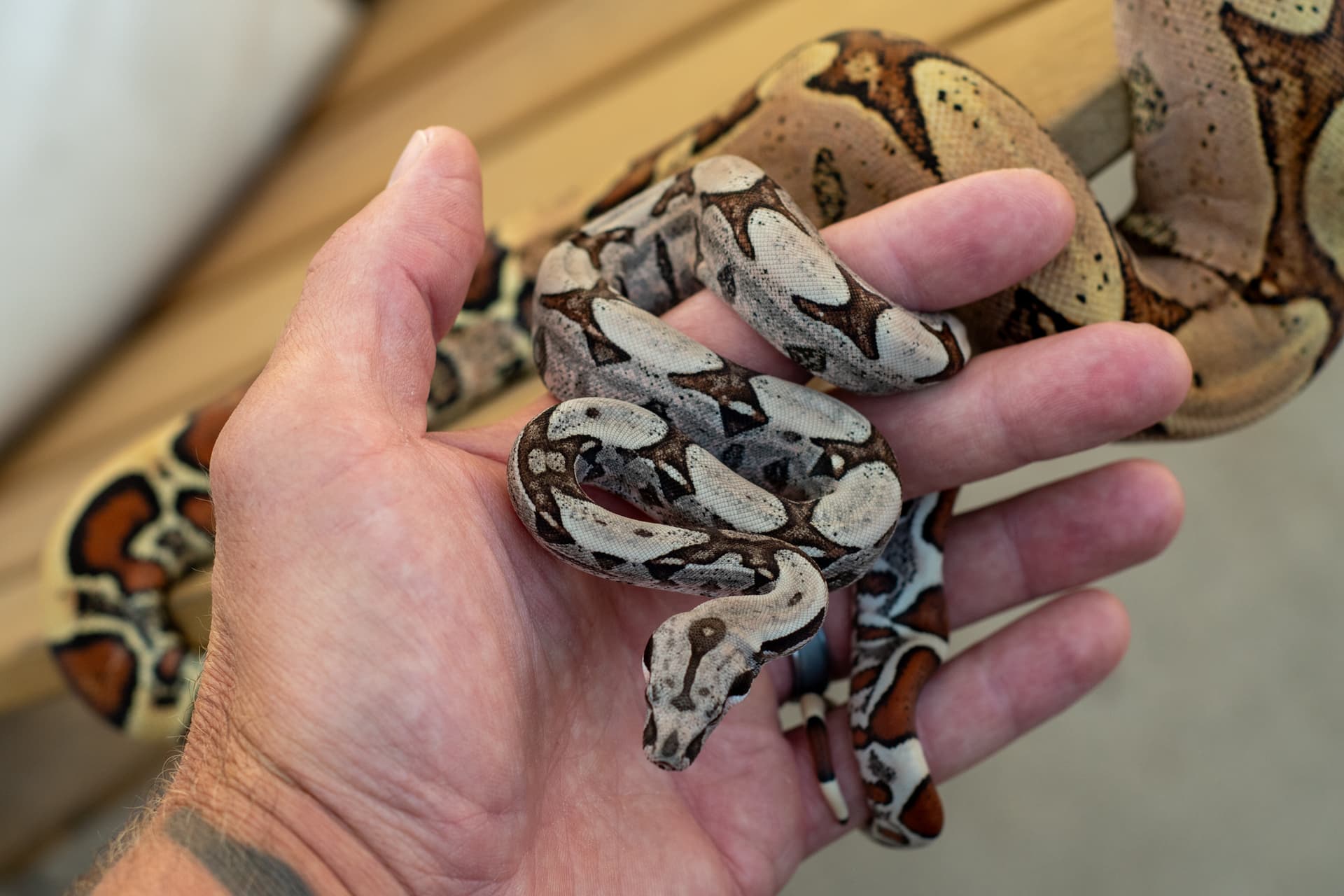 I don’t go by weight on my food items. I go by size. I go just a little bigger than the mid-size of the baby boa.