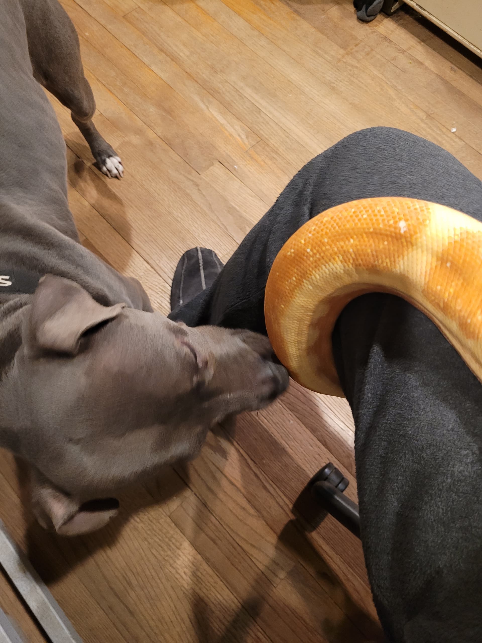 My old retic Tigger that was 16 feet long would crawl right over my dogs and not even look at the dogs.