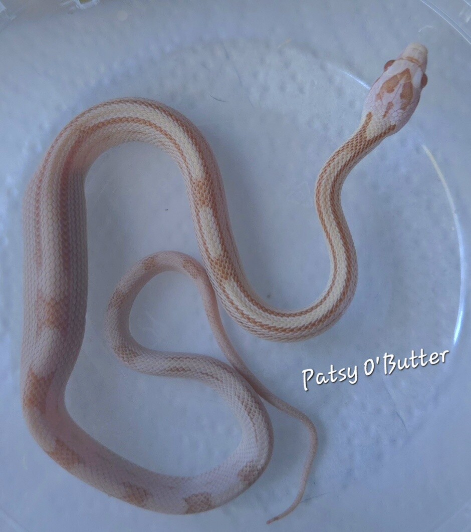 Looky here! Beau and Linette’s tiny second clutch has hatched. Both babies are healthy and adorable. Meet Lionel, male Peach Plasma, and Shalott, female Plasma. Both are het Amel, Hypo, 66% ph Caramel.