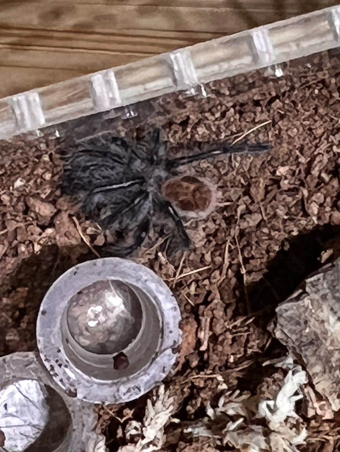 To update about our t’s, one of the tiny yellow flames that I got in feb went beneath the substrate 3 months or so ago and I got to the point I only picked up the enclosure maybe 2 times a week to check for any sign of it. I read that slings in particular species like these can be difficult or stressful to have as first time t because they rarely eat or sometimes won’t be seen for months and I just trusted that, and then a few days ago I see it at the water cups. Since then it’s out and about and today it was way high on the side almost at the top, first time I’ve seen 1 of the 2 yellow flames climb. It looks slightly bigger, it might have molted though it didn’t change color or appearance, but after months of being underground it certain is active.