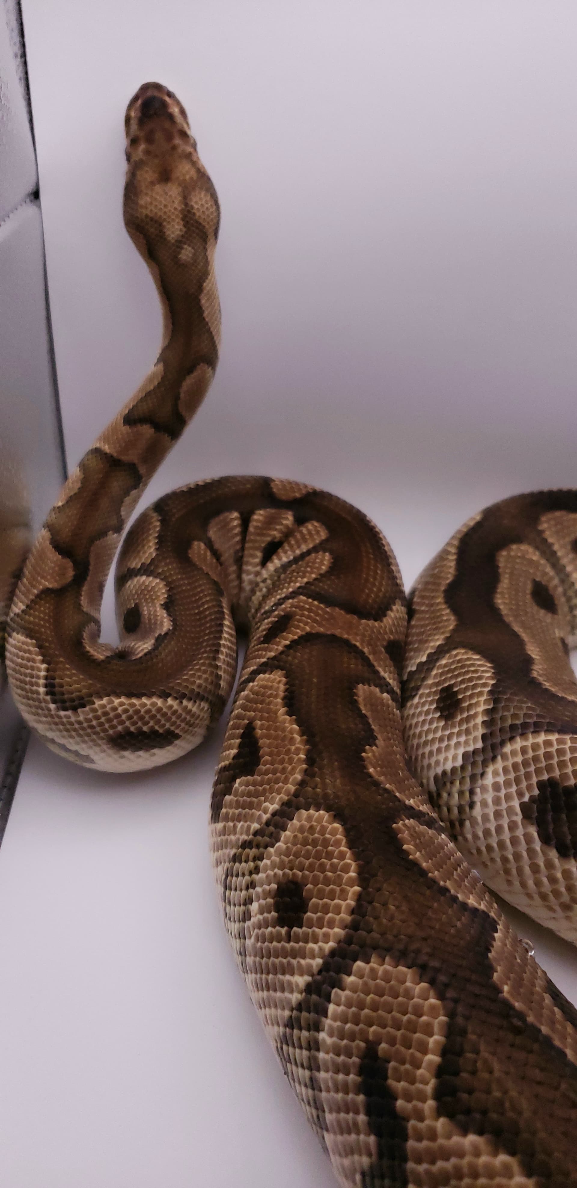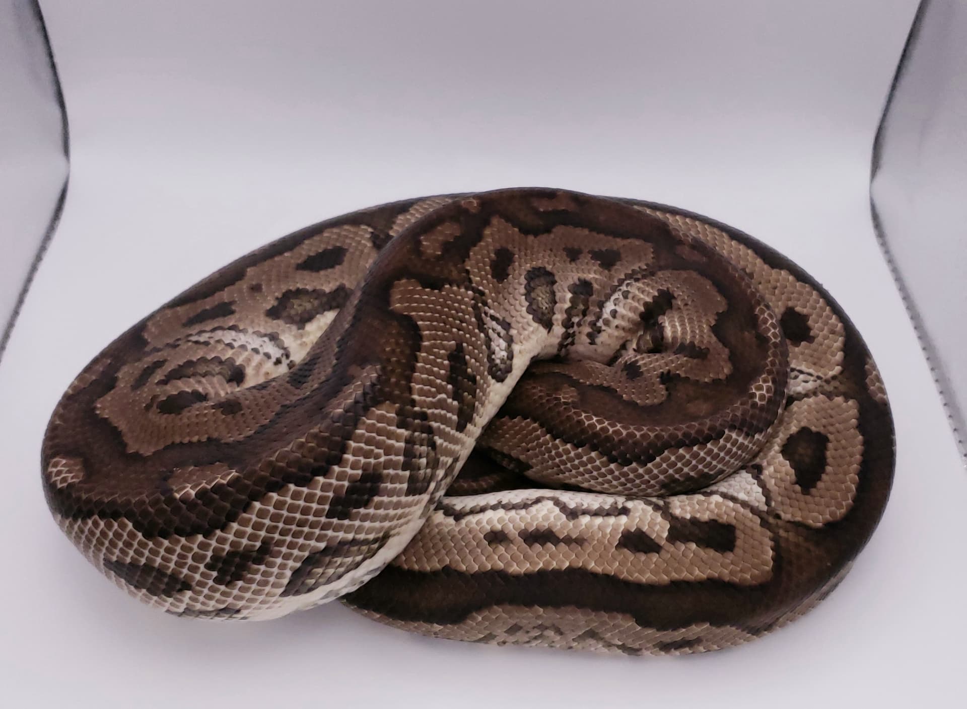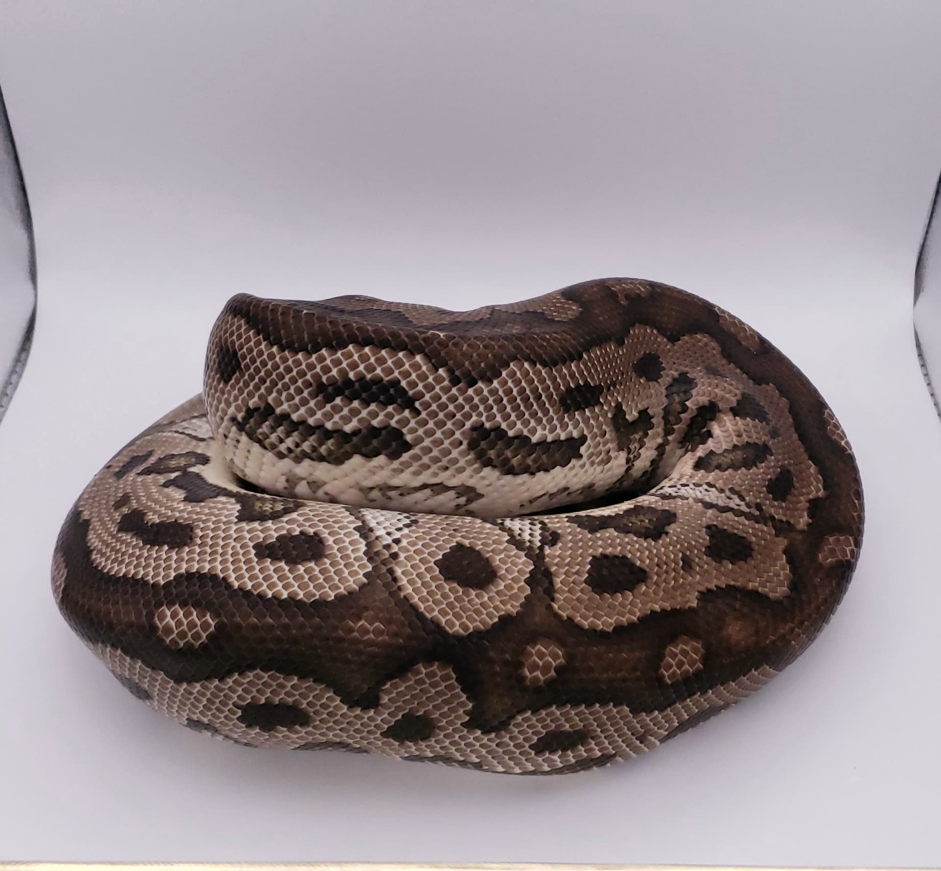 The male that came with Mango. Gorgeous Clown male, has a chaining pattern in his “alien heads” and stark grey-ish brown tones with a bright white belly, almost looks like an Axanthic in coloration but I know he isn’t from his parent info. Really hopeful to see if I can figure out if theres something going on with him other than Clown, would shed test him for Carbon but RGI doesn’t have a test for that morph