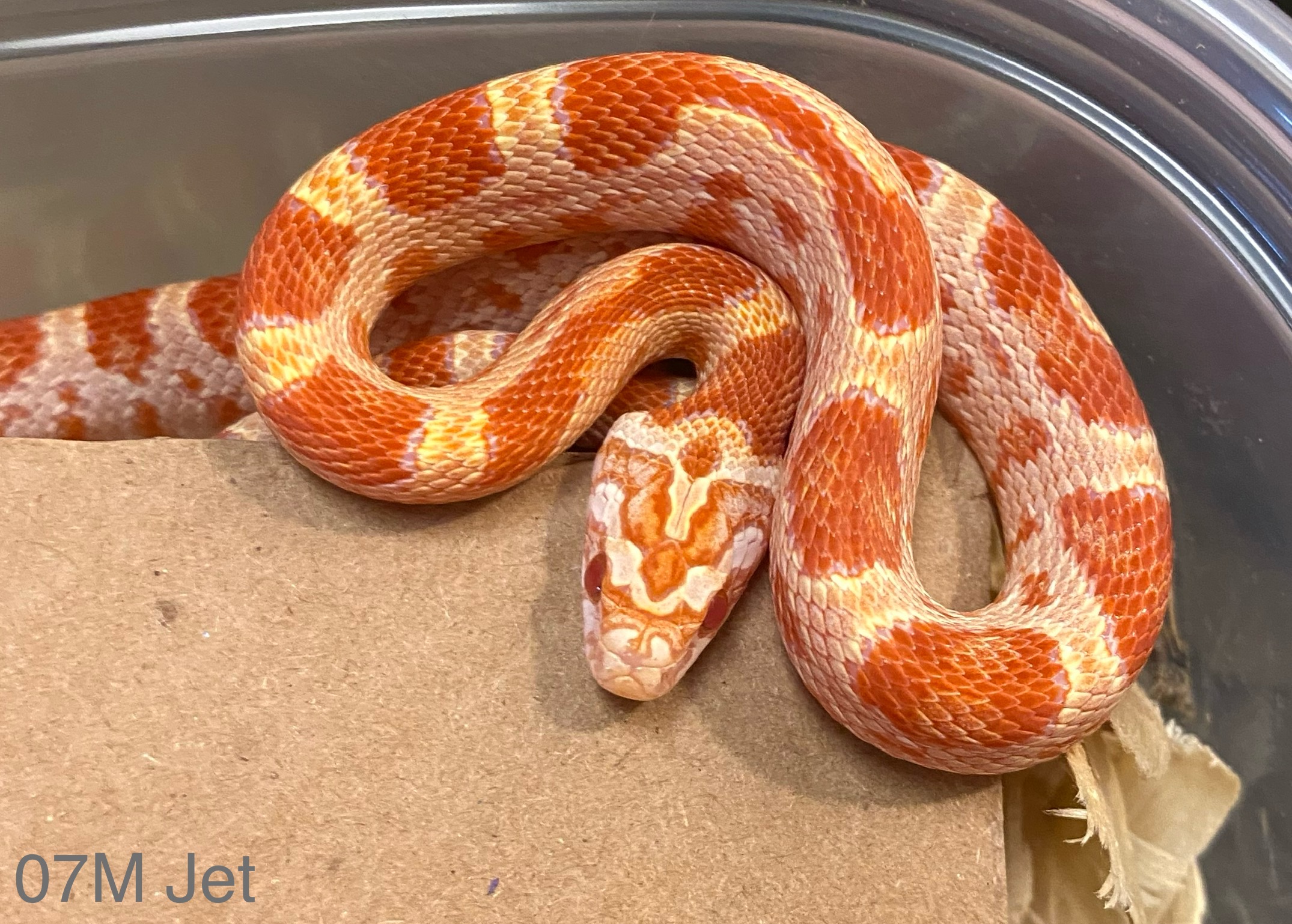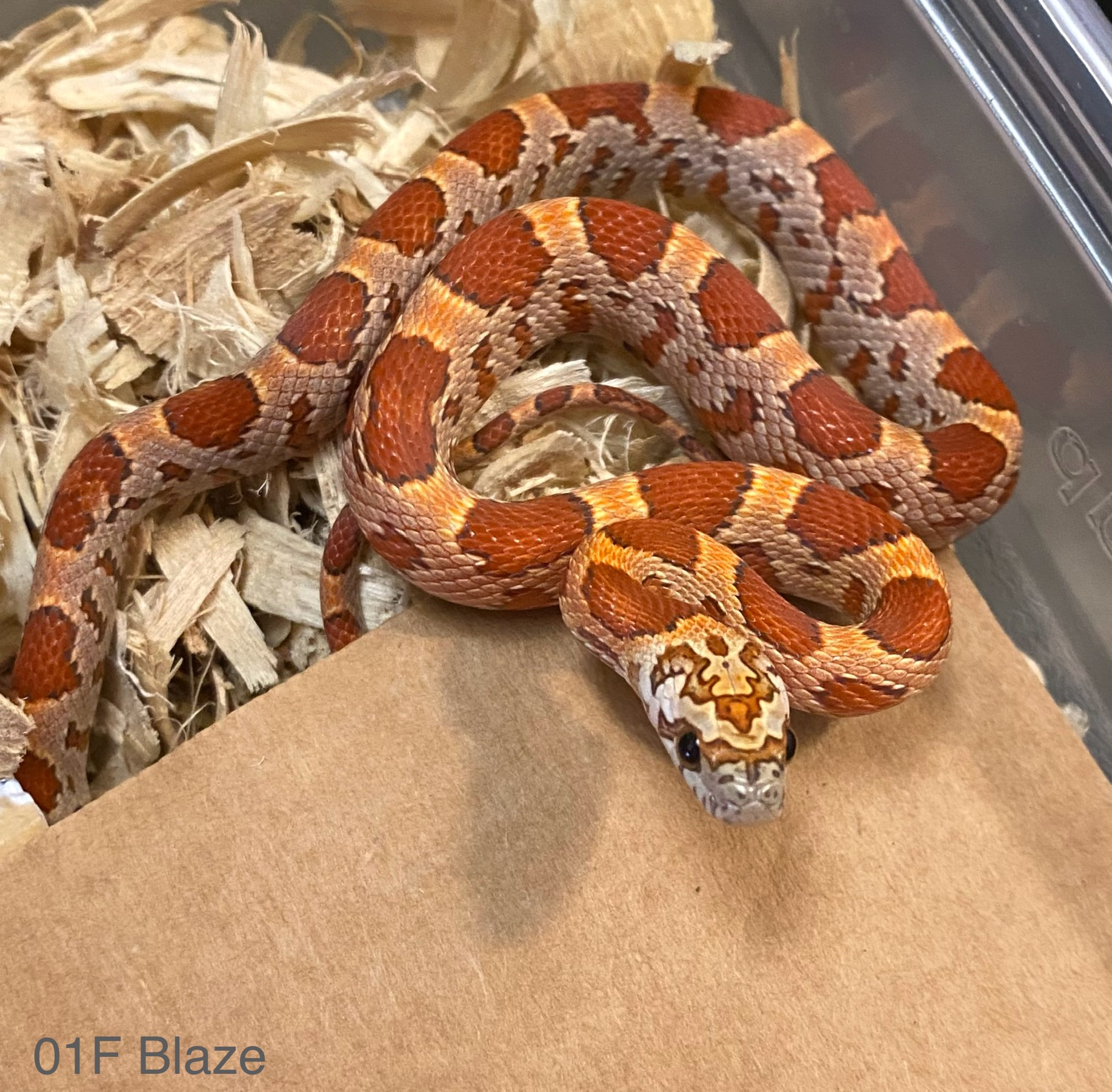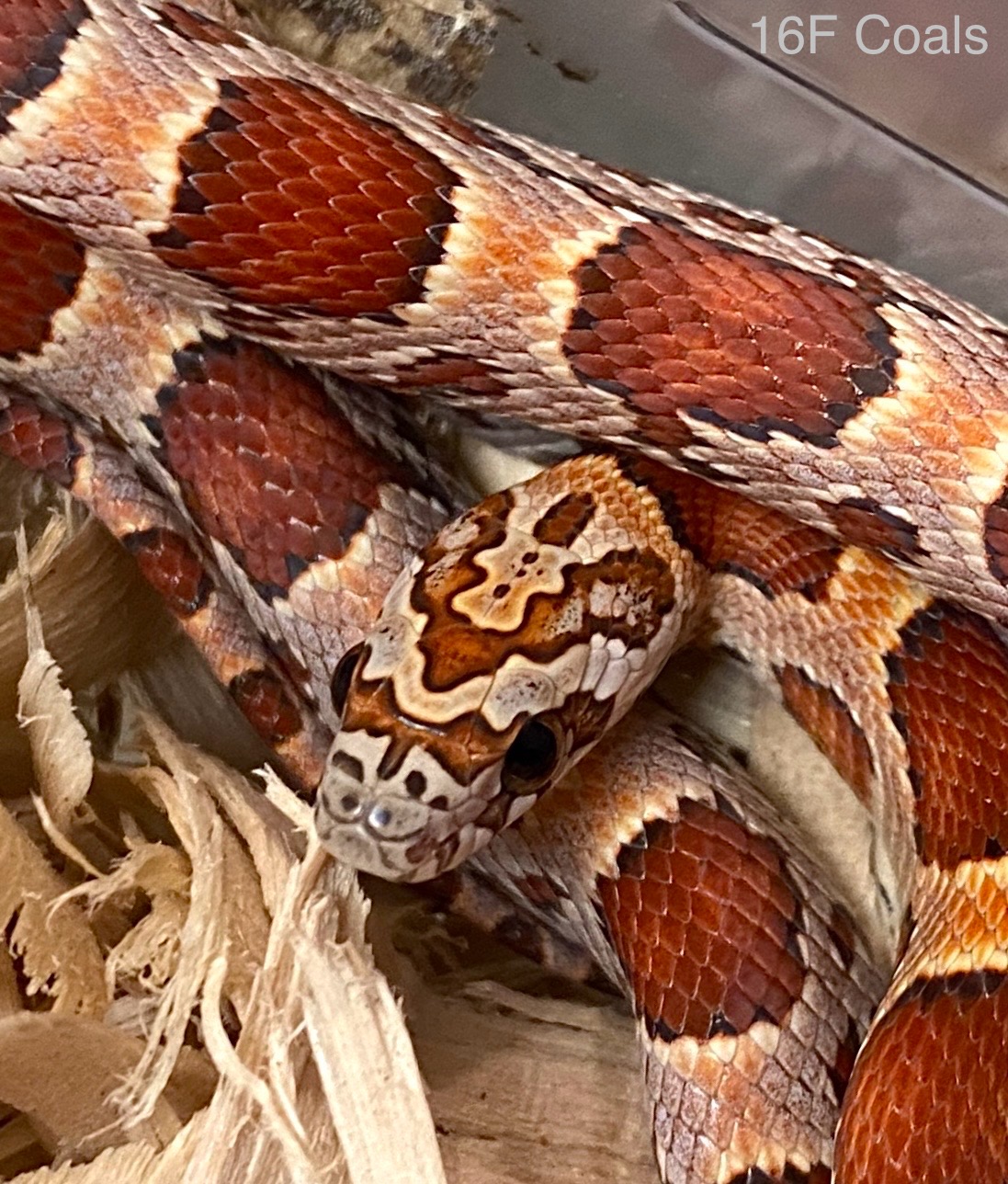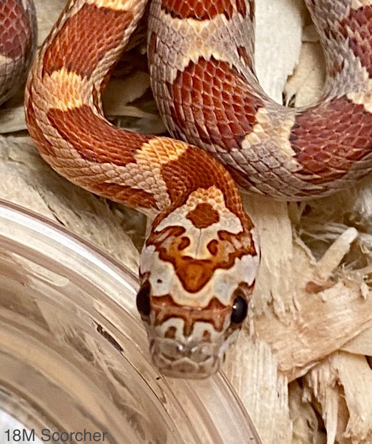 Had to laugh at this, too. I’ve got a single, seriously spicy girl this season. She is dead serious about her rattlesnake poses but I haven’t managed to get a good picture of her in uber-triangle because when she’s doing that, I’m making sure she’s not doing worse. Here she is drawing back, giving me the stink eye. She’s on the table because she shot out of her bin after coiling and hissing. Somebody should tell her how corn snakes are supposed to act. Lol