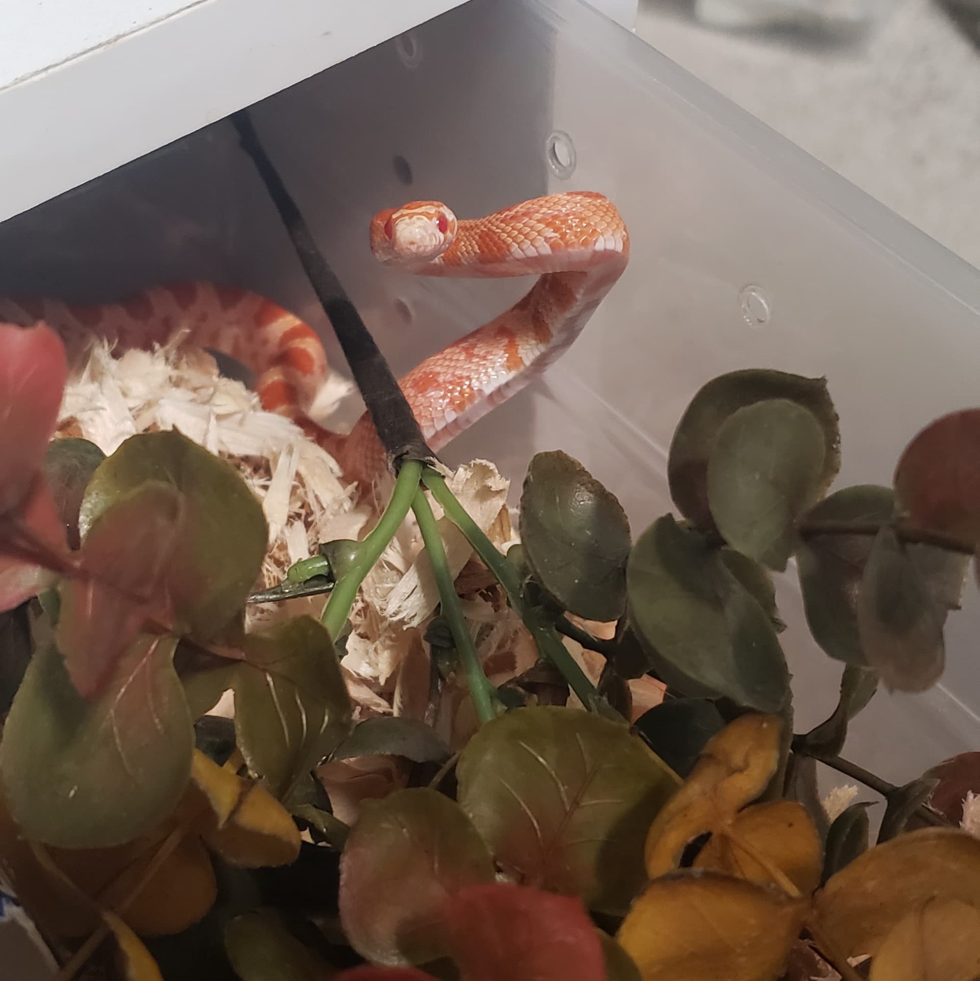 Lol yep. I admit, I inadvertently made things worse a couple weeks ago. I moved her group of hatchlings to shelves in another room. She’s in the same bin, and at first she didn’t seem to care. I’d put her on the bottom shelf so she wouldn’t have to see me seeing her as often. Apparently one of the cats was going in there and looking at the interesting creatures on the shelf. Can’t blame her for not liking that! She’s on a higher shelf now.