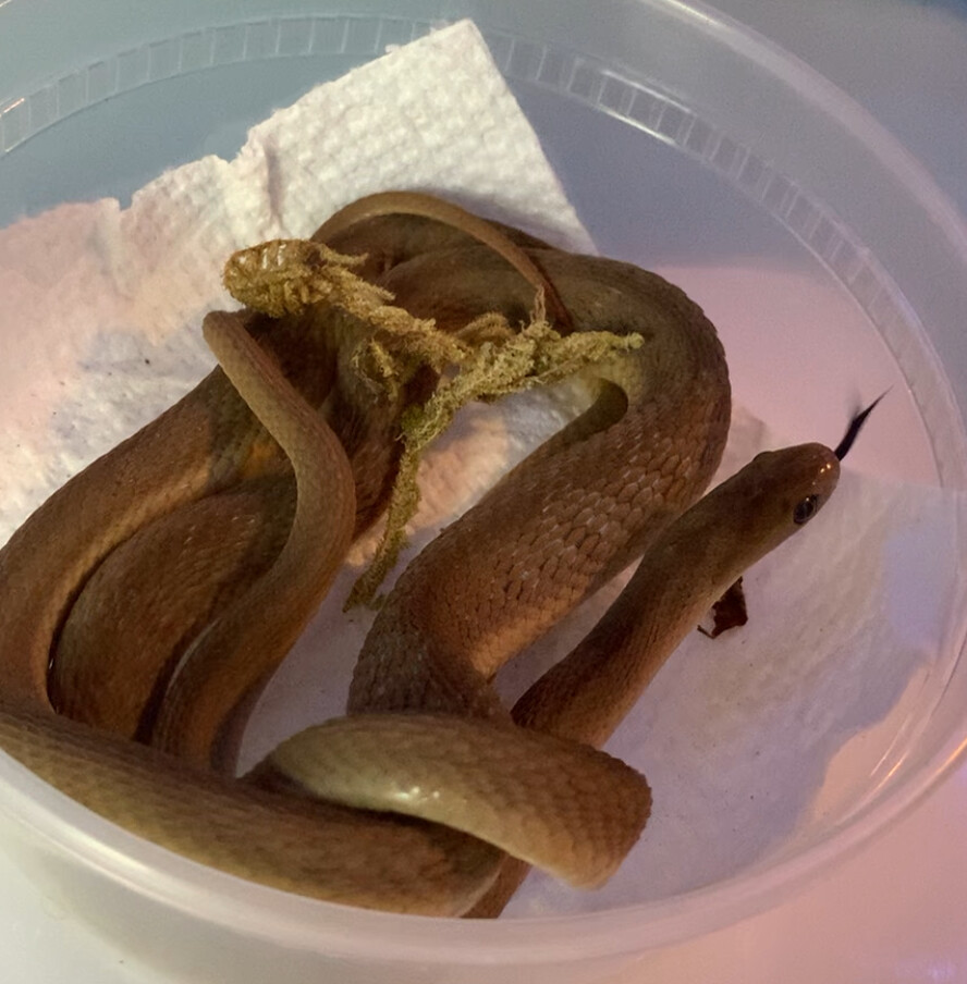 But if it’s just a function of wanting a snake and not wanting to feed rodents, there are some other options. Garter snakes would probably be the most obvious and readily-available option (and there are several different species of garters, and some species even have some morphs, so there’s lots of choices when it comes to garters). DeKay’s brown snakes are another possibility. Not quite as easy to find CBB as garters, but there are some people who breed them. And both garters and DeKay’s are going to be easier to care for and have diets that are much easier to source than egg eaters. Rough and smooth green snakes primarily eat insects…though as I understand it, you’re likely to struggle to find them CBB, much like egg eaters.