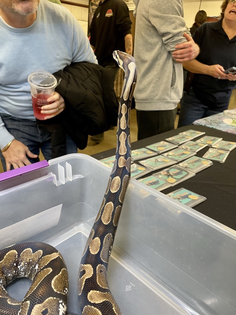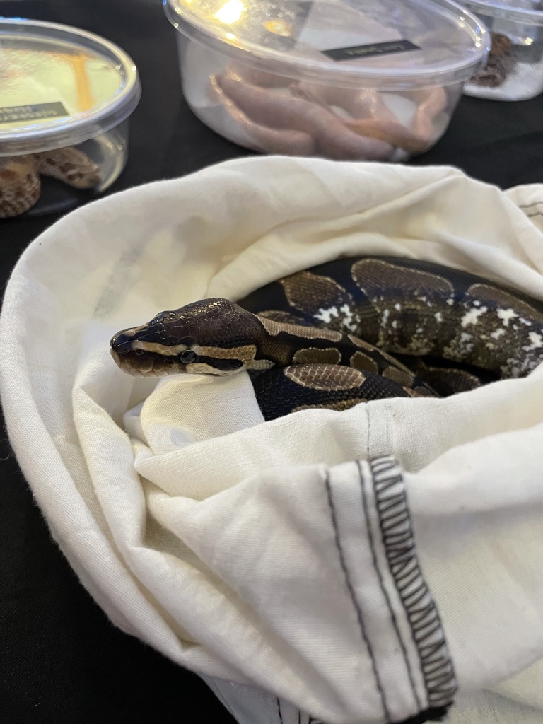 Figured I would give one more update for anyone interested! We’re almost a year post-surgery now (just a few days off) and Zinnia is happy and healthy. I’ve palpated her gently and no signs of follicles or anything else strange. She goes with me to reptile shows and educational programs now and she’s my sweetest snake. A few pics of her doing her thing!