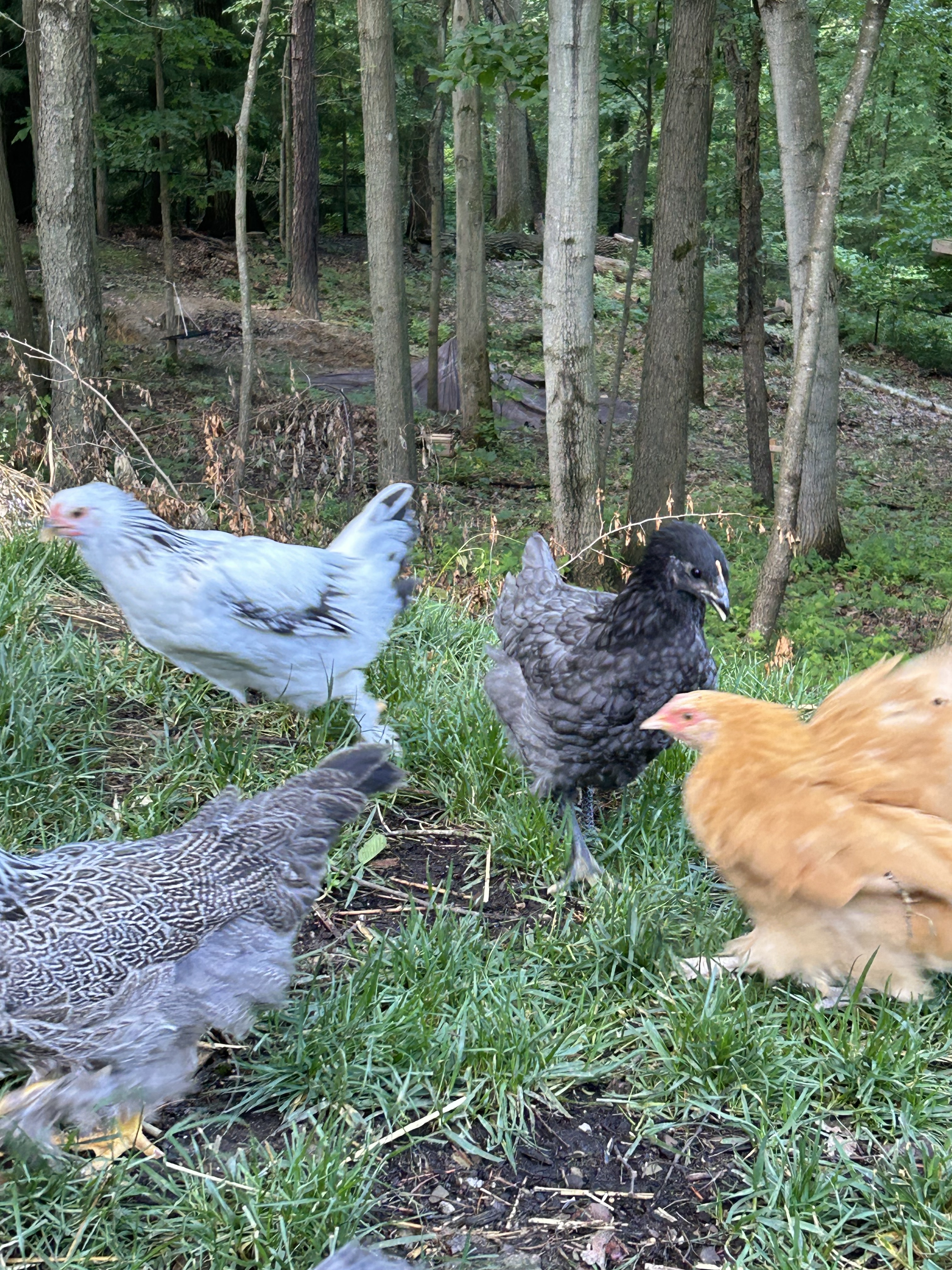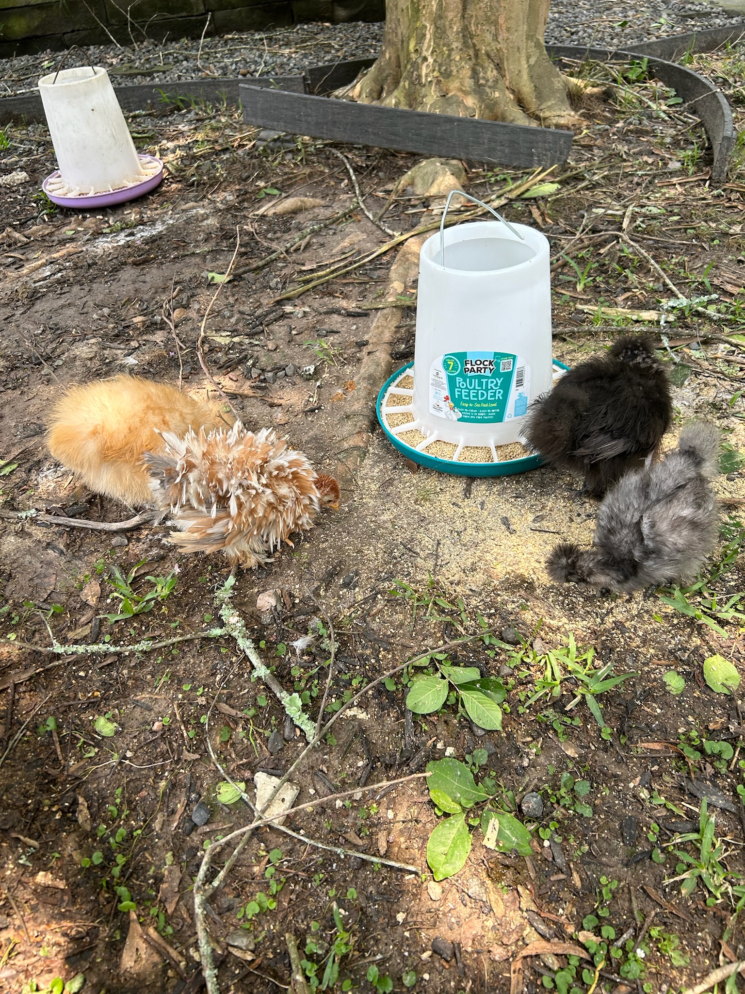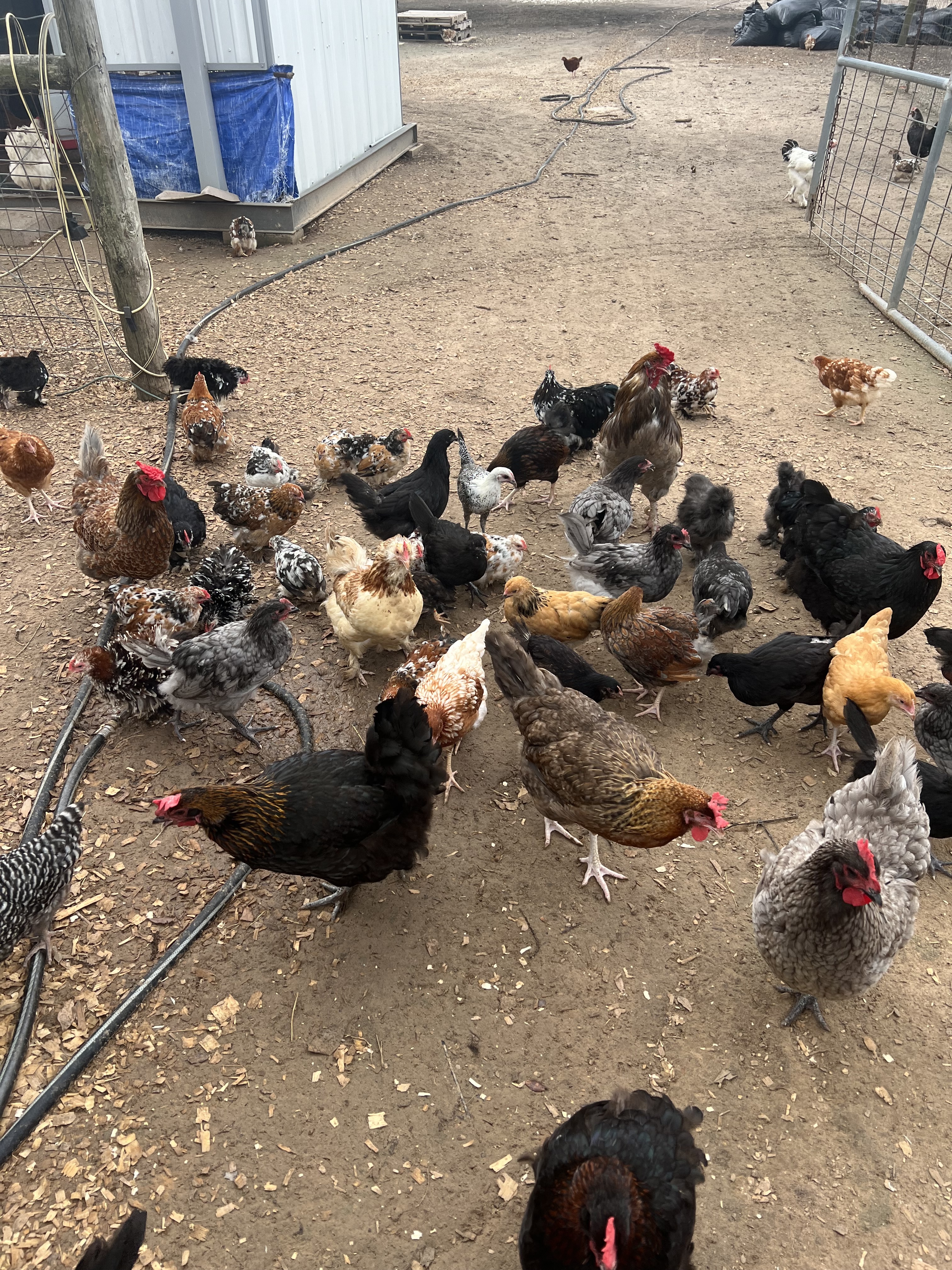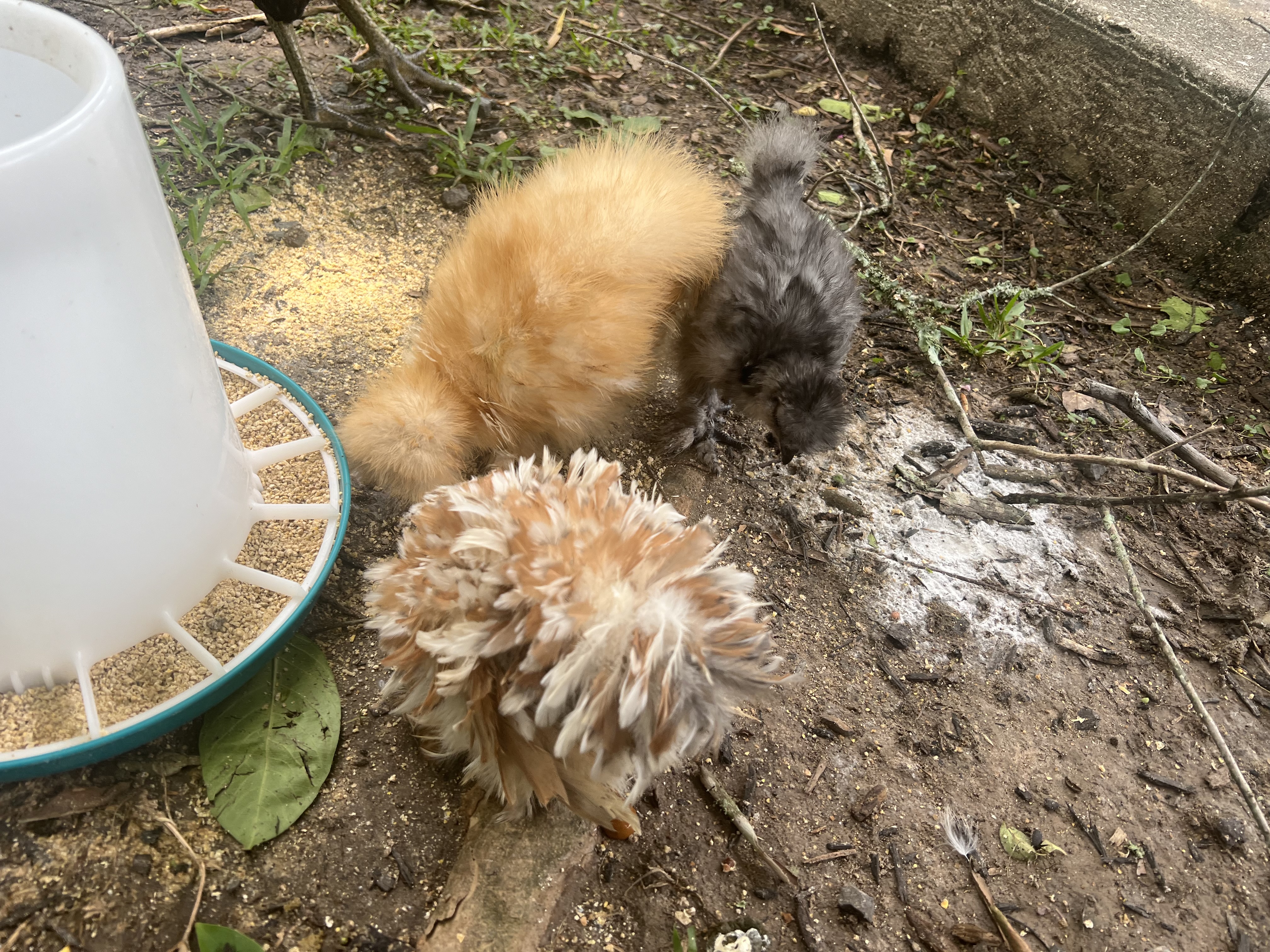 So uh…. We went the the chicken place today and mayyyyy have gotten some more chickens. We went with the intention of getting 3 more silkies as friends for Reeses Puff cause she’s the only smaller chicken, and came back with a few more than 3