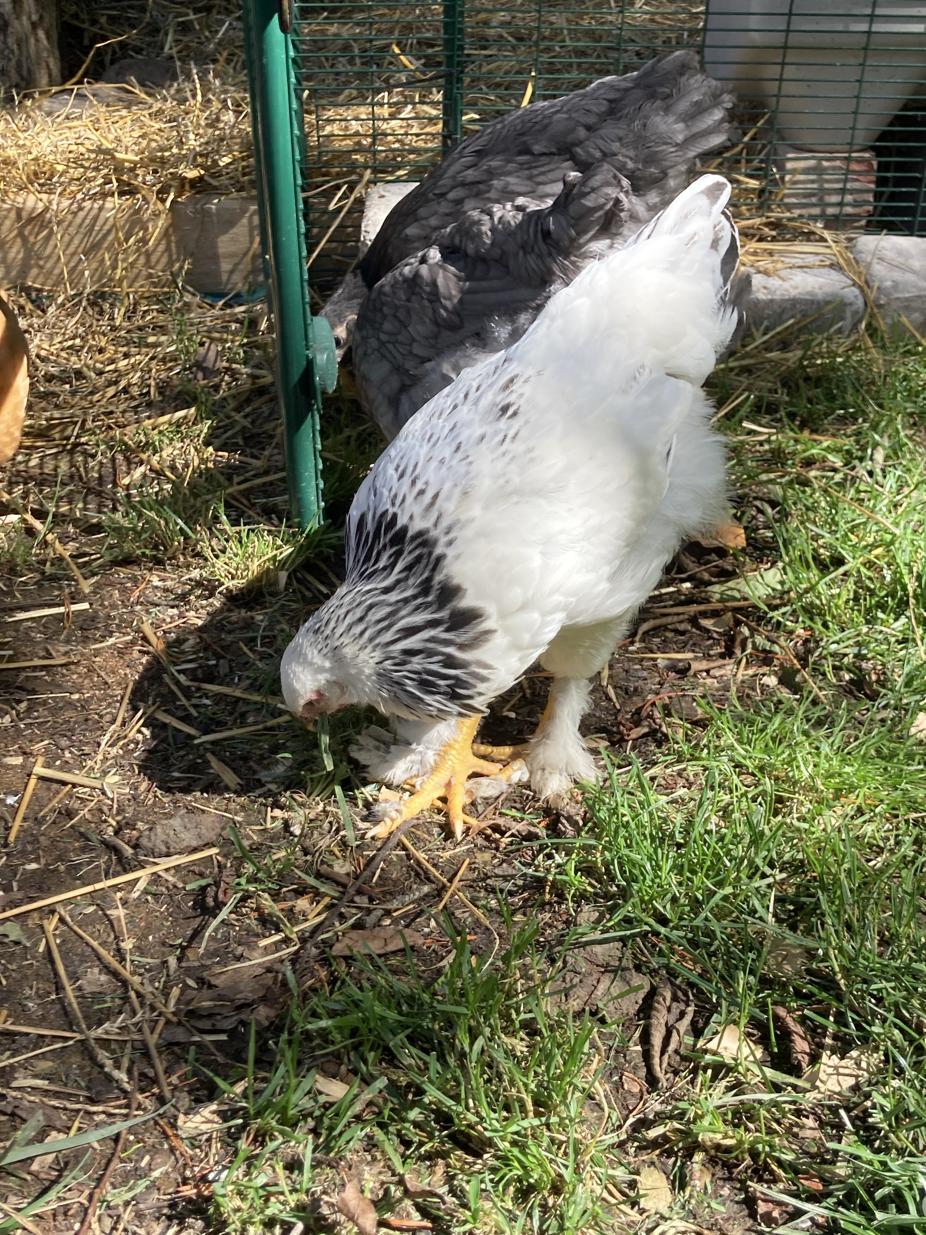 Here’s Fezzik (Splash Jersey Giant) and Bluebell (Prairie Bluebell Egger)