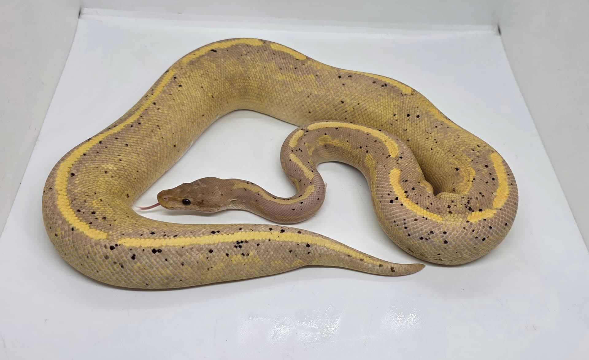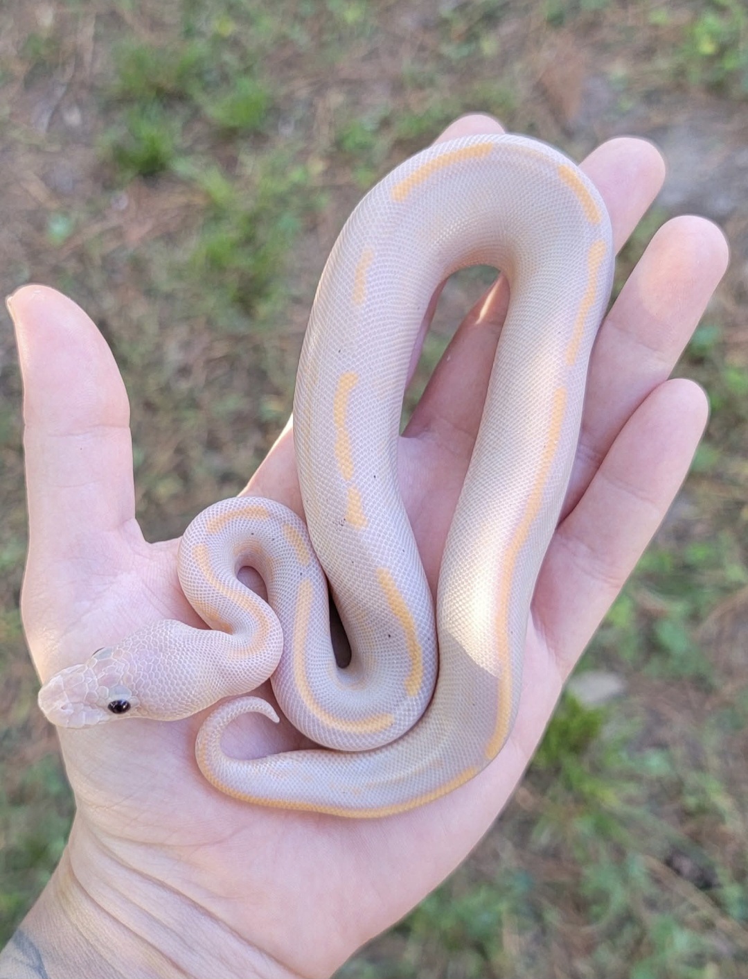 That stripe down the back is so pretty tho. Beautiful color as a hatchling. Definitely has that phantom reduced banana spot look as well.