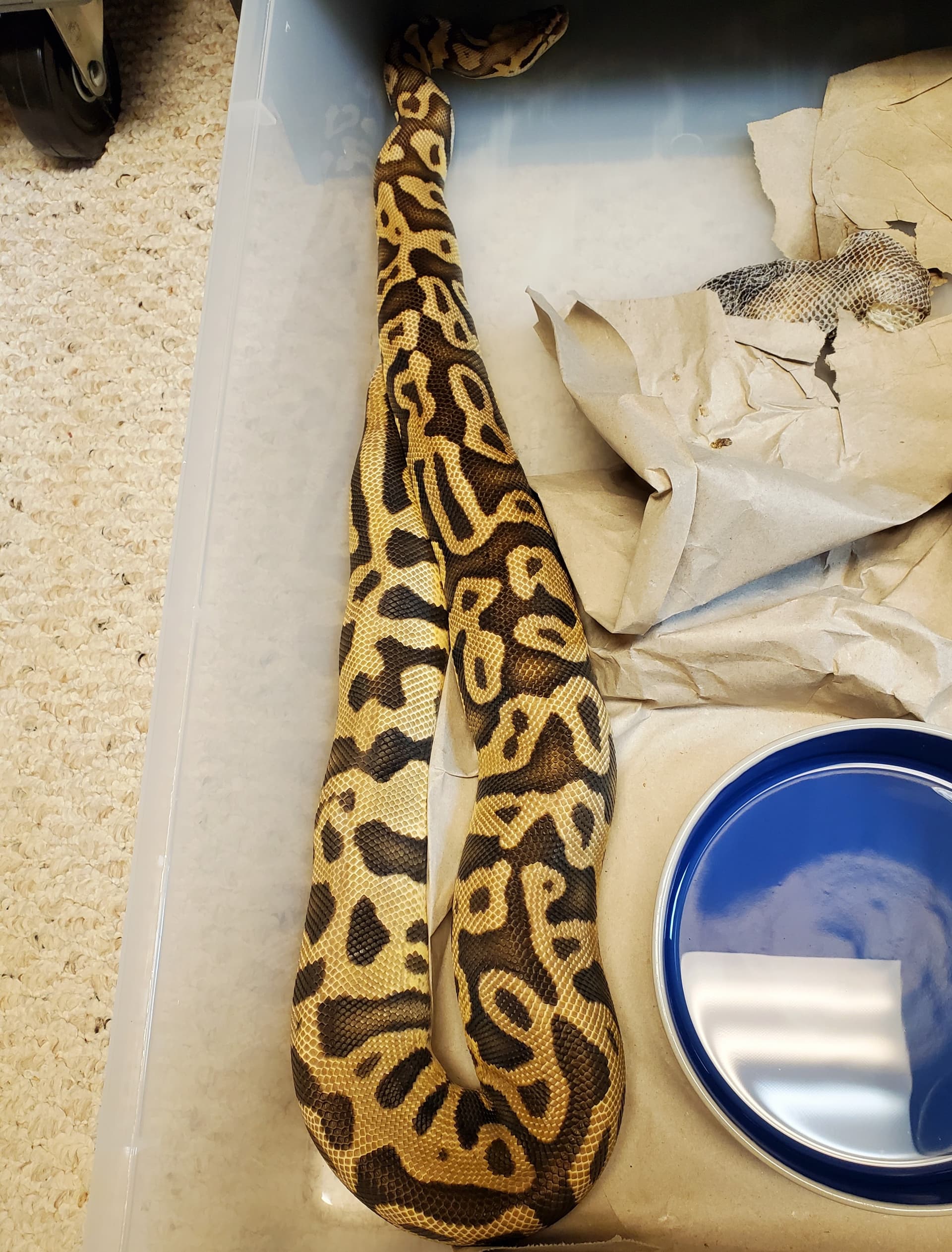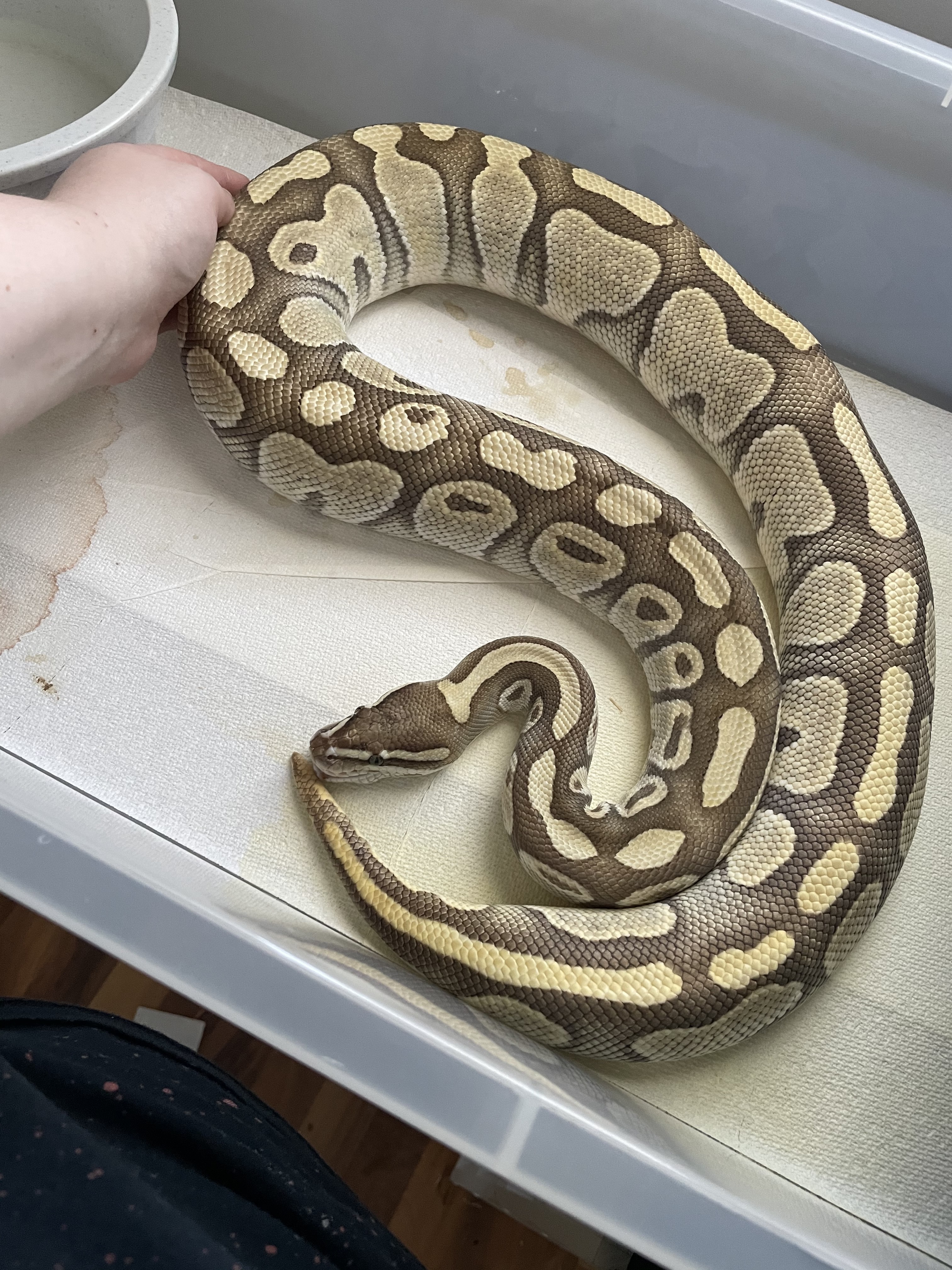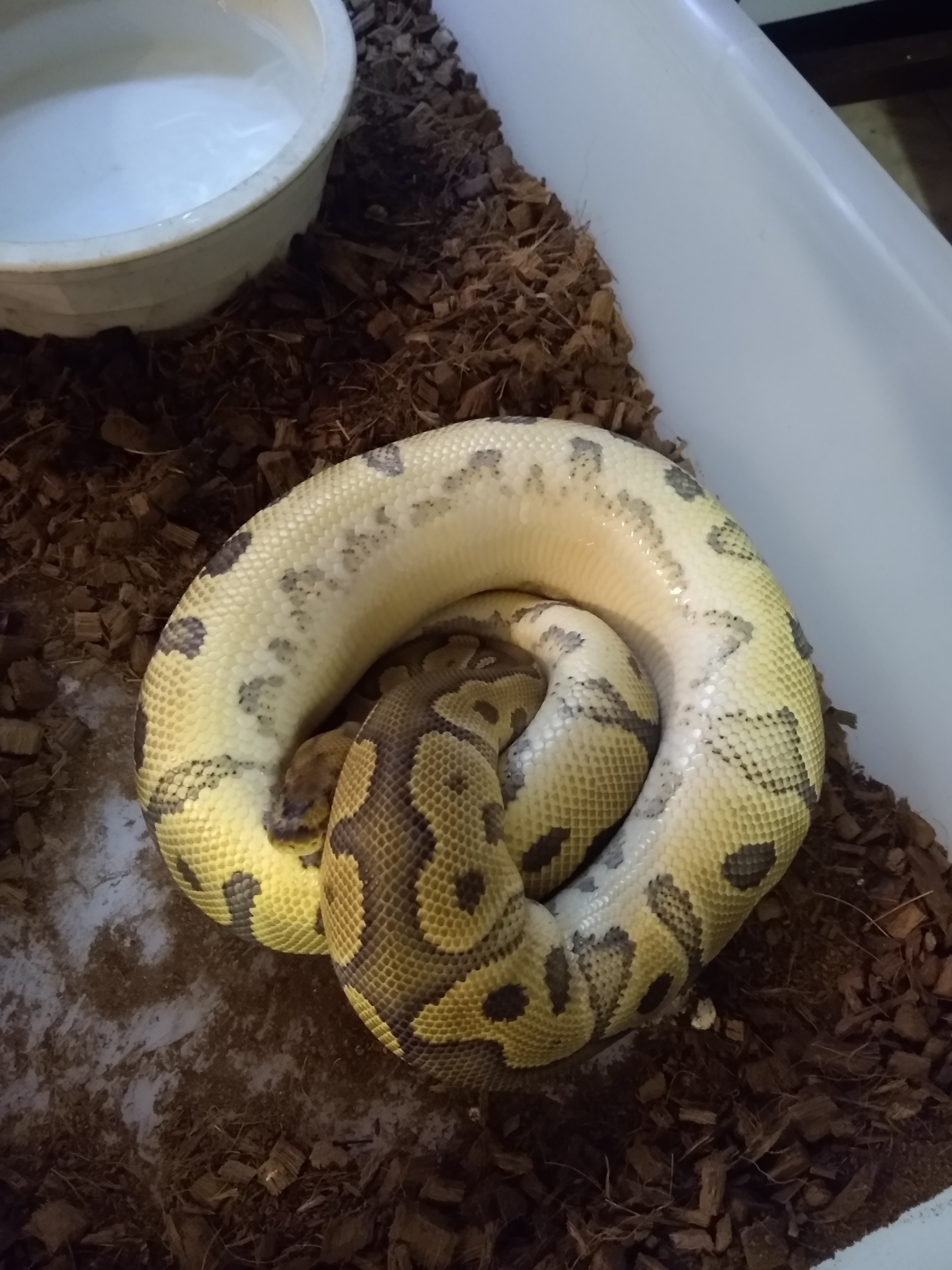 I figure we could resurrect this thread. This girl is starting to brighten up nicely. She just shed which I am hoping is her pre Ovy shed. She is a Leopard Yellowbelly Pastel het Clown