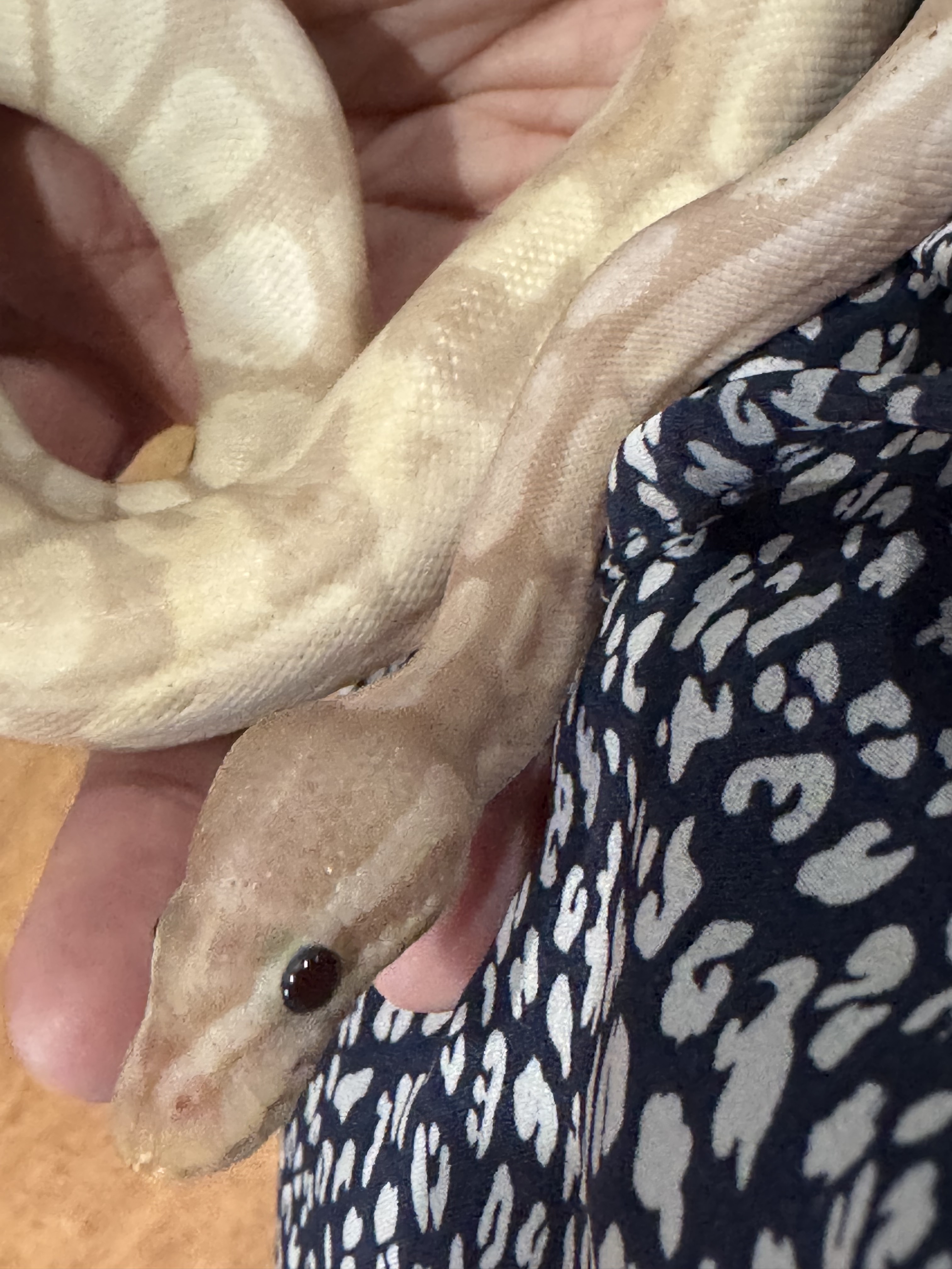 I haven’t handled him yet as I’m waiting till he’s out of quarantine, but I’ve seen him while my mom was looking him over after getting home. Part of the biggest scab came off and it looked like it was healing well. So far we’ve not seen any evidence of mites. He’s in an enclosure upstairs while my boa is downstairs in my room. We had to switch him to my spare 2ft enclosure because he seemed overwhelmed in the bigger one we bought as a longer term enclosure. He seemed to enjoy being able to stretch out across the floor instead of having to stretch vertically. I did notice he’s got what looks like either missing or damaged scales on one side. I haven’t seen him up close enough to tell which. We talked to the vet and they said to continue to watch him for now. If the scabs get worse or we see mites or anything else concerning they want us to bring him in. For now they said just letting him settle in and recover from the stress of the store is best. He was in way to small of an enclosure with no hides or way to feel hidden. We did find out after we got him that he was fed live at the store so I’m hoping he switches to frozen thawed without to much trouble. The first employee said he ate frozen thawed then when my mom bought him a different employee came up and asked if she wanted to buy a live mouse to feed when she got home. Apparently they were supposed to feed frozen thawed but the employee that did the feeding fed live because she found it more convenient. Overall he’s doing good. He likes to lay in his warm hide with his head poking out watching everyone.