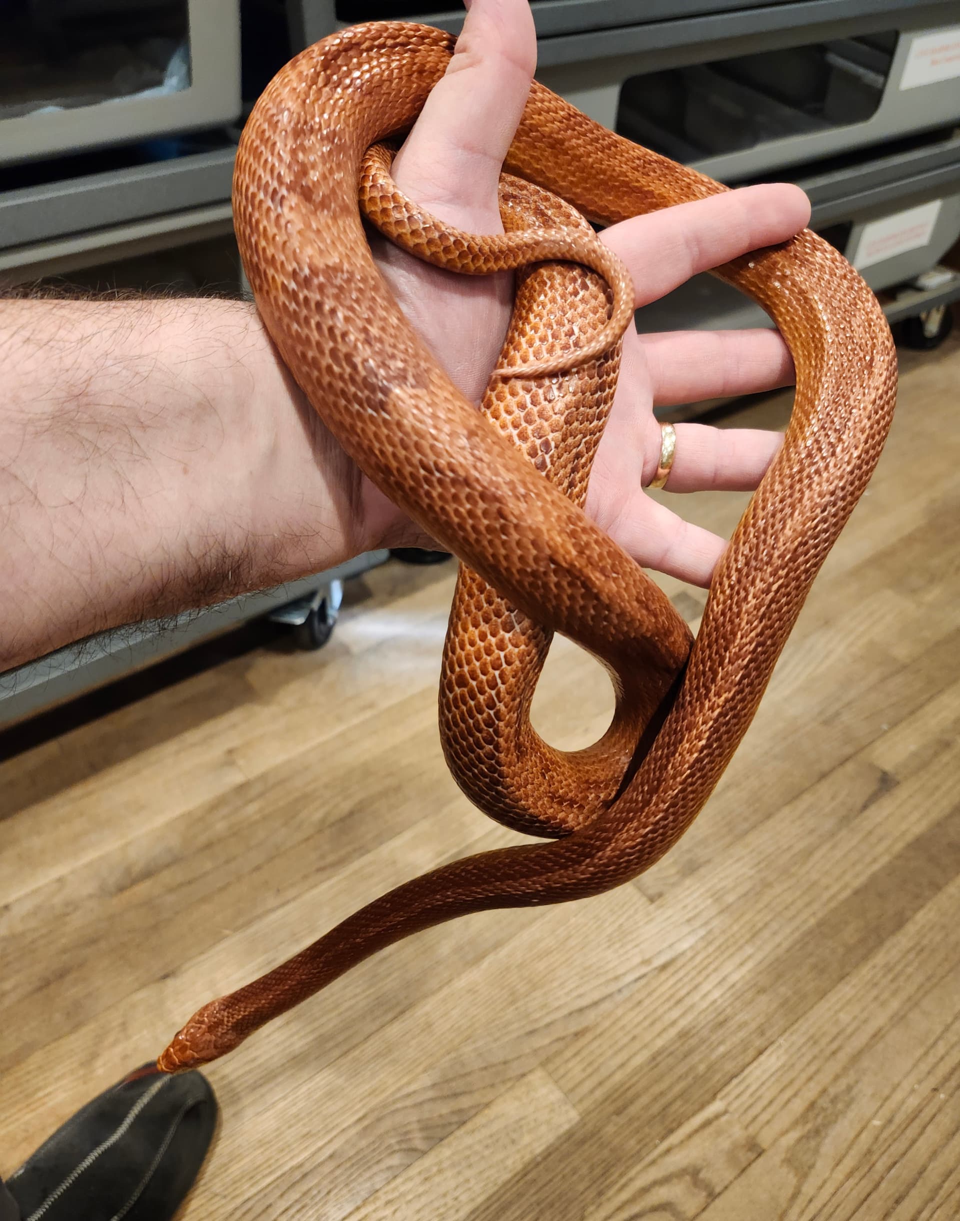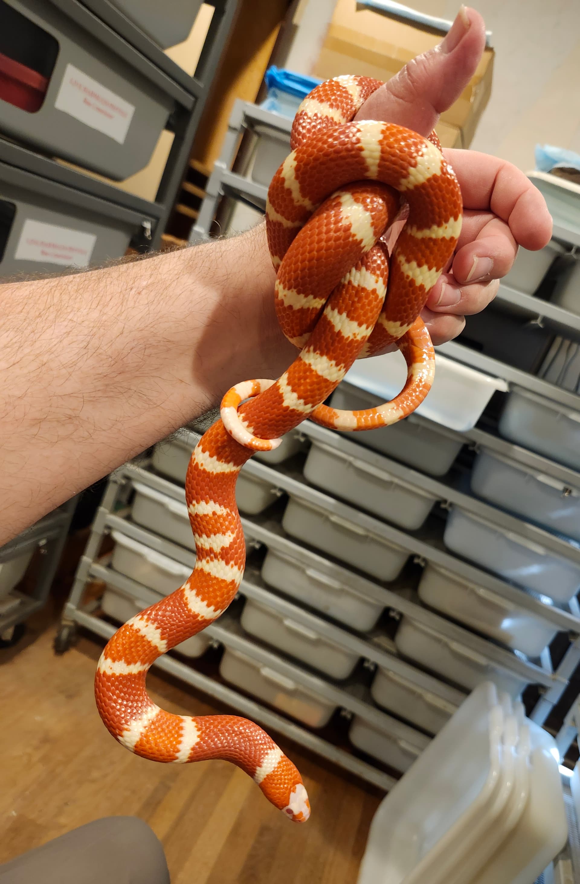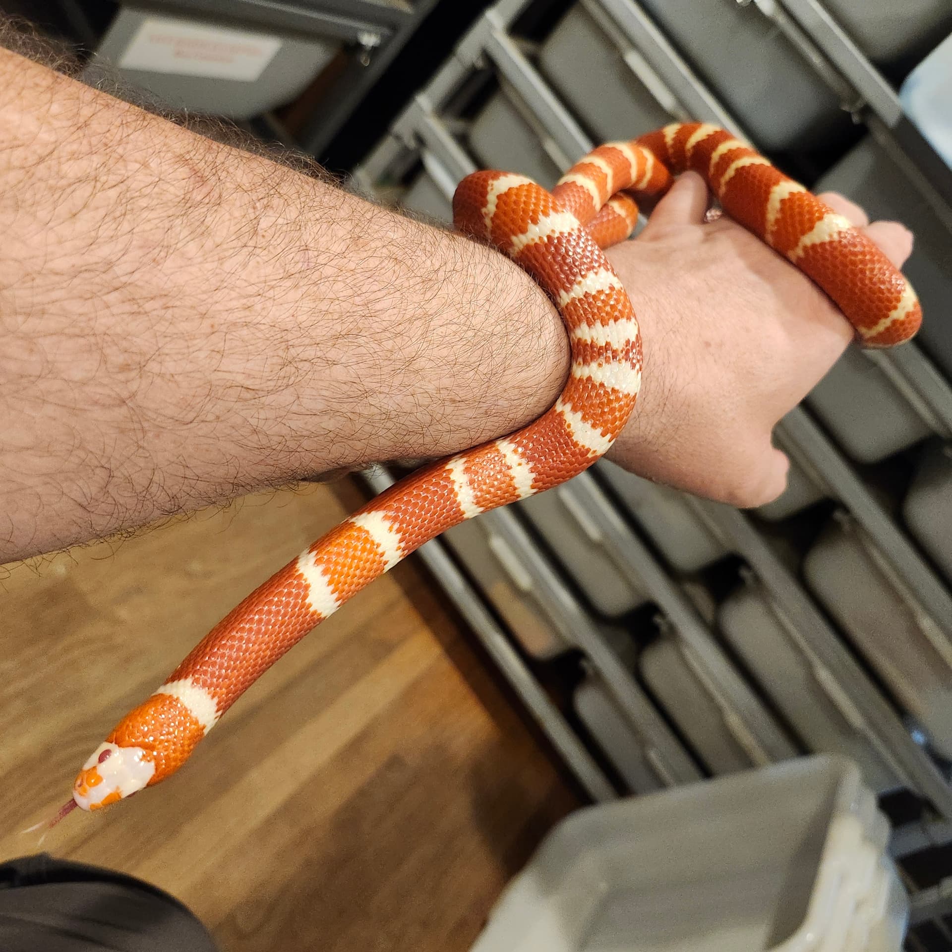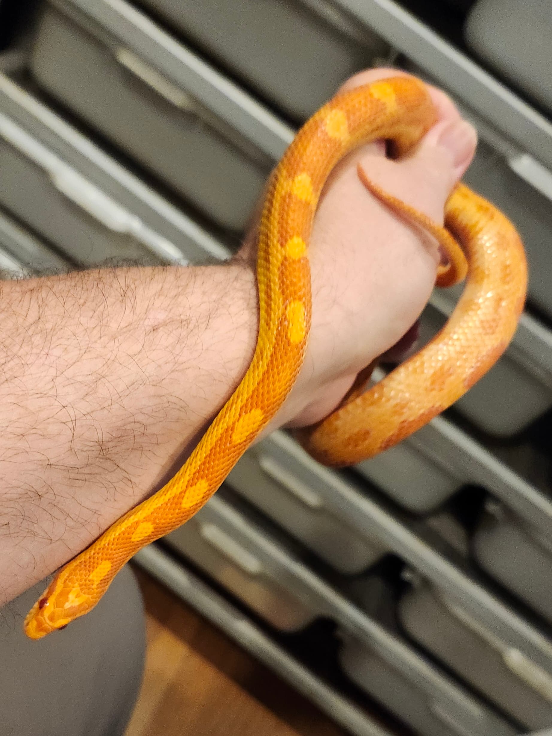 I will let her settle in and feed her this weekend. Each time she escaped, my son was cleaning her cage, and she took off. She is very fast when she wants to be. Now I know why I like boas better. They are not nearly as fast as honduran’s. ![]()