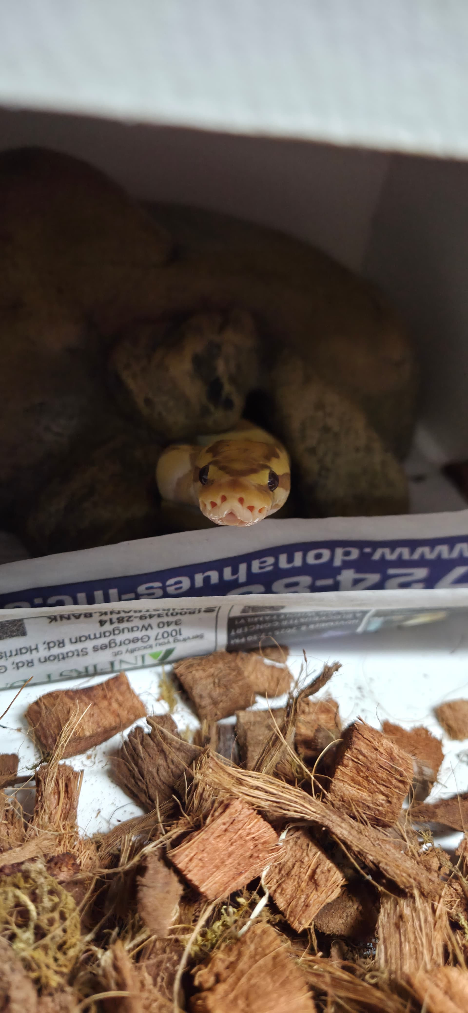 Well this particular ball python will eat whenever so she probably did eat lol. Shes a great eater. One time i tried to spot clean and she got my finger so it couldve been that.