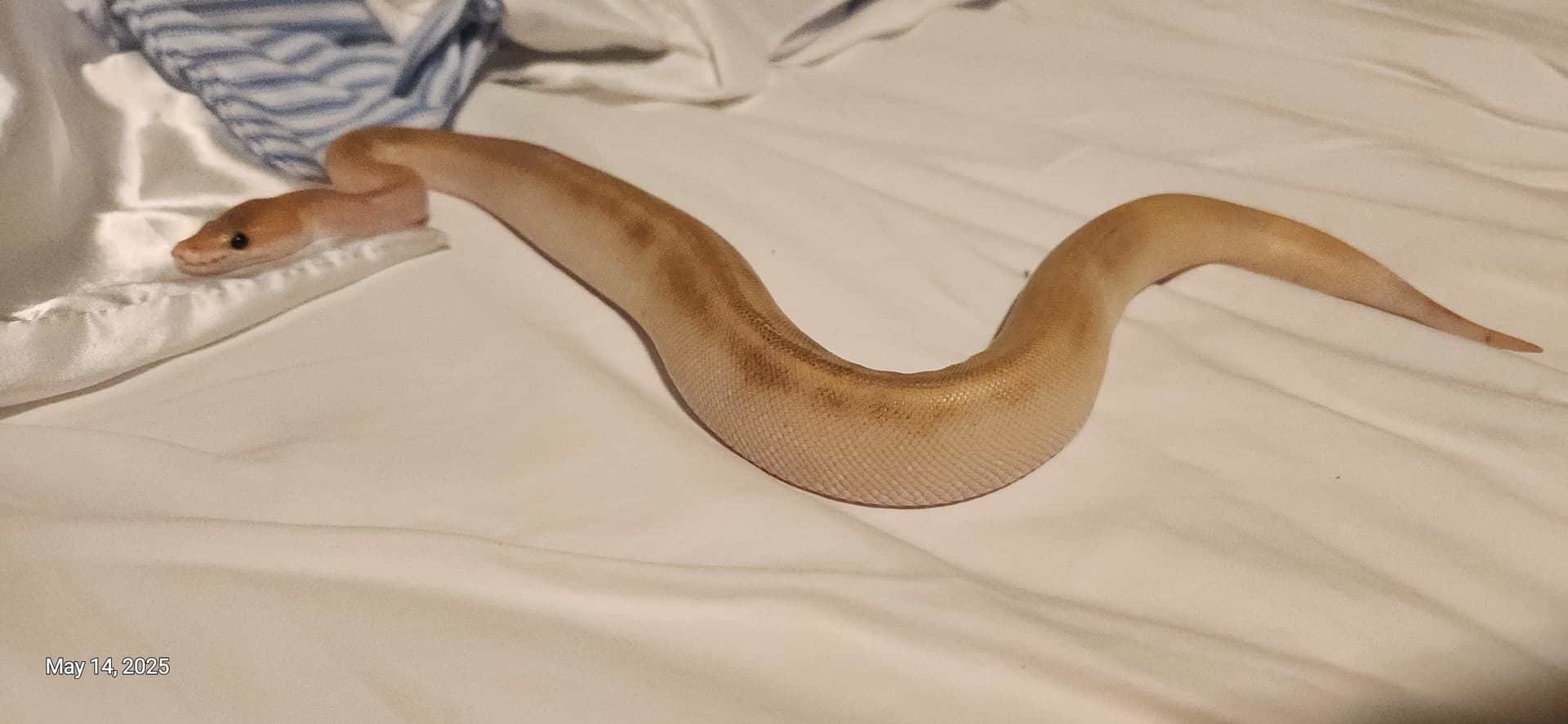 Hello. My name is Destiny, and I am new to reptile ownership. My first snake, which I believe is a pin stripe champagne, will be kept solely as a pet and will never be used for breeding. I have watched many videos and done research on ball pythons before acquiring her. I have included some photos for pet tax