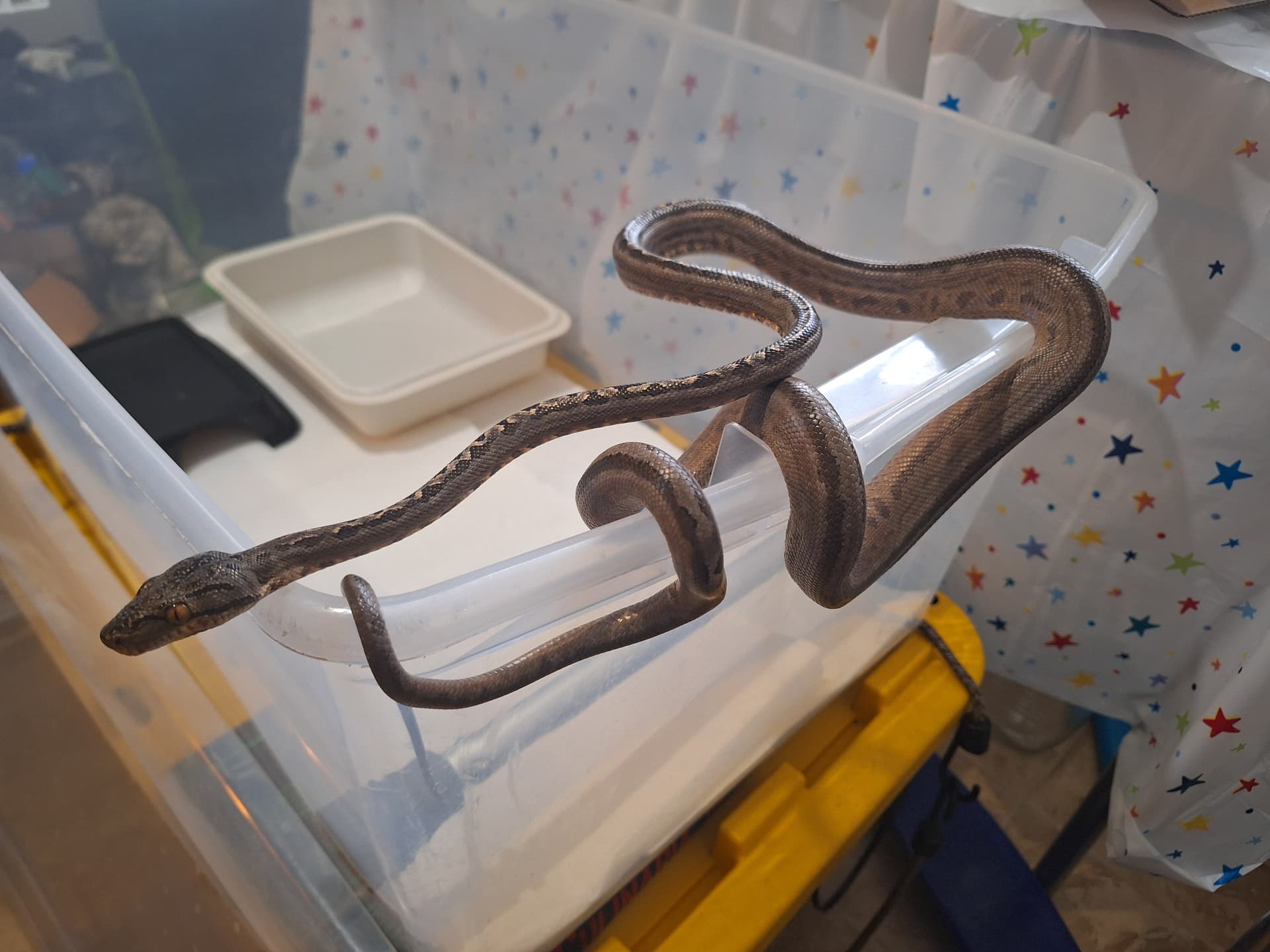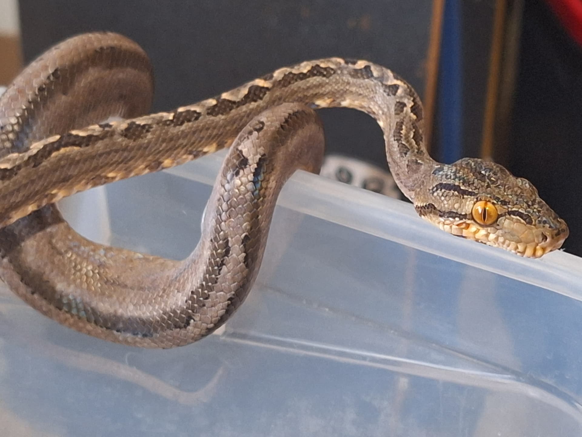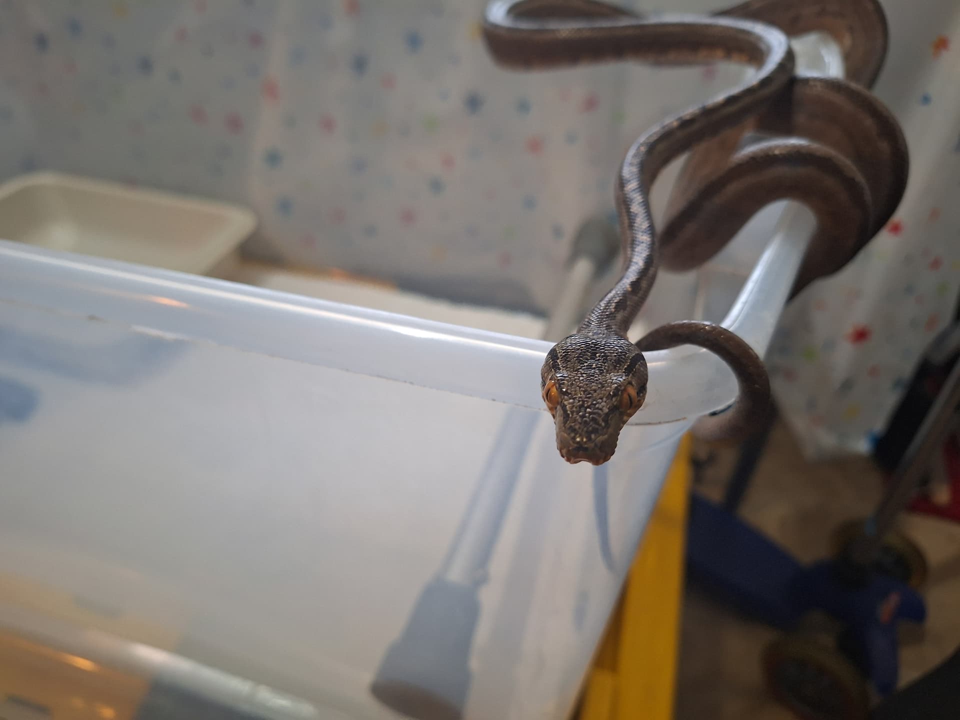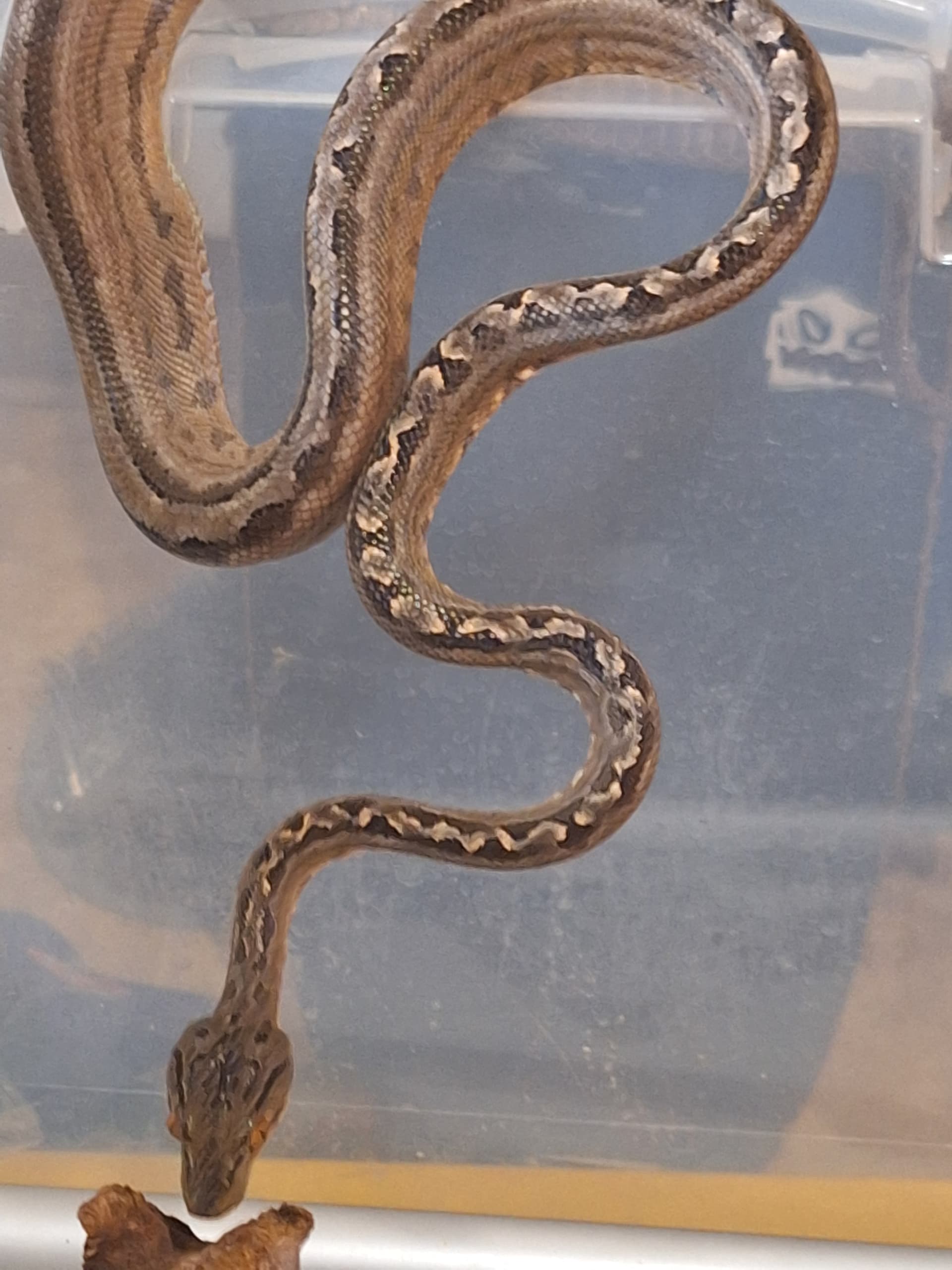 So little miss daisy is already being bred. I don’t know if any of you guys remember but i had tried to breed an orange low expression calico amazon named cheeto with a young silver/grey garden tiger male. Well they were doing fine together &cuddling even thought i saw a few locks until one day, I watched cheeto jump out of a hiding spot &chase the tiger male all around a 120 gallon cage &then wrestle him into the dirt hard. I was like something isnt roght, its usually the other way around. So i pulled cheeto out, gave it a probe &sure enough the snake i bought thati had been raising as female, was labeled as female, even i probed as female when i first got… swallowed the probe &was male!!! I think he was swelling up which led me to think “she” (he) was ovulating was gas that was building up in his system from eating possibly too big of meals or maybe too often or maybe it was just happening. He regurged a few so i stopped feeding him for a month &recently started feeding him slightly smaller meals which he has been keeping down. Anyways since he has been doing better i decided to give him a shot with my new HUGE tiger female, daisy. &since when i thought he was a female, i really wanted to pair him with a tiger to try to make some calico tigers. &now that i have a female tiger i can still potentially do that!!! I have witness at least 10 locks in the last week &3 successful copulations where he was definitely… in. Here’s looking forward to some beautiful snakes in the future.