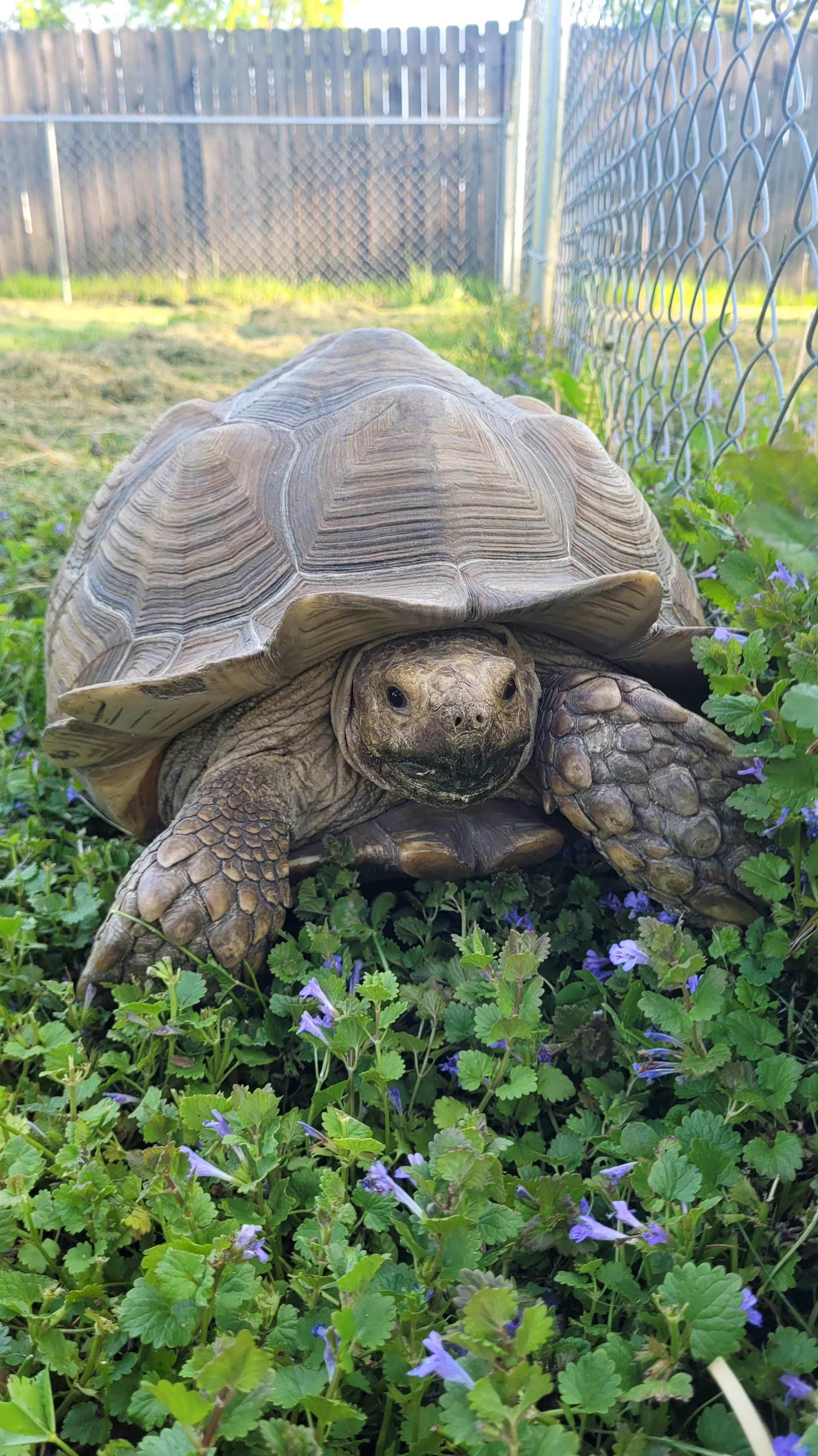 Here are some pictures of my son’s tortoise names, Zippy. He fenced off about 3,000 square feet of his yard for Zippy.
