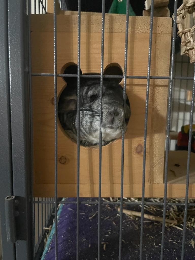 Love the ear cutouts on her box! She’s so cute. My neighbor had a chinchilla when I was a kid, my son and DIL had two. They’re the softest things in the world.