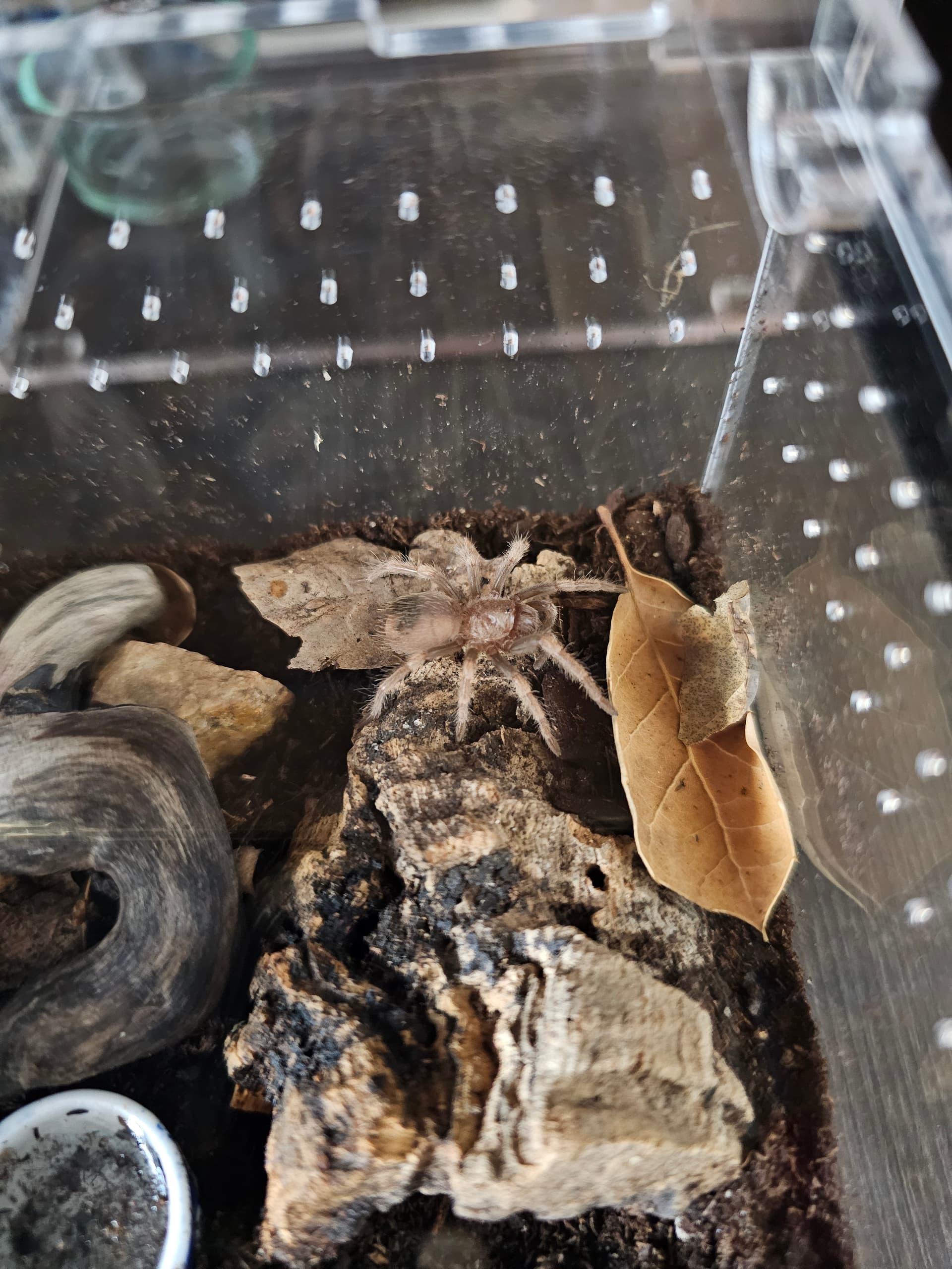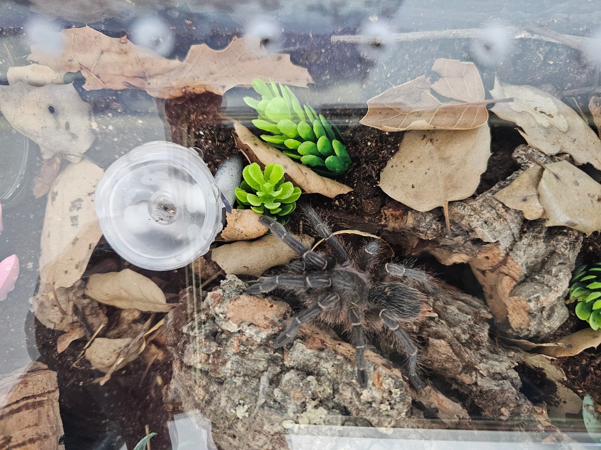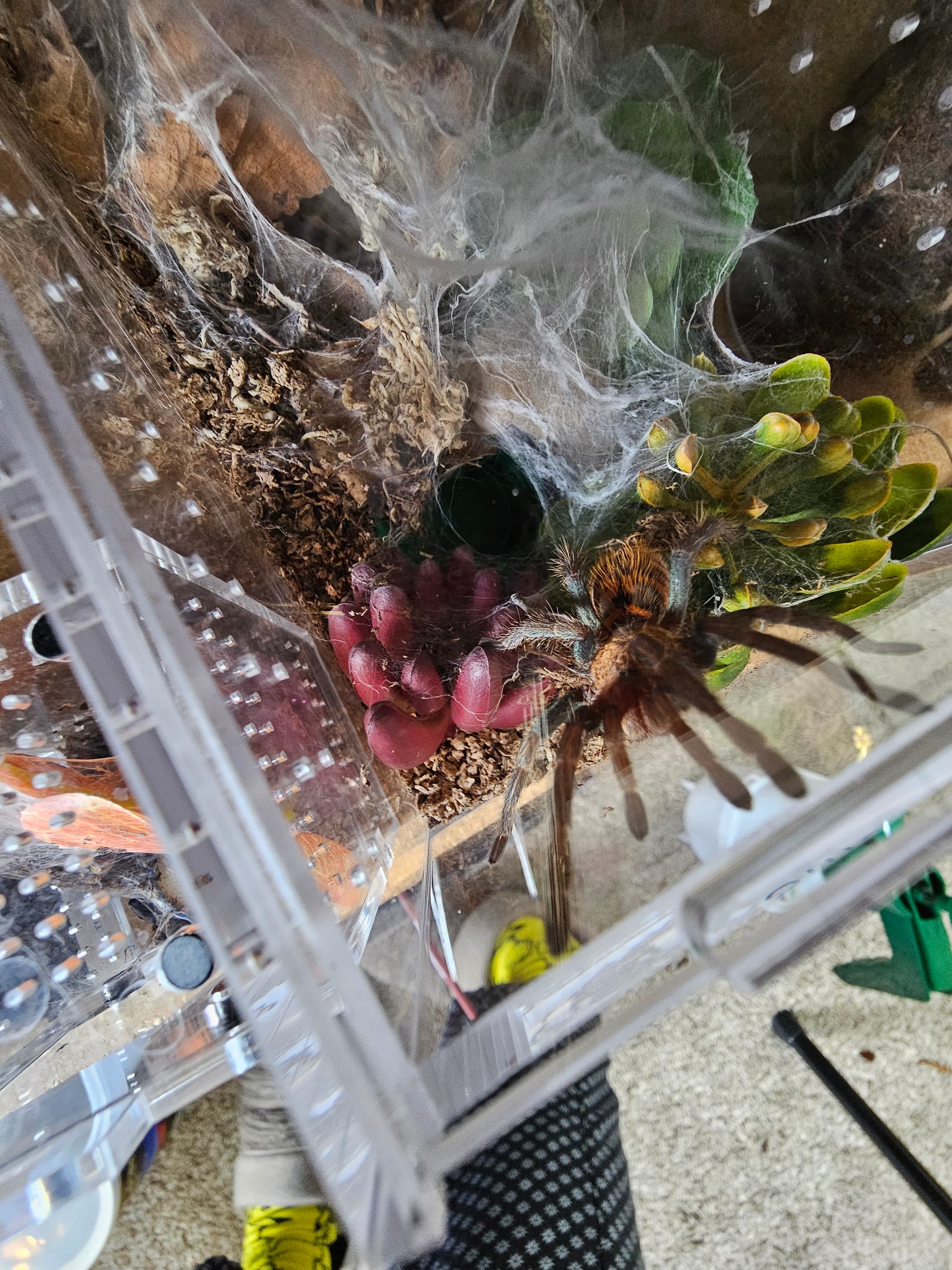 Oolong, my GBB, has gotten pretty curious since its last molt. If it detects I’m moving around near the spider shelf they’ll come creepin over to see what’s going on.