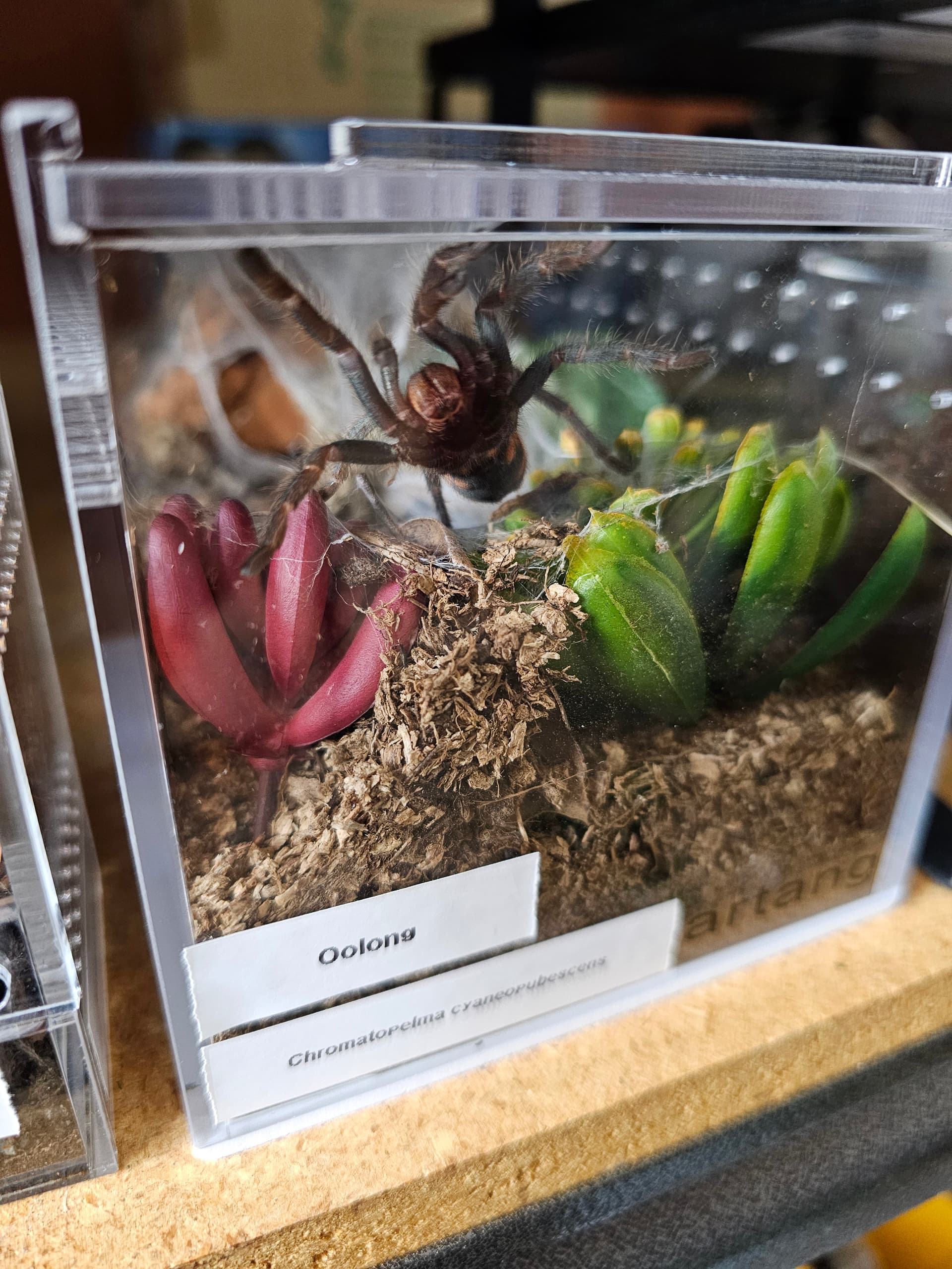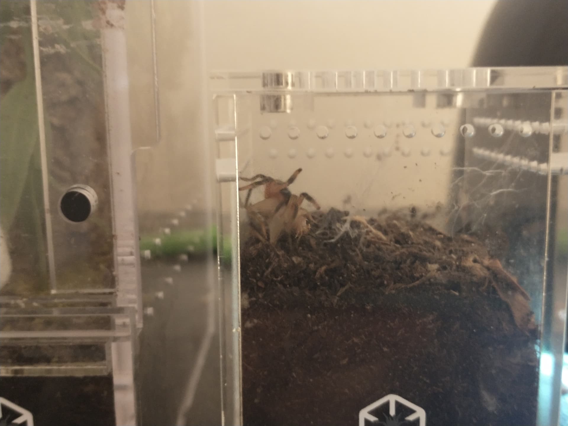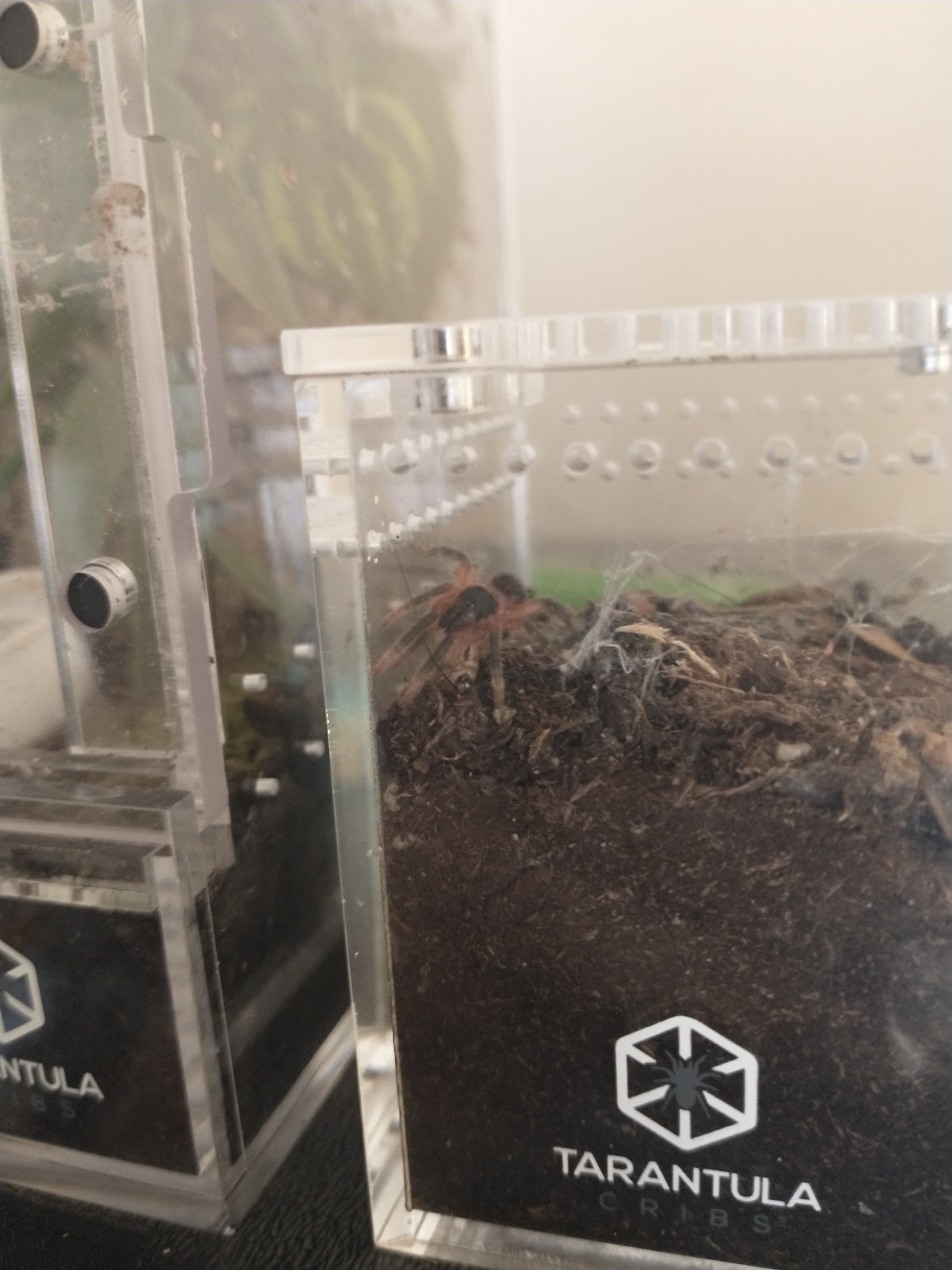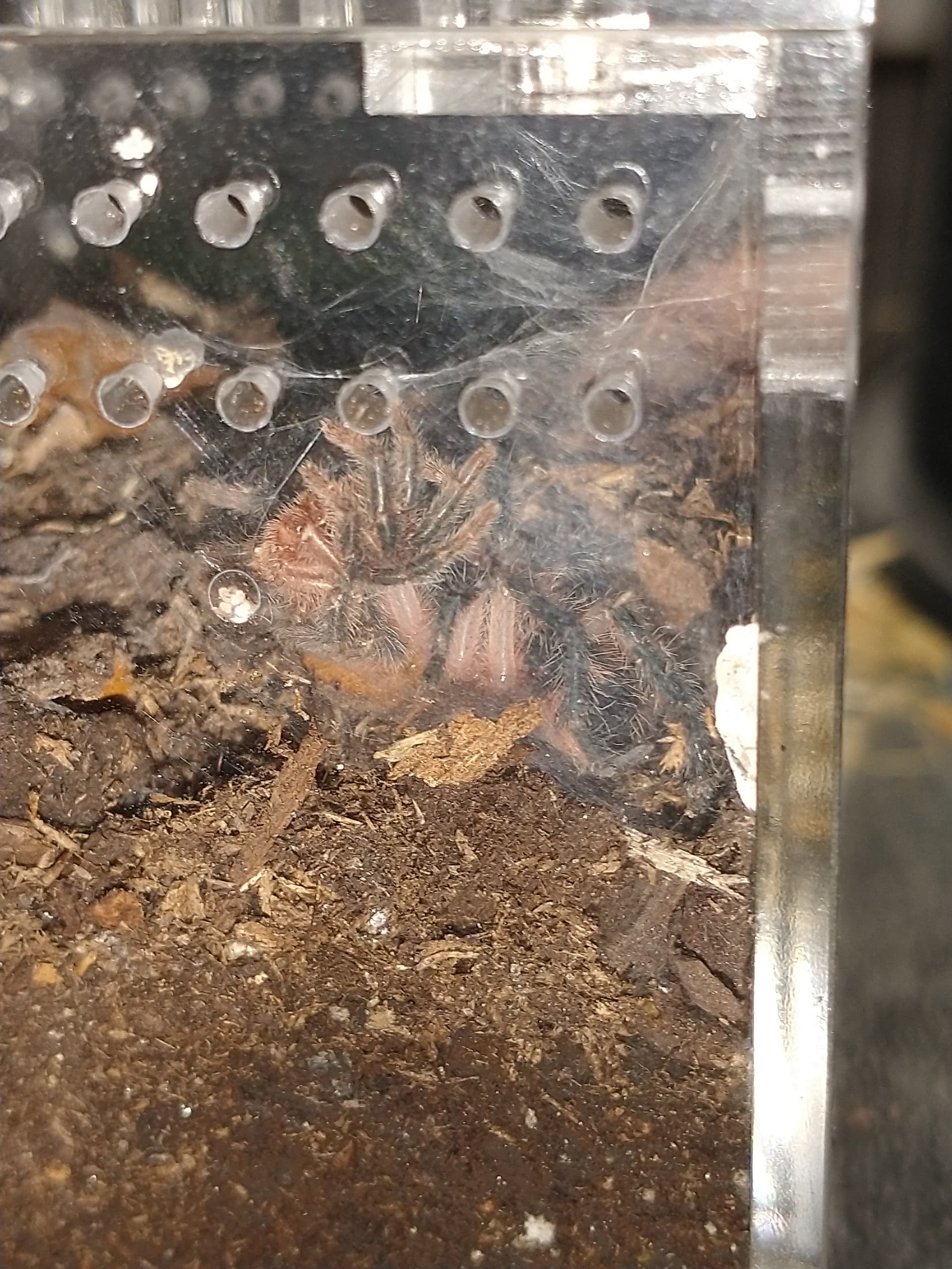 Oolong, my GBB, has gotten pretty curious since its last molt. If it detects I’m moving around near the spider shelf they’ll come creepin over to see what’s going on.