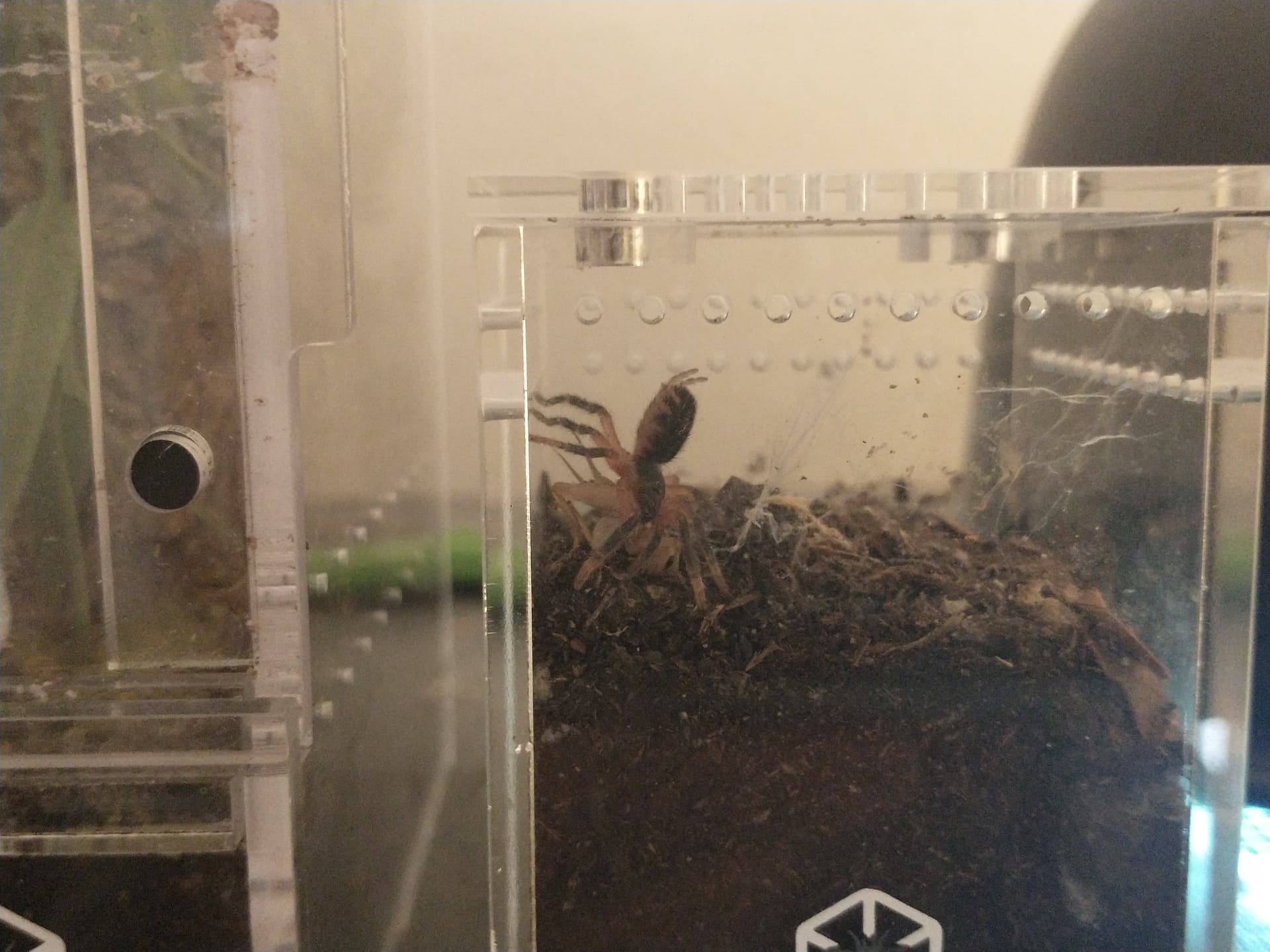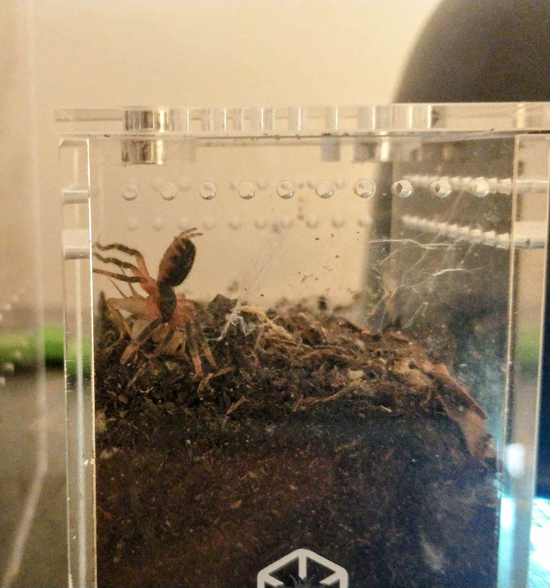Pompeii the lava spider is no longer afraid of crickets! I just spent the last 10 minutes watching her wrestle down a cricket that’s almost as big as she is. What a good little predator!