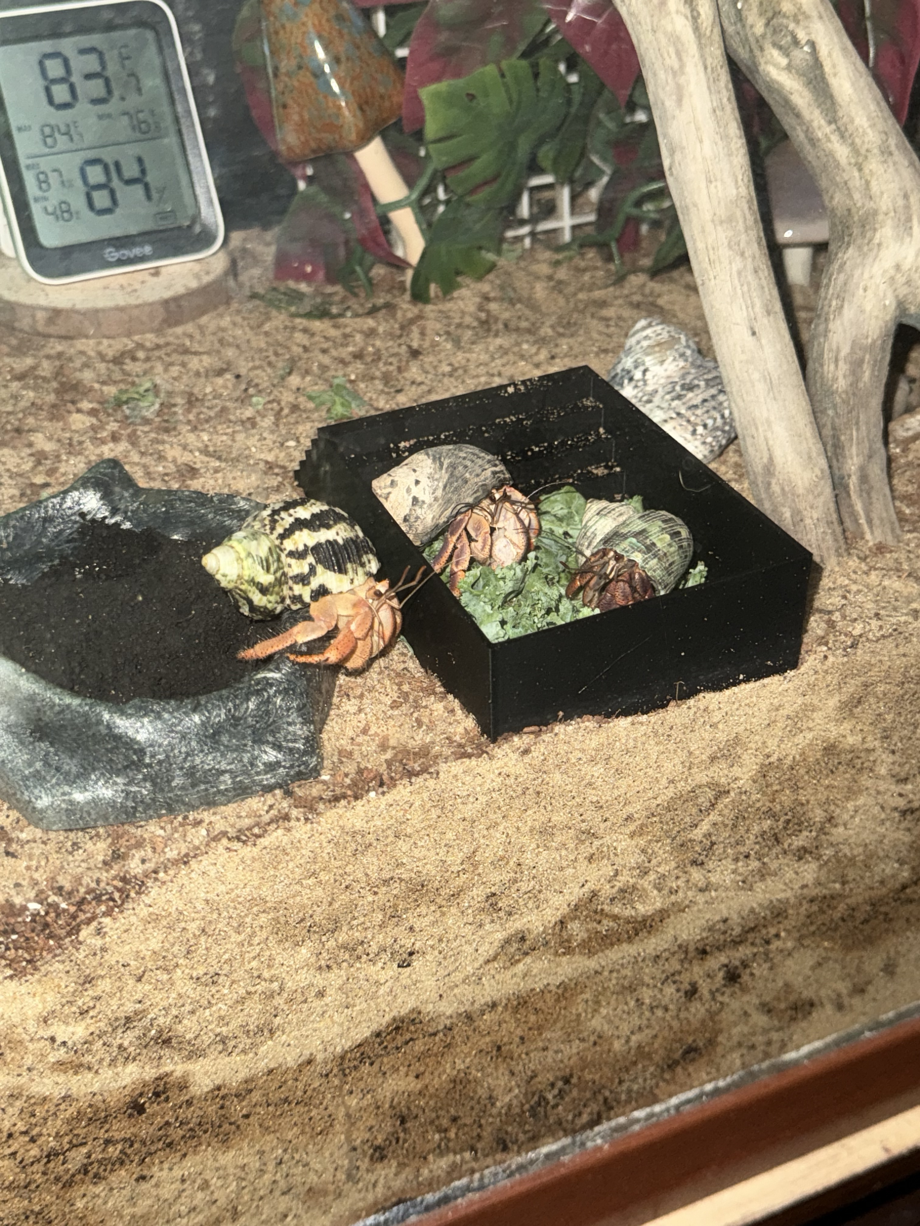 Oh man, I know that must be really tough to give him up, but I definitely think it was the right decision. It sounds like he’ll have an amazing life in his new home with a bunch of other hermit crabs. Good on you for doing what’s best for him, even though it hurts. Best wishes to Kirby in his new home! ![]()
