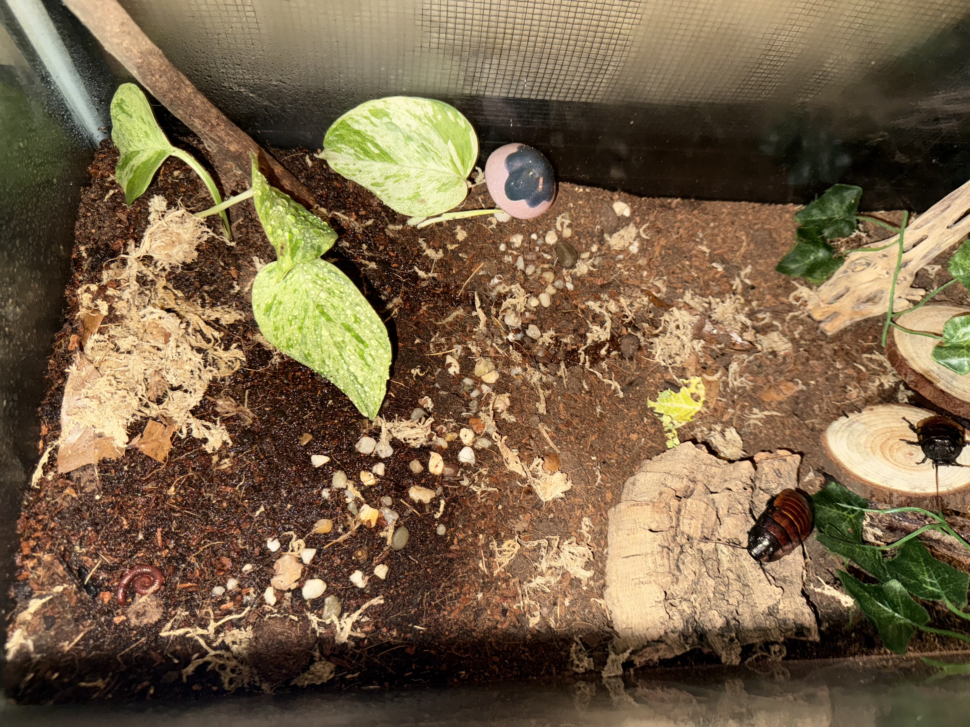 Put my scarlet millipede Nautilus in the ten gallon with my hissing cockroaches! Figure what’s better than not seeing him even in a 6 quart tub than not seeing him ever in a ten gallon tank