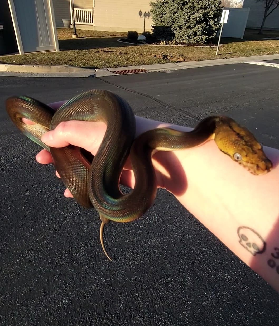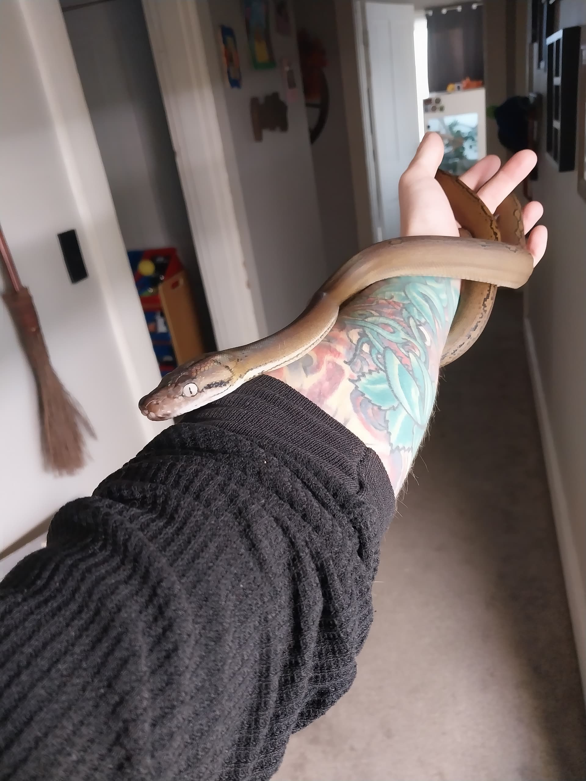 My wife’s little boy, identifying as a rare Asian Gray Tree Python (AGTP)!