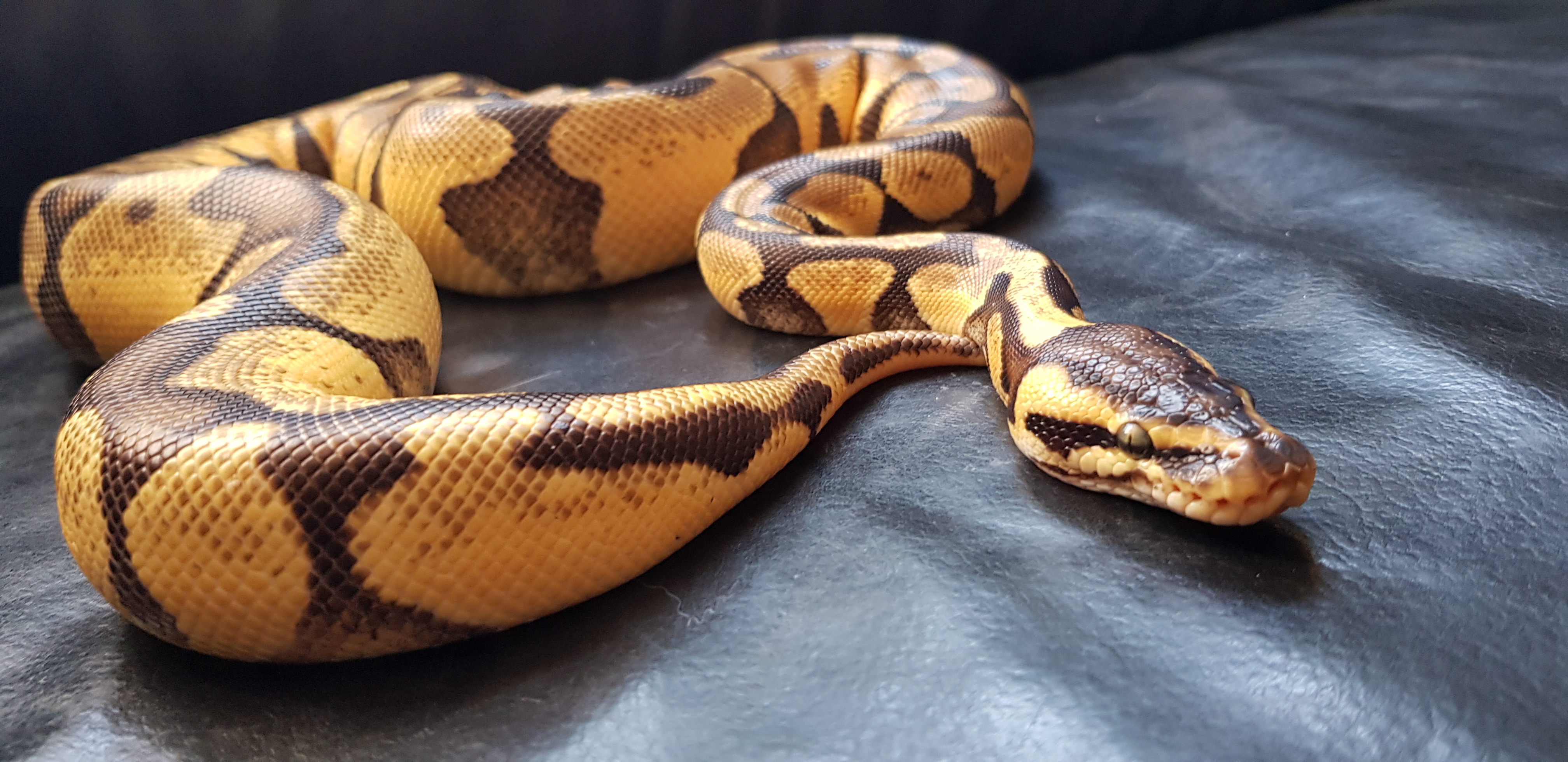Eddie, our lesser pinstripe yellowbelly het red axanthic. He really has a dot of gold in the top of his eyes.