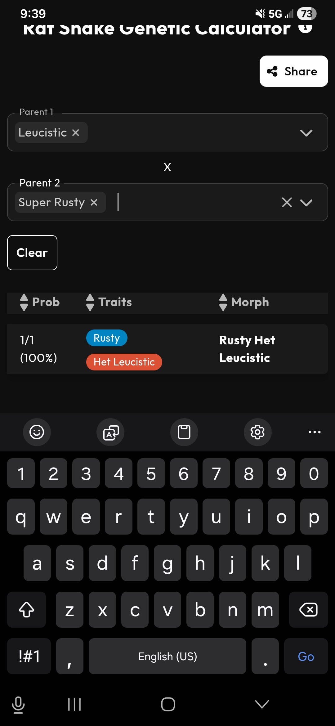 So… All that said, @jscott0292, based on the phrasing of your question, it seems like what you are getting in calculators is the “Rusty Texan” result - two different and incompatible forms of leucism, one inc-dom and one recessive. Which makes offspring that are essentially double hets, it is just that the Rusty is a visual het and the het TX is not