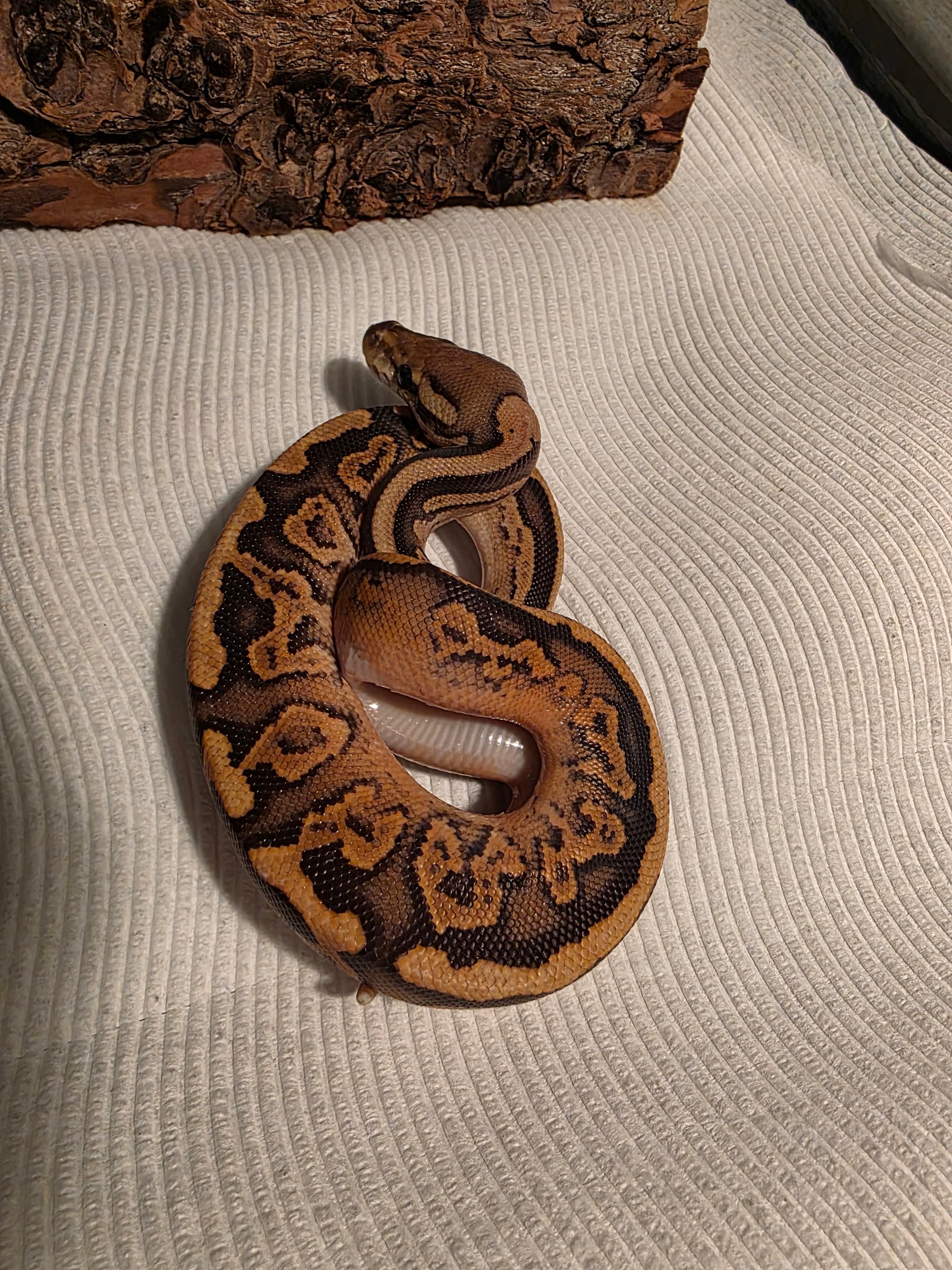 I’ll try to get better pictures tomorrow. She’s in a sterile enclosure being treated for mites at the moment and its taking time for her to settle in, so I really have been trying to keep handling to a minimum right now. Shes finally relaxed enough to go stretch out in her hide so dont really want to bother her atm. The person we got her from owns an exotic pet store but he buys and sells so im not even sure what breeder she came from. I would have to see if i can find out. We’ve gotten all 3 of our snakes from them.
