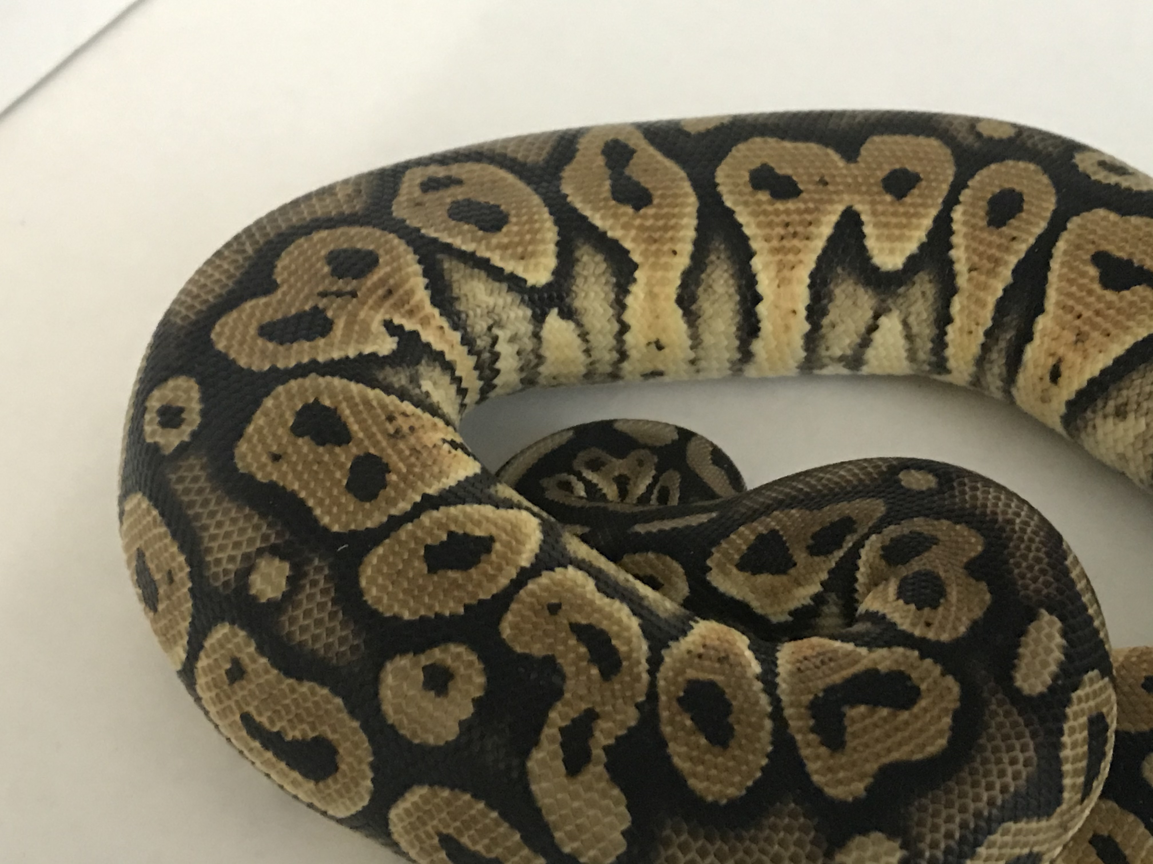 So A lot of pics but I wanted some good looks at it. Problem is the undersides are so wacky. They are like three stages. Pattern. Random fades coming up. The under sides that are a crap show followed by a perfectly clean belly all the way down to the tail, which in itself is odd. There is major fading everywhere yet the head barely looks like pastel. And the colors that are there are amazingly vibrant. Blacks are about as dark as it could get.